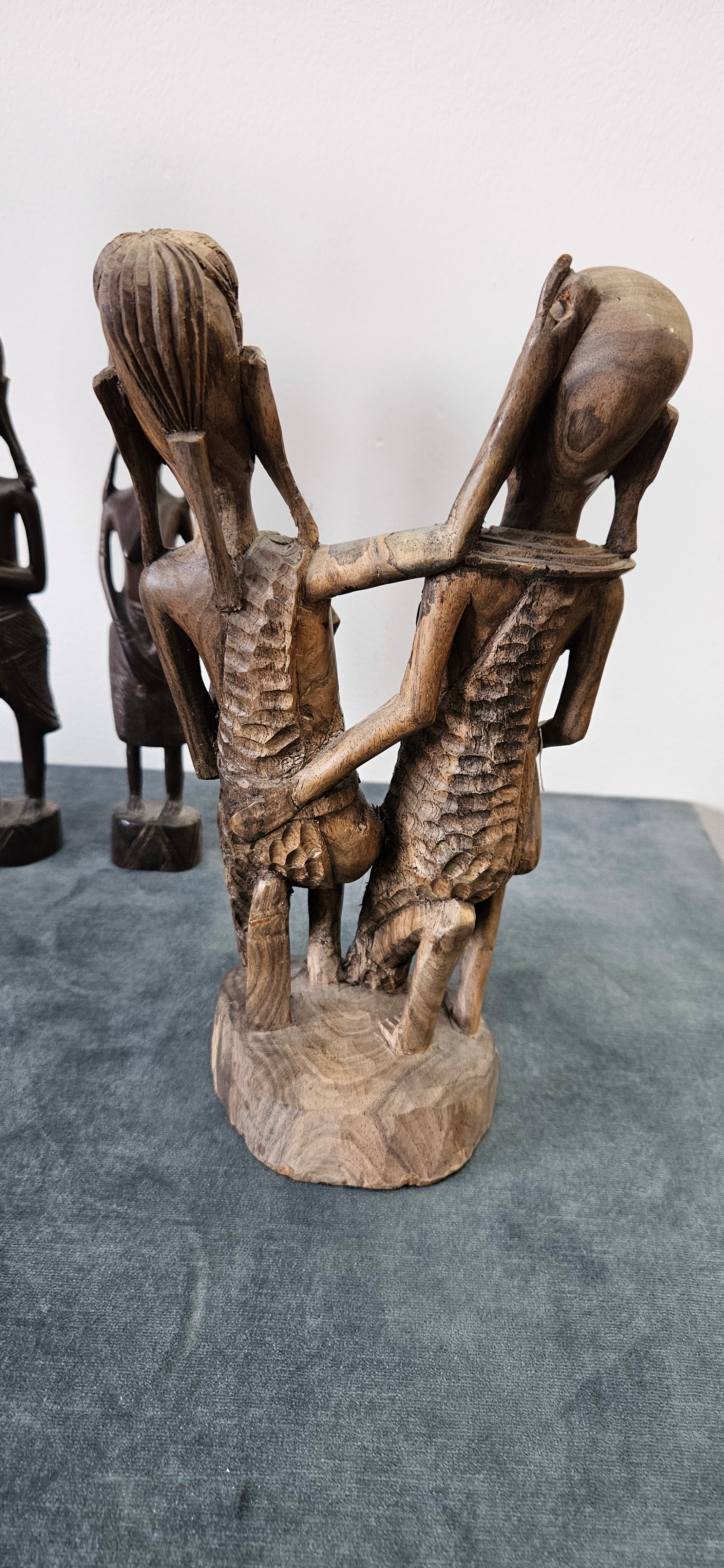 Collection of African carved wooden figures includes
