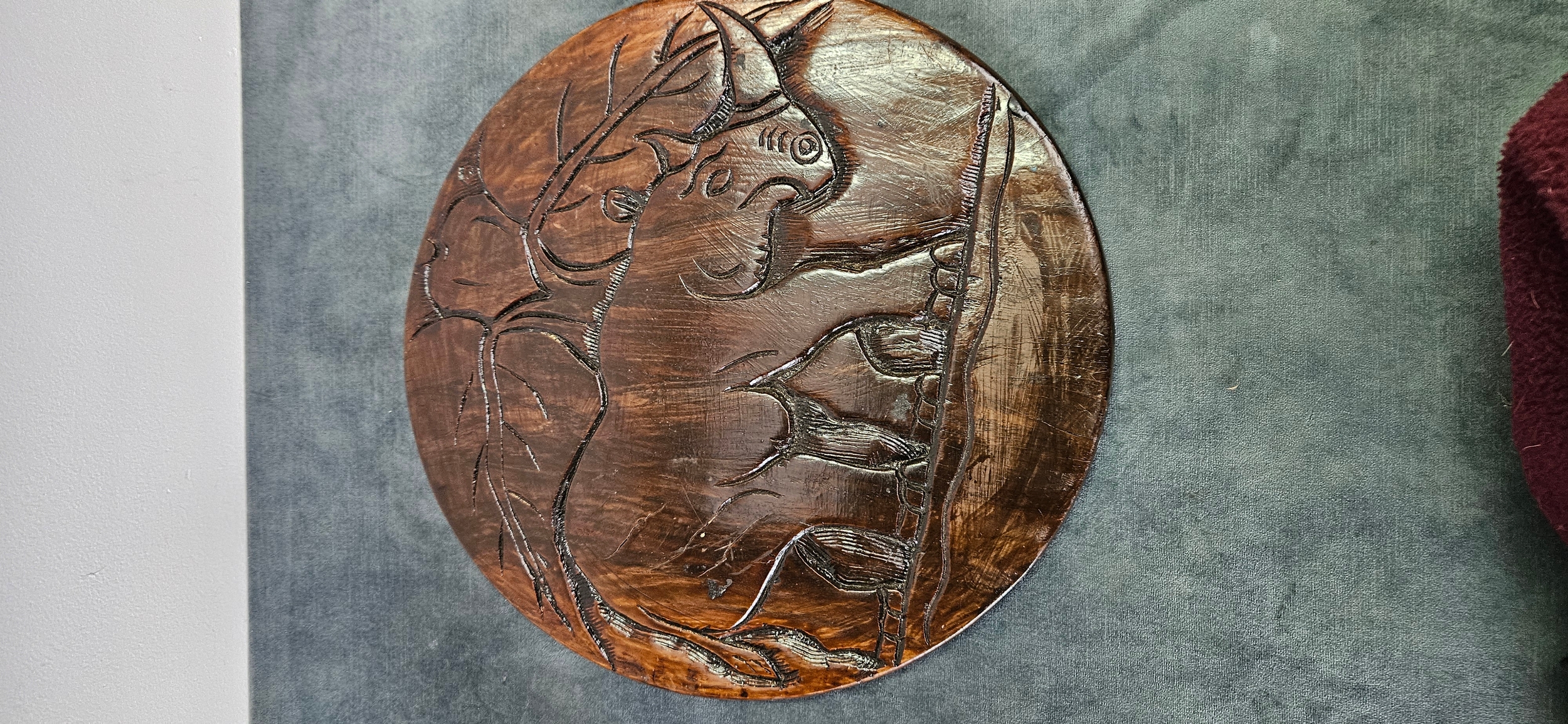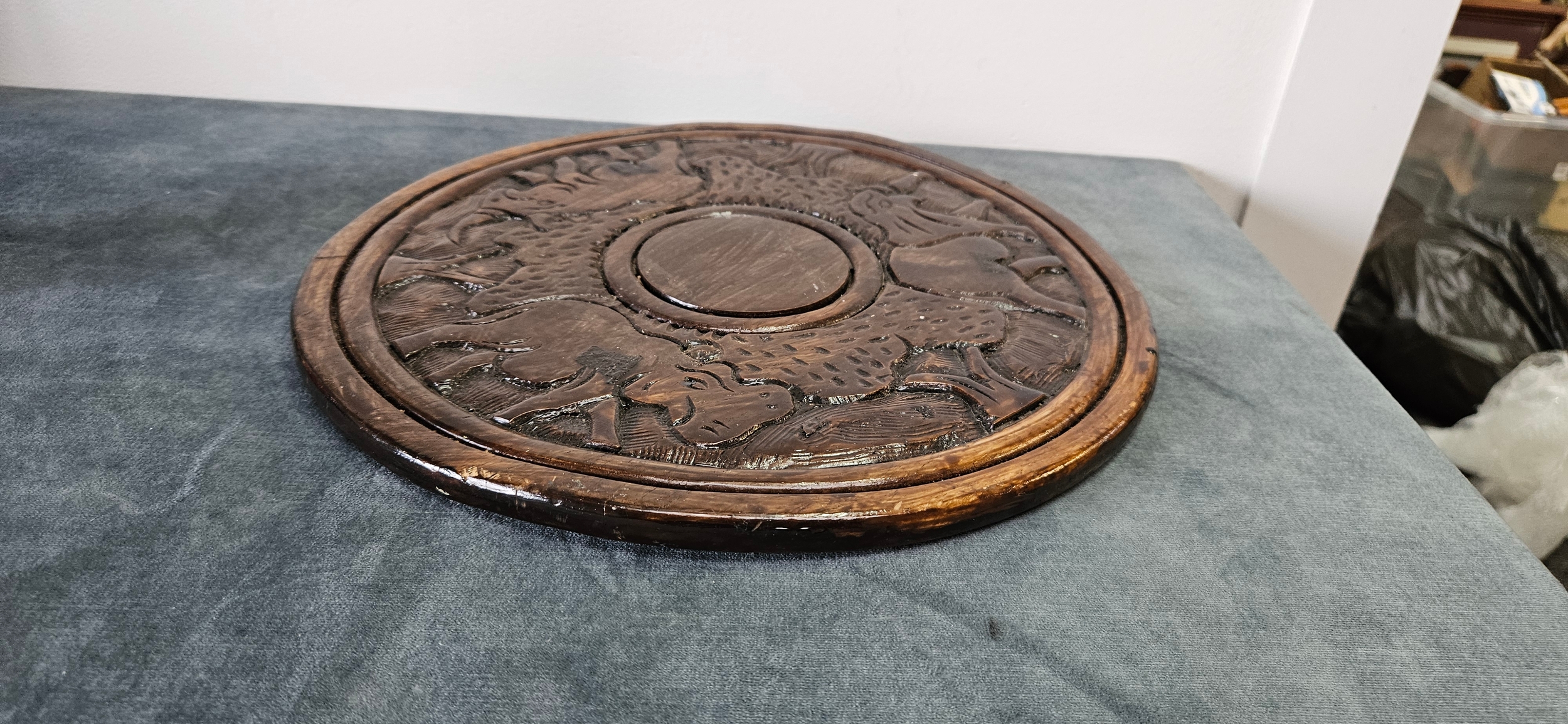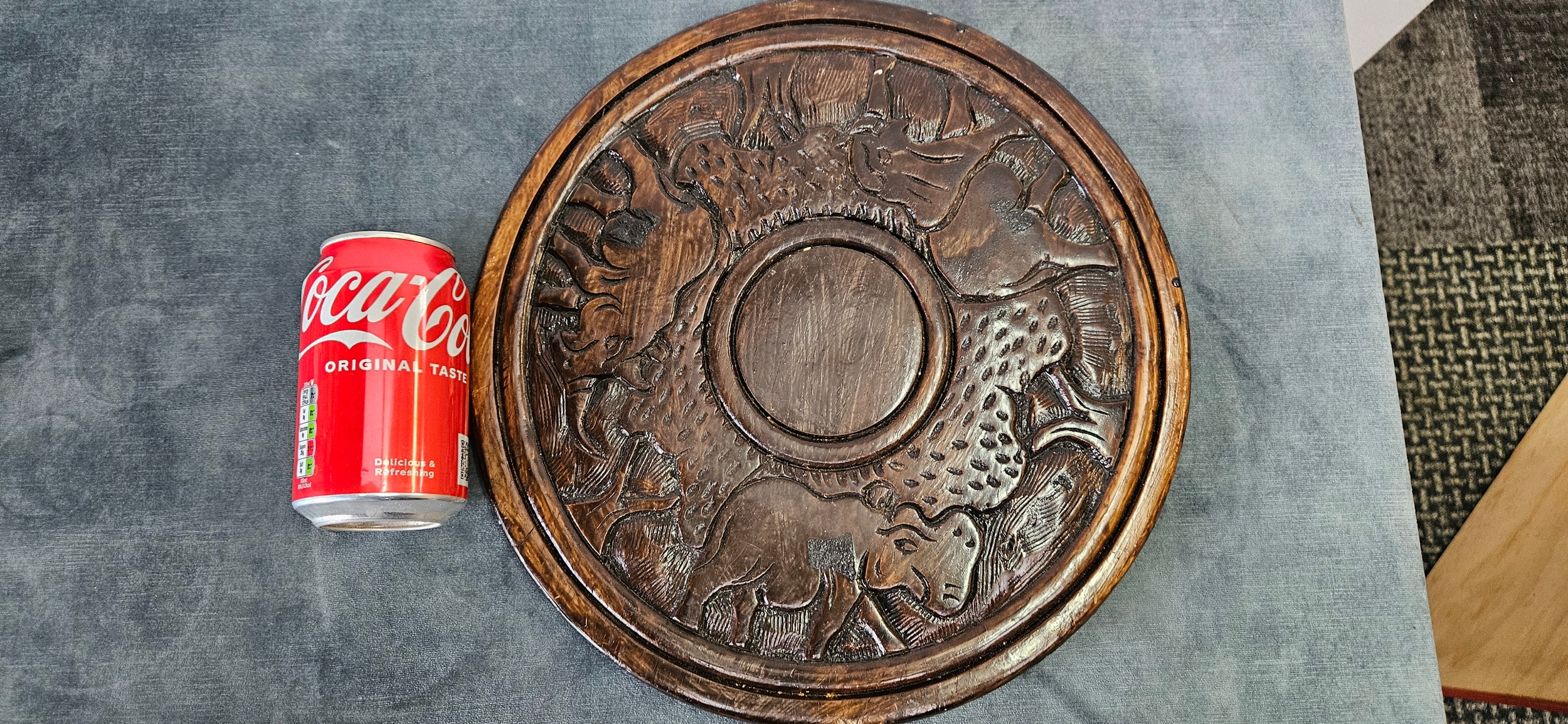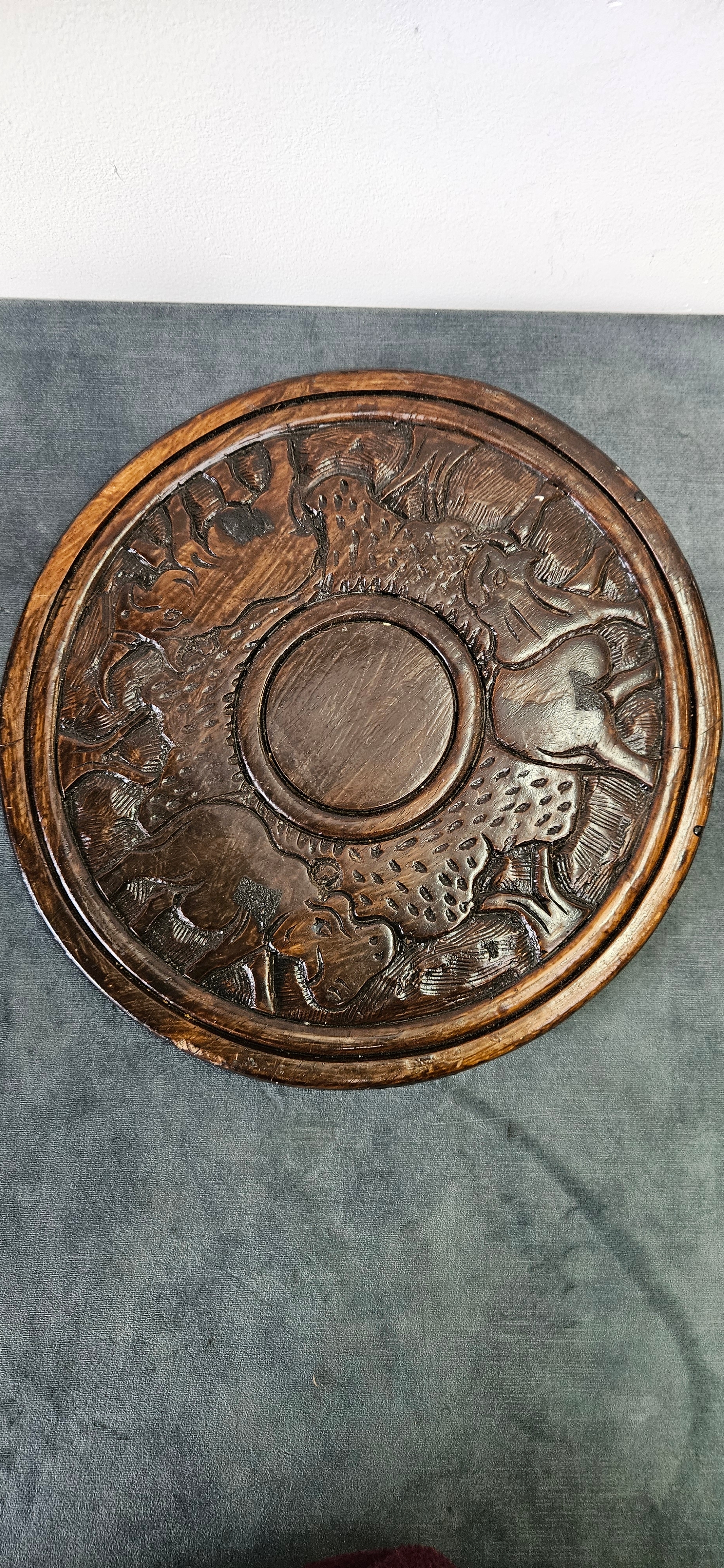 African hand-carved solid wooden platter