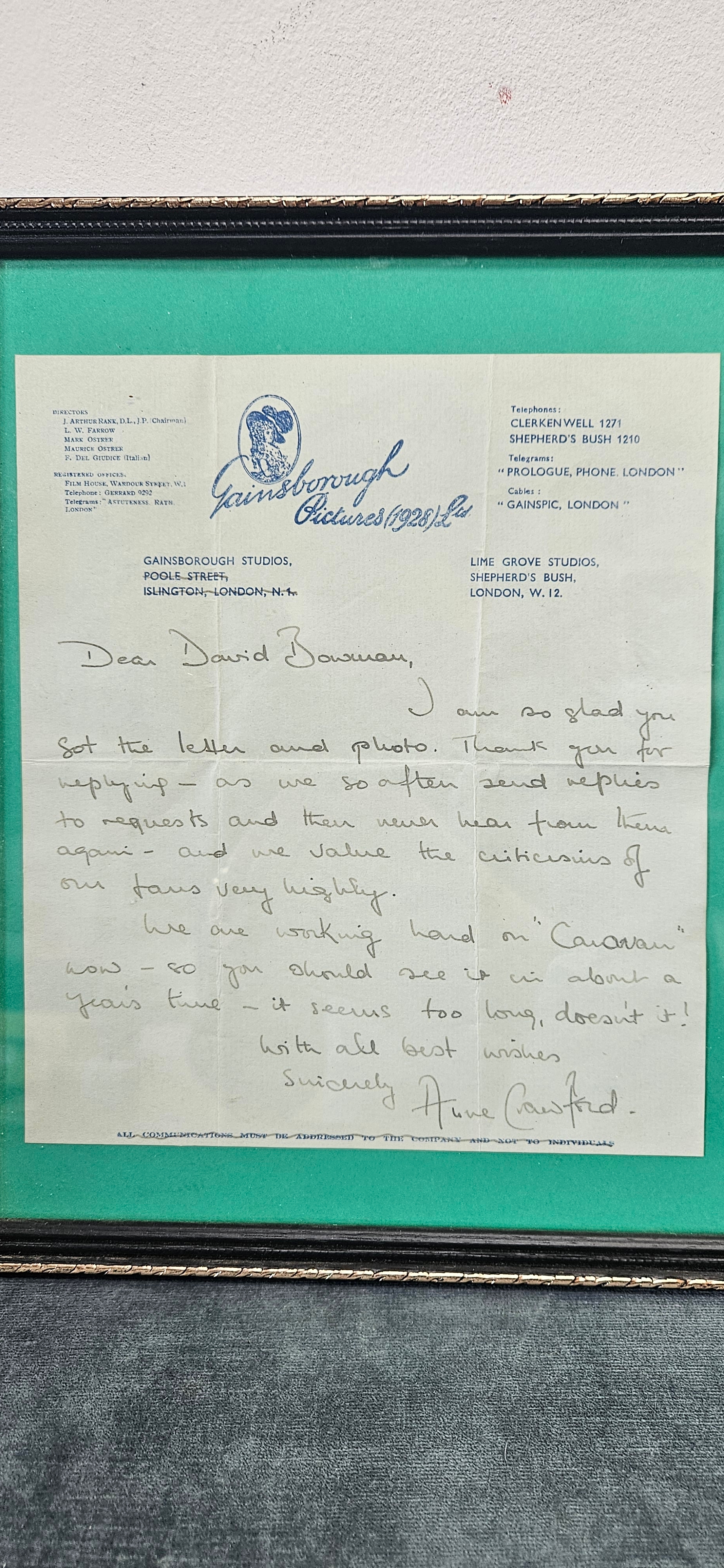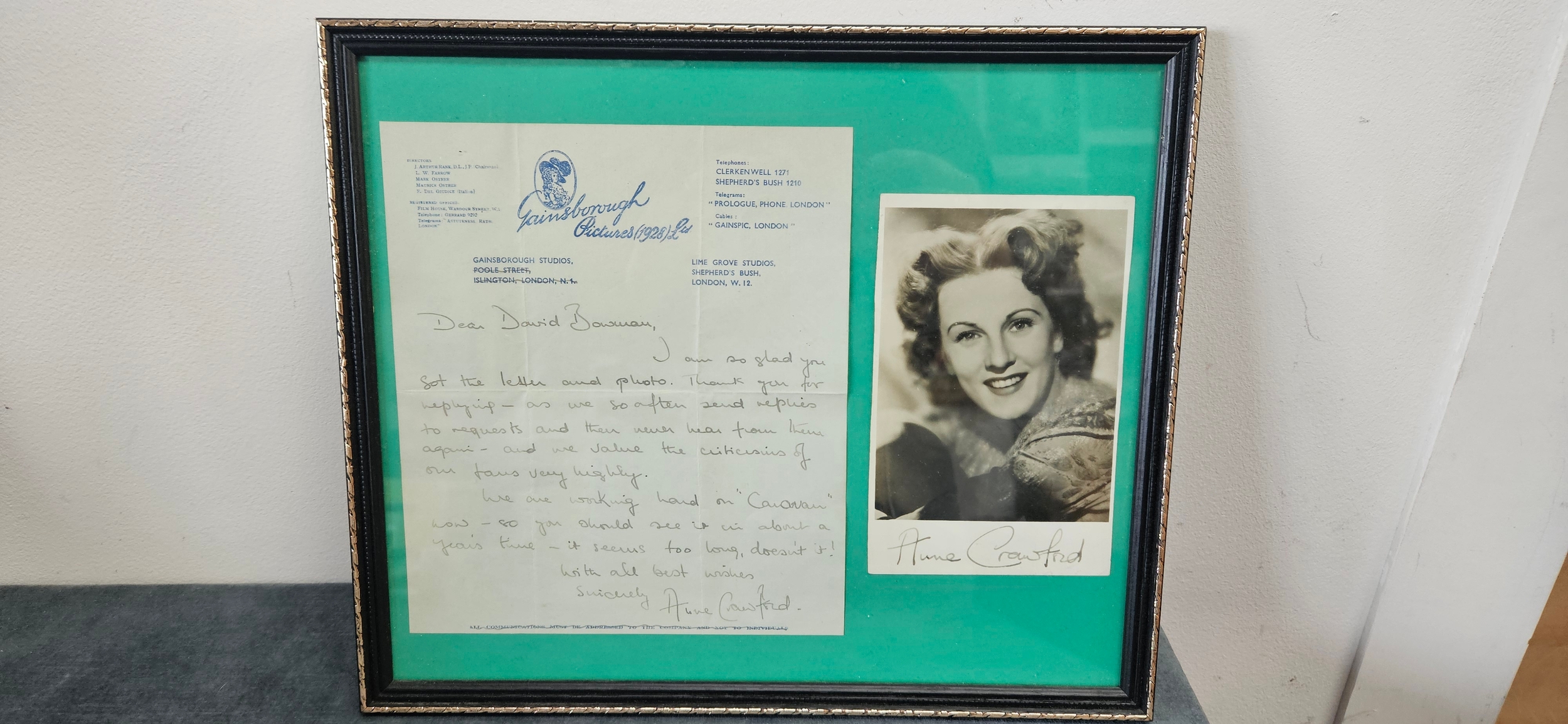 Vintage photograph signed/ autographed and framed – Anne Crawford