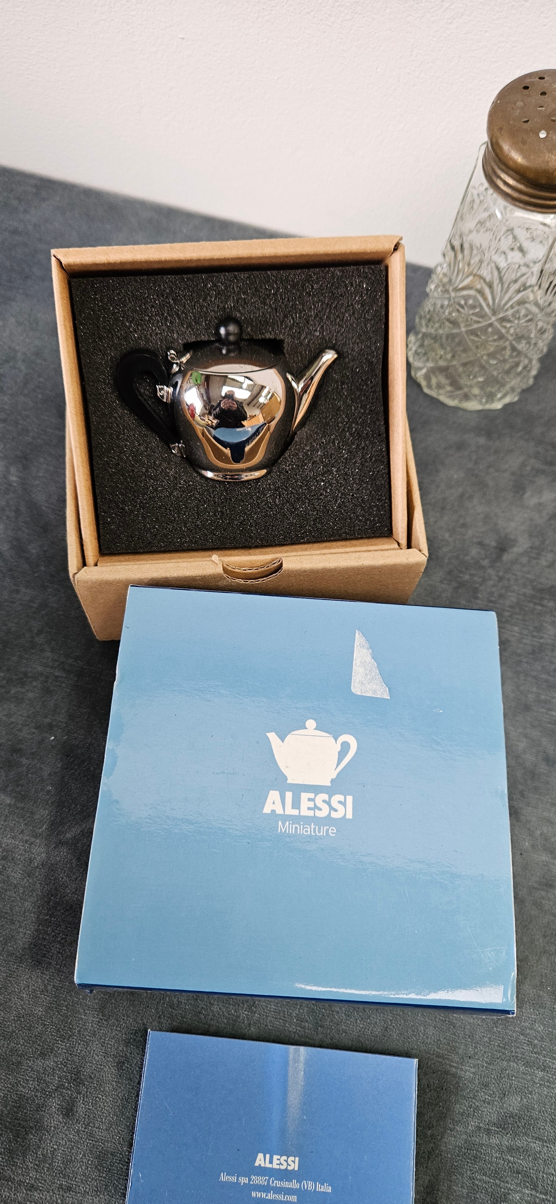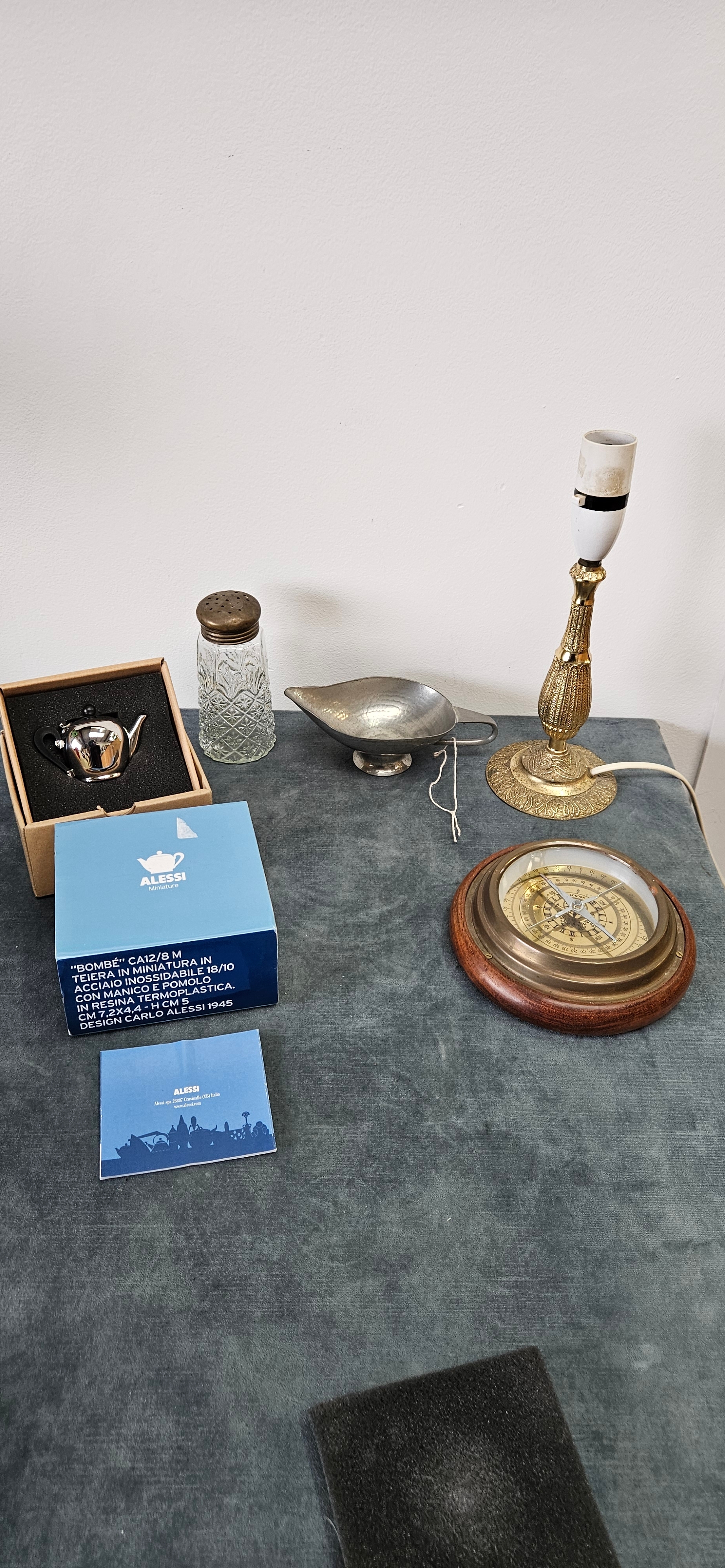 Assorted items including mini Alessi teapot, compass, beaten small jug ect.