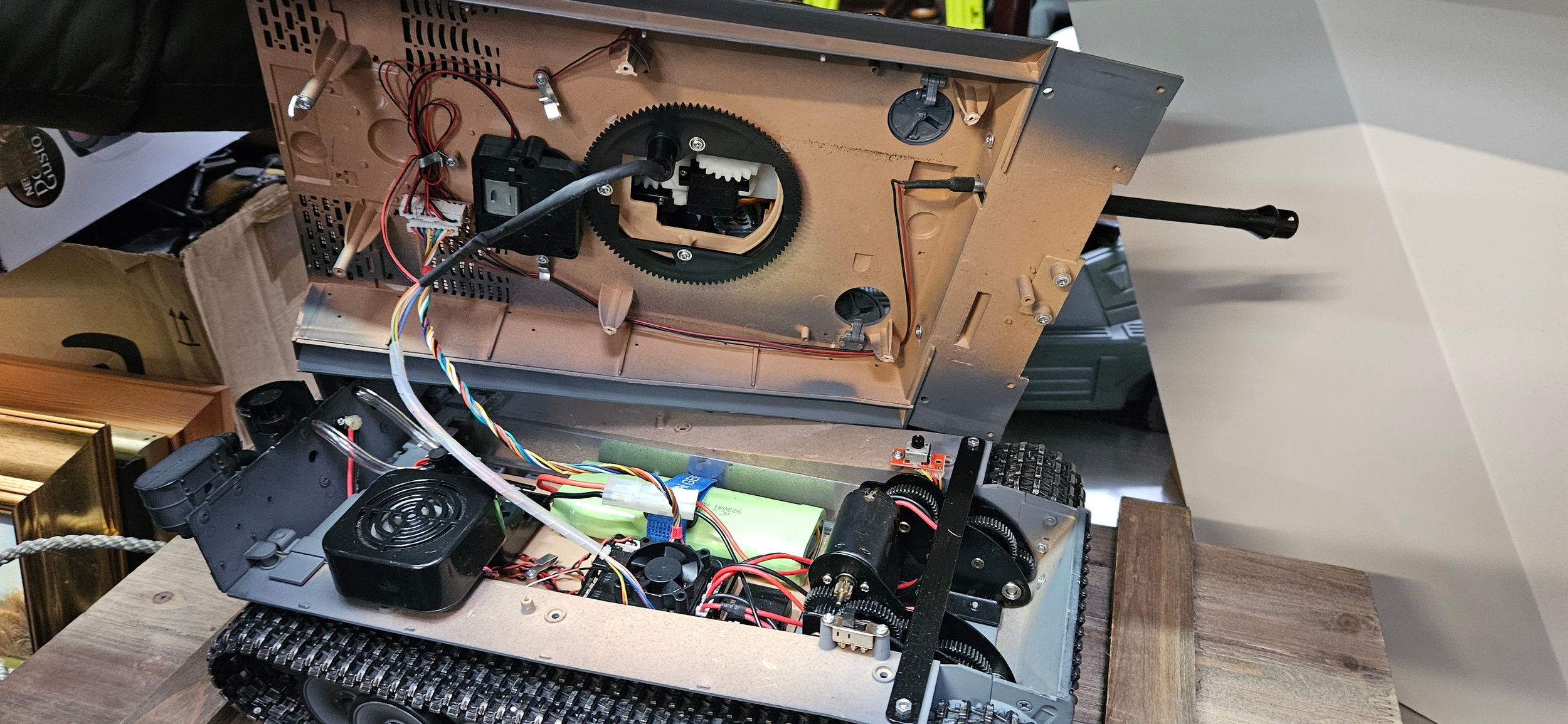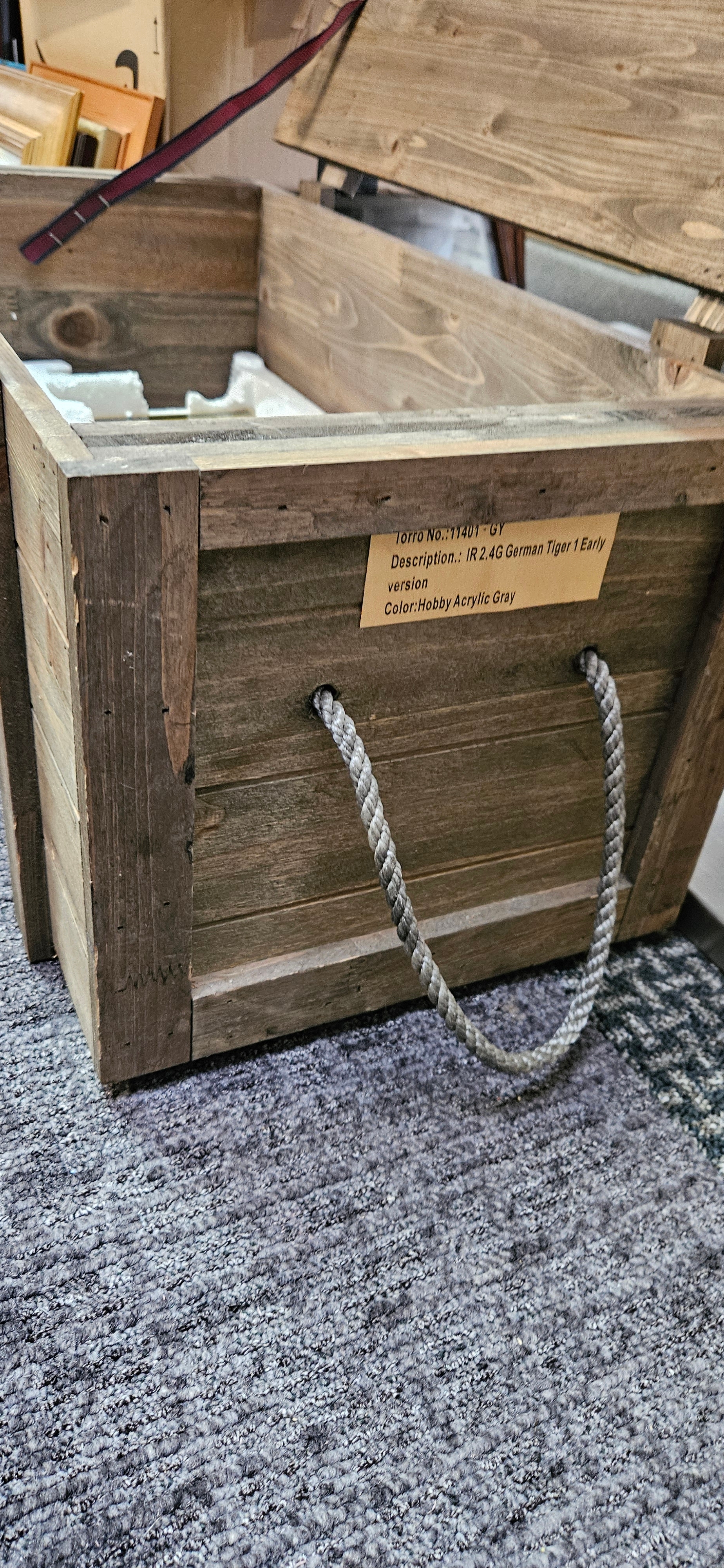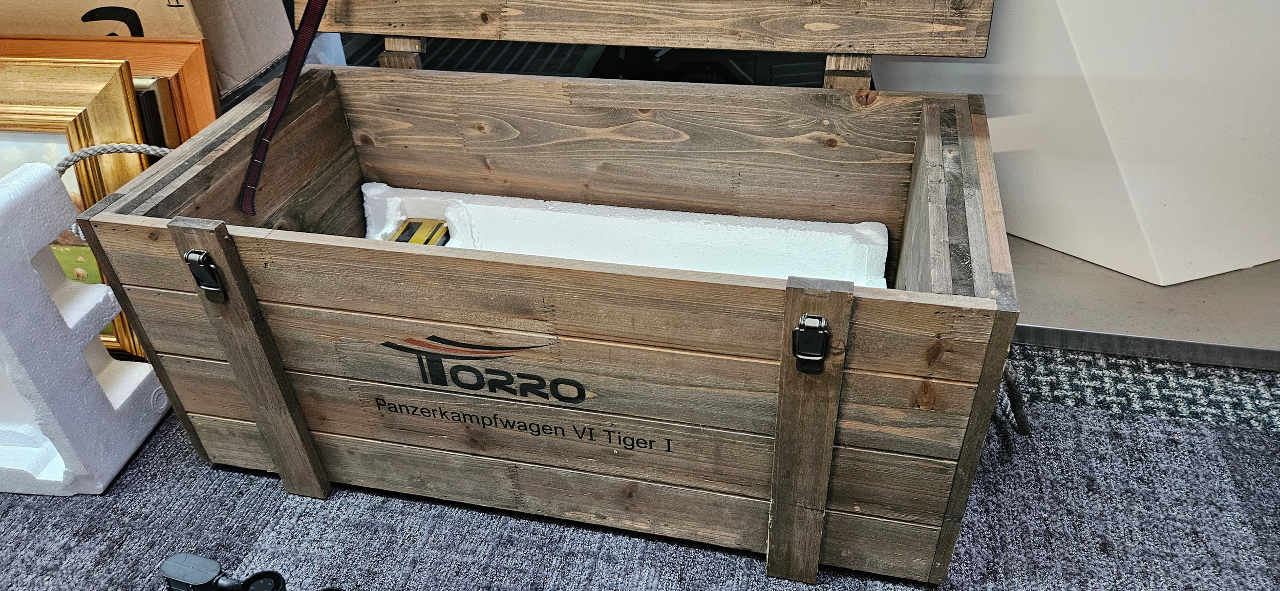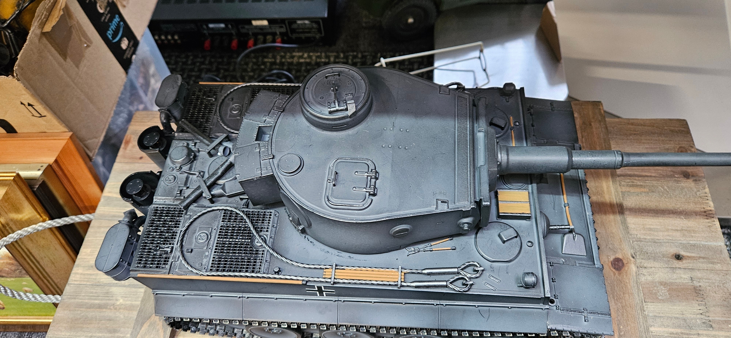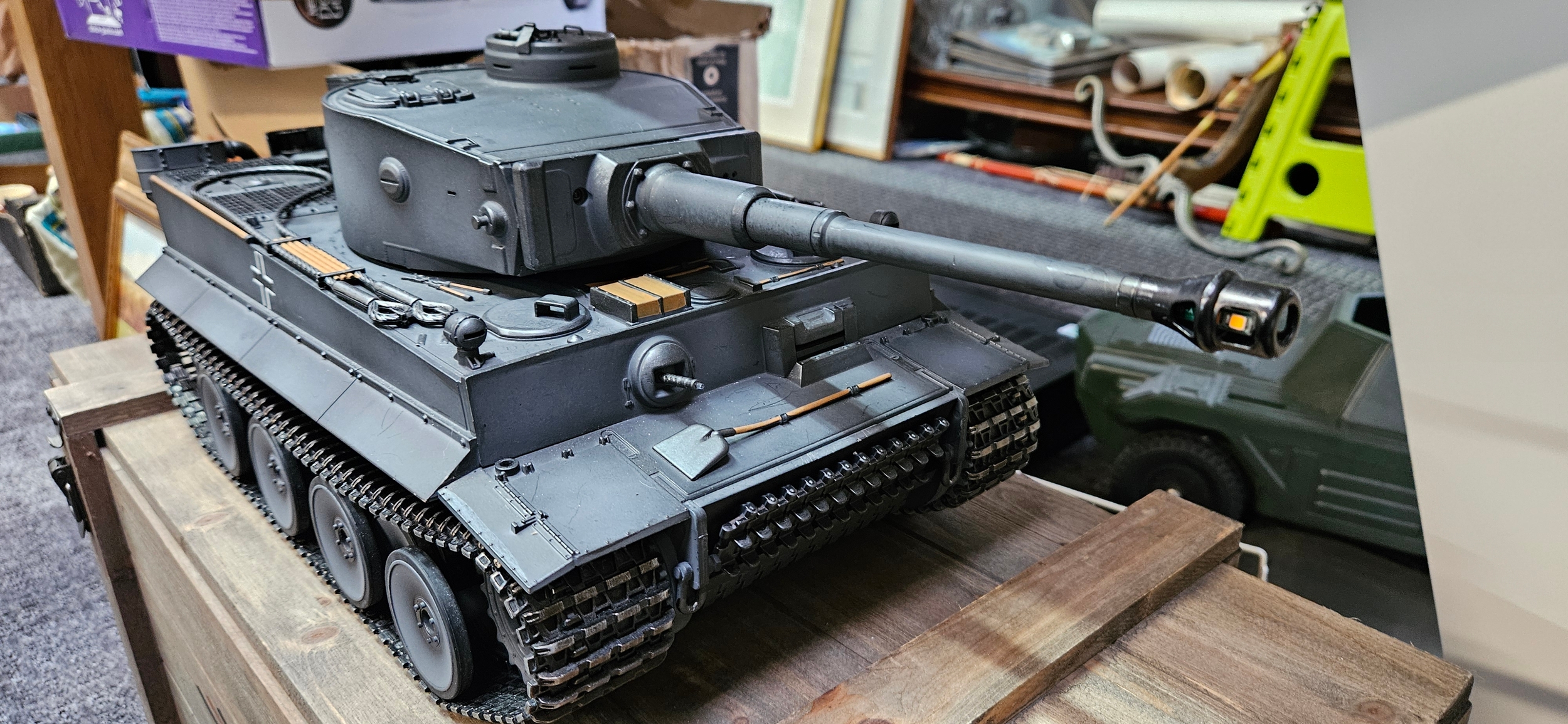 Large Torro 1/16 RC Tiger I radio-controlled tank – Complete with wooden box and accessories. Appears to be working