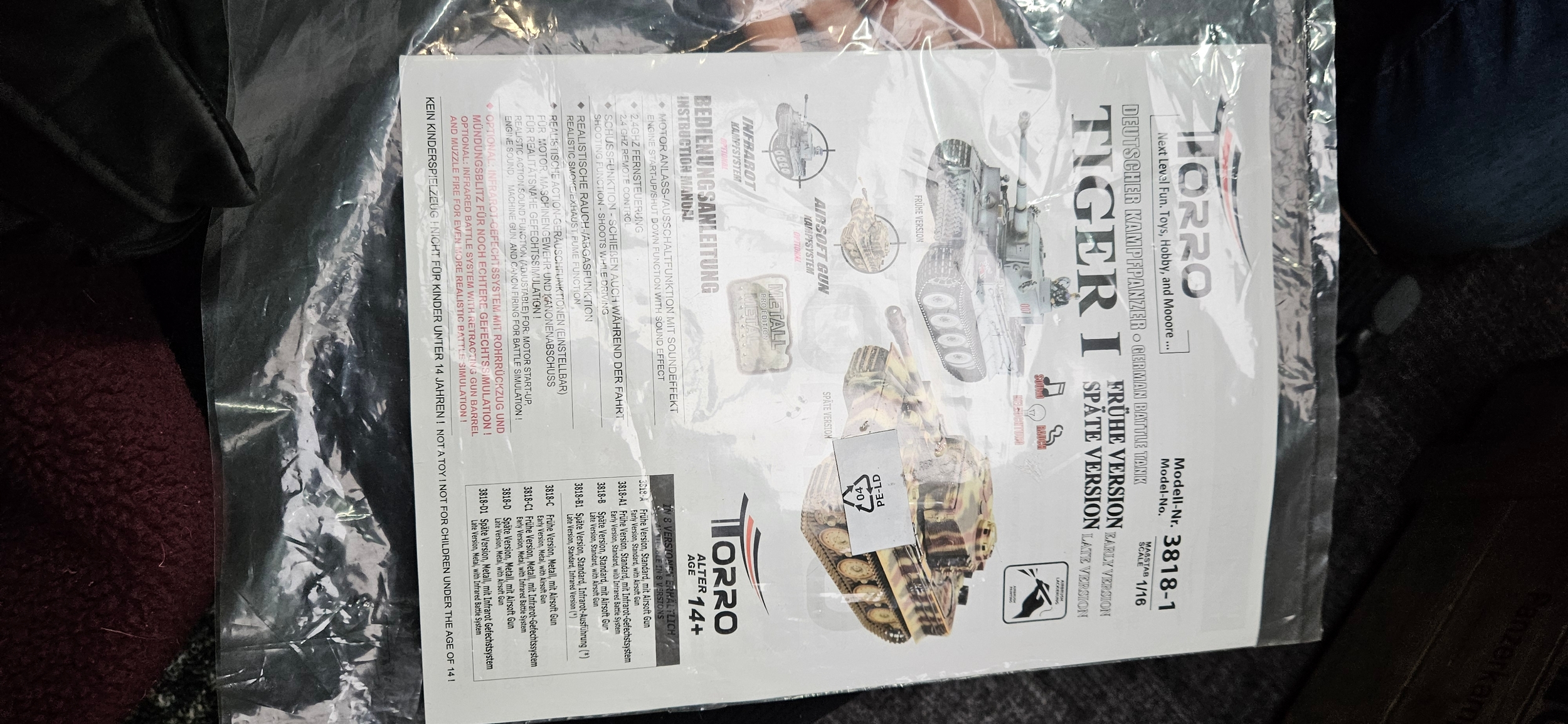 Large Torro 1/16 RC Tiger I radio-controlled tank...
