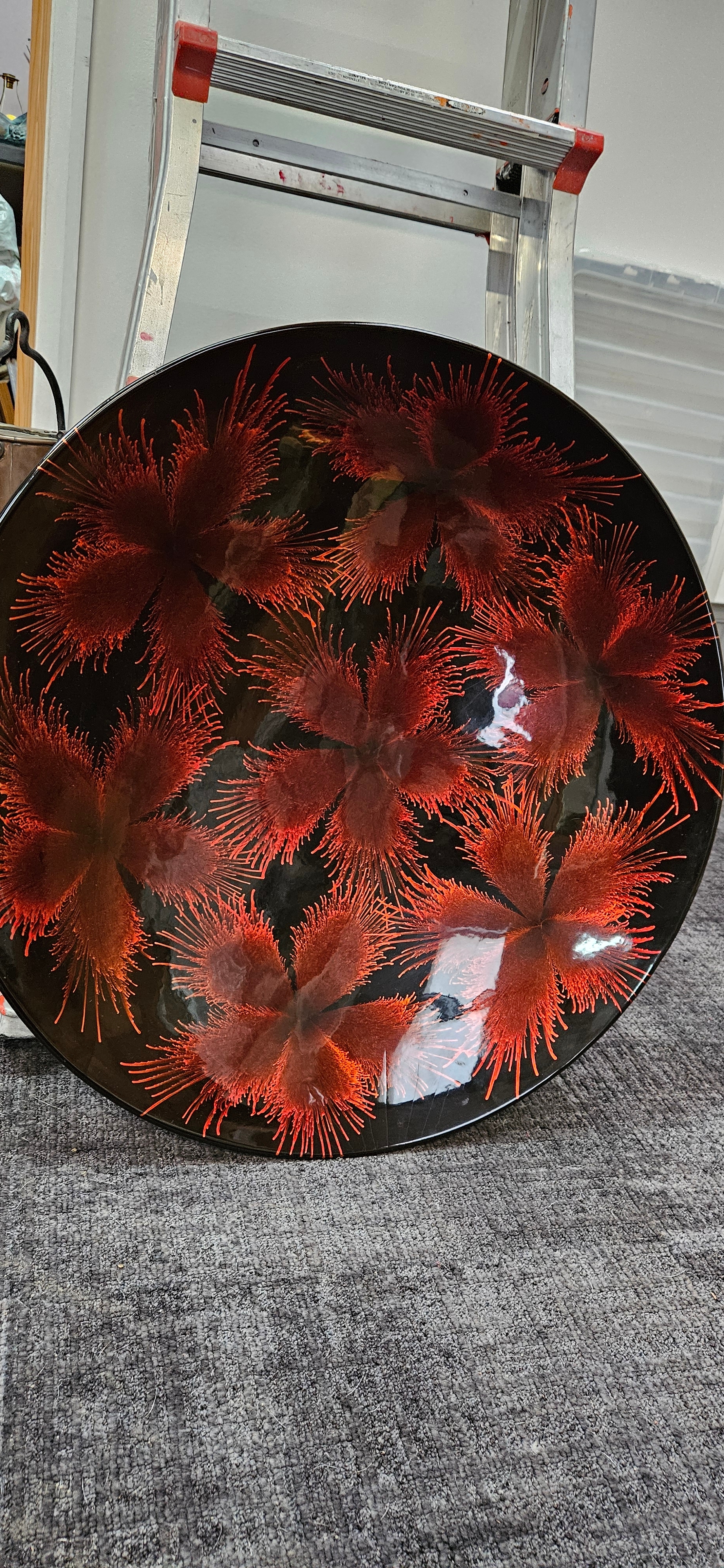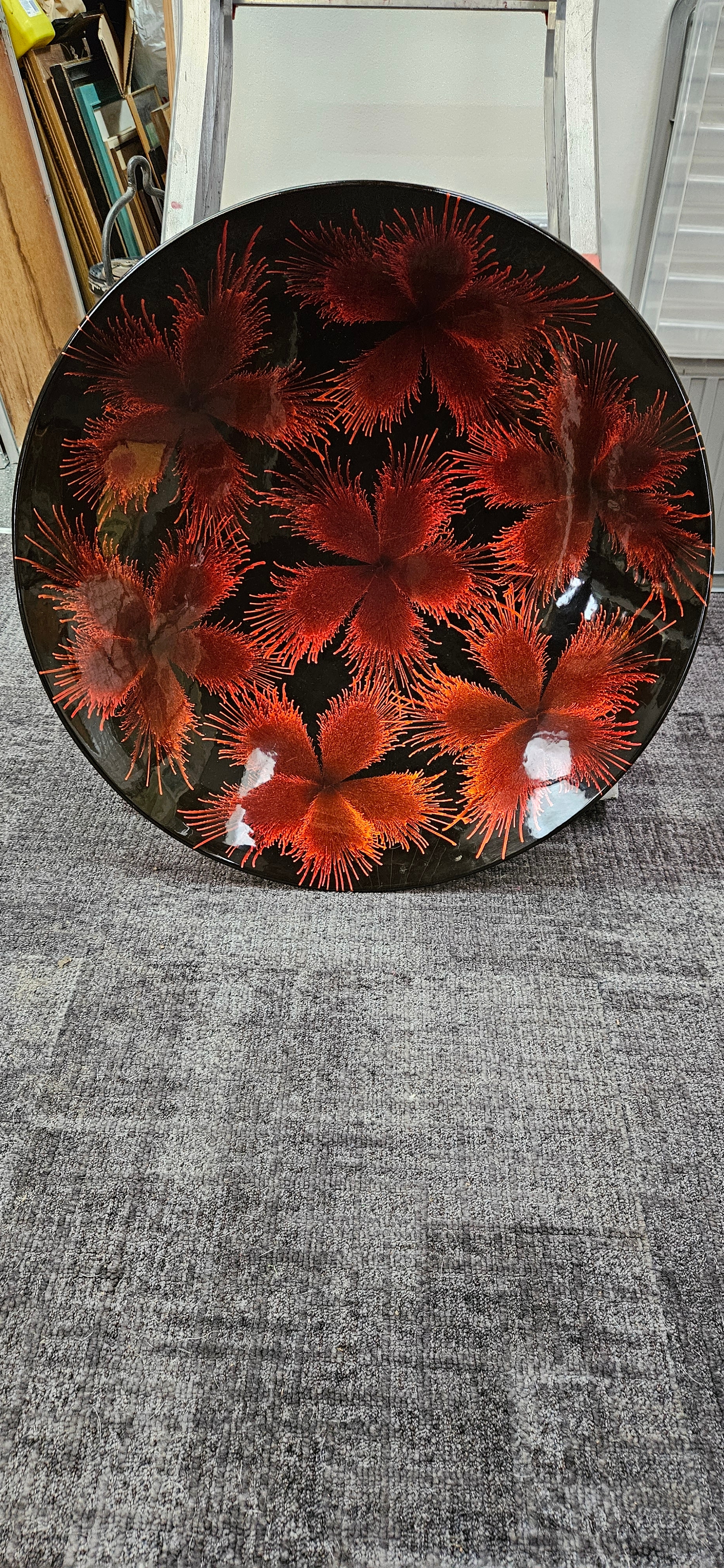 Large oversized paper mâché bowl/ wall handing with colourful orange/ red decoration