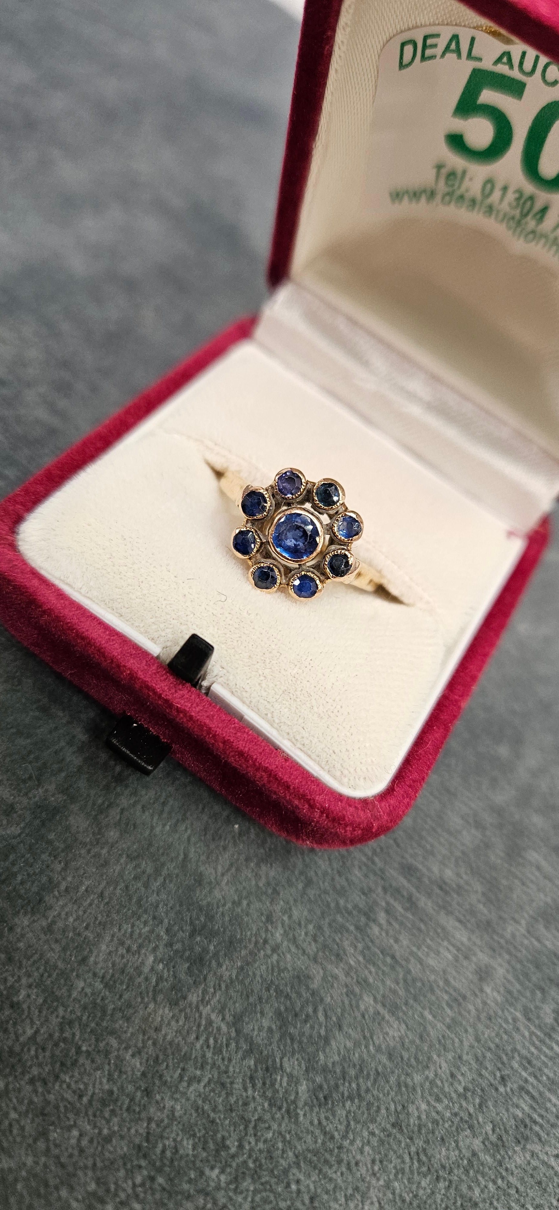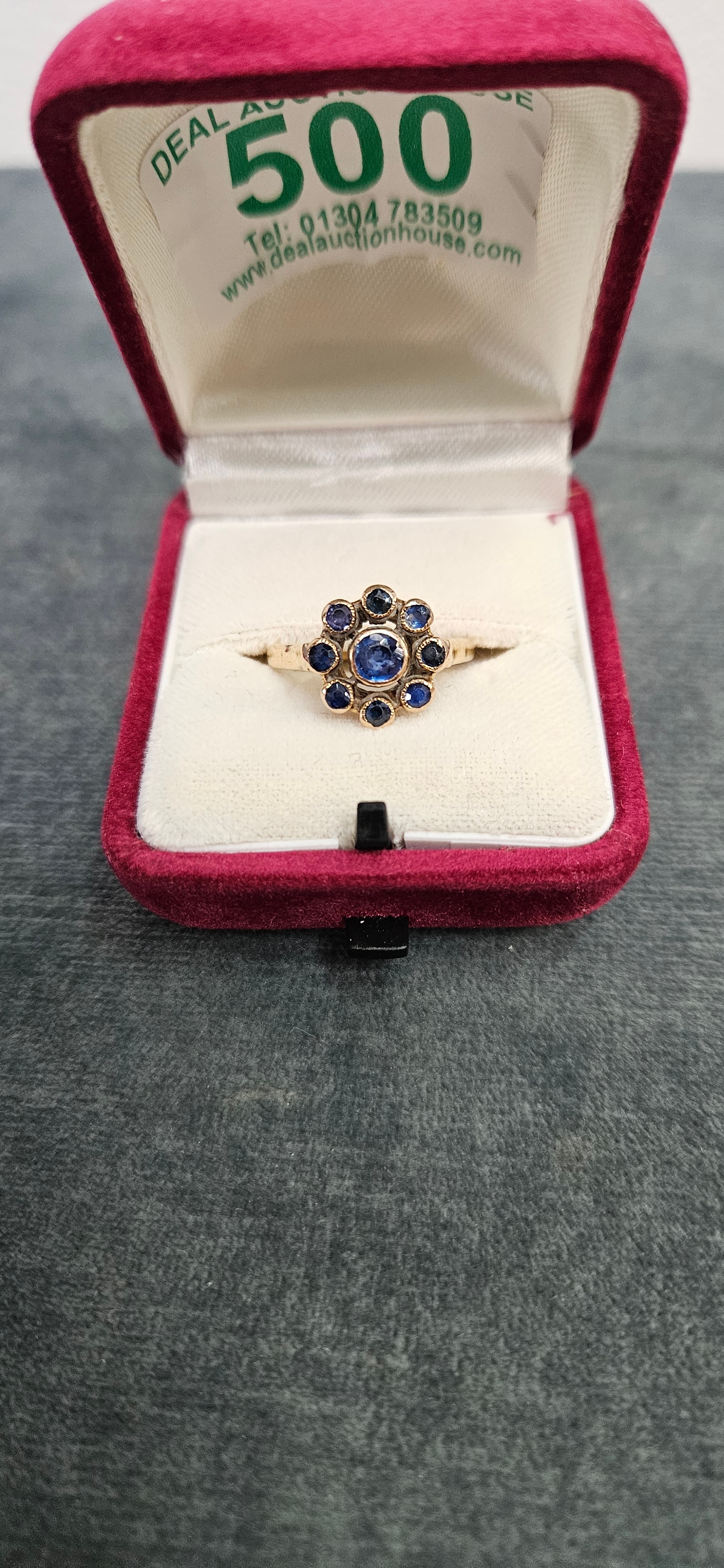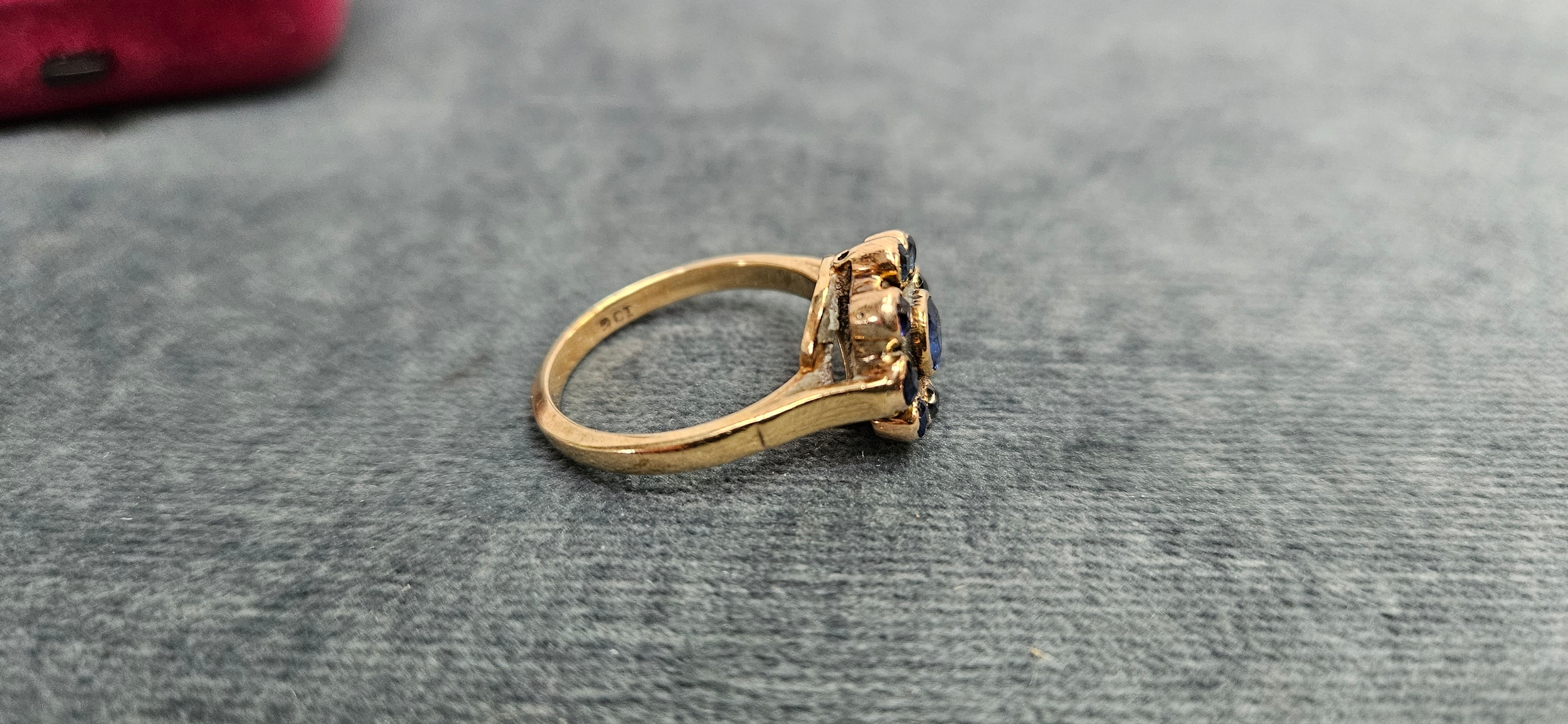 9ct Yellow gold sapphire daisy ring 4.12g