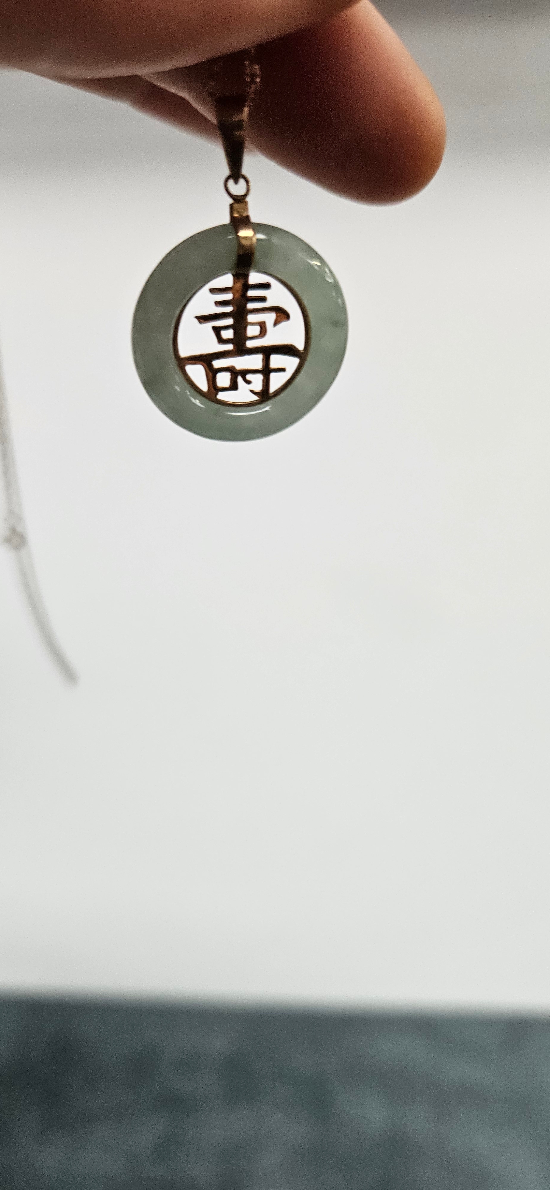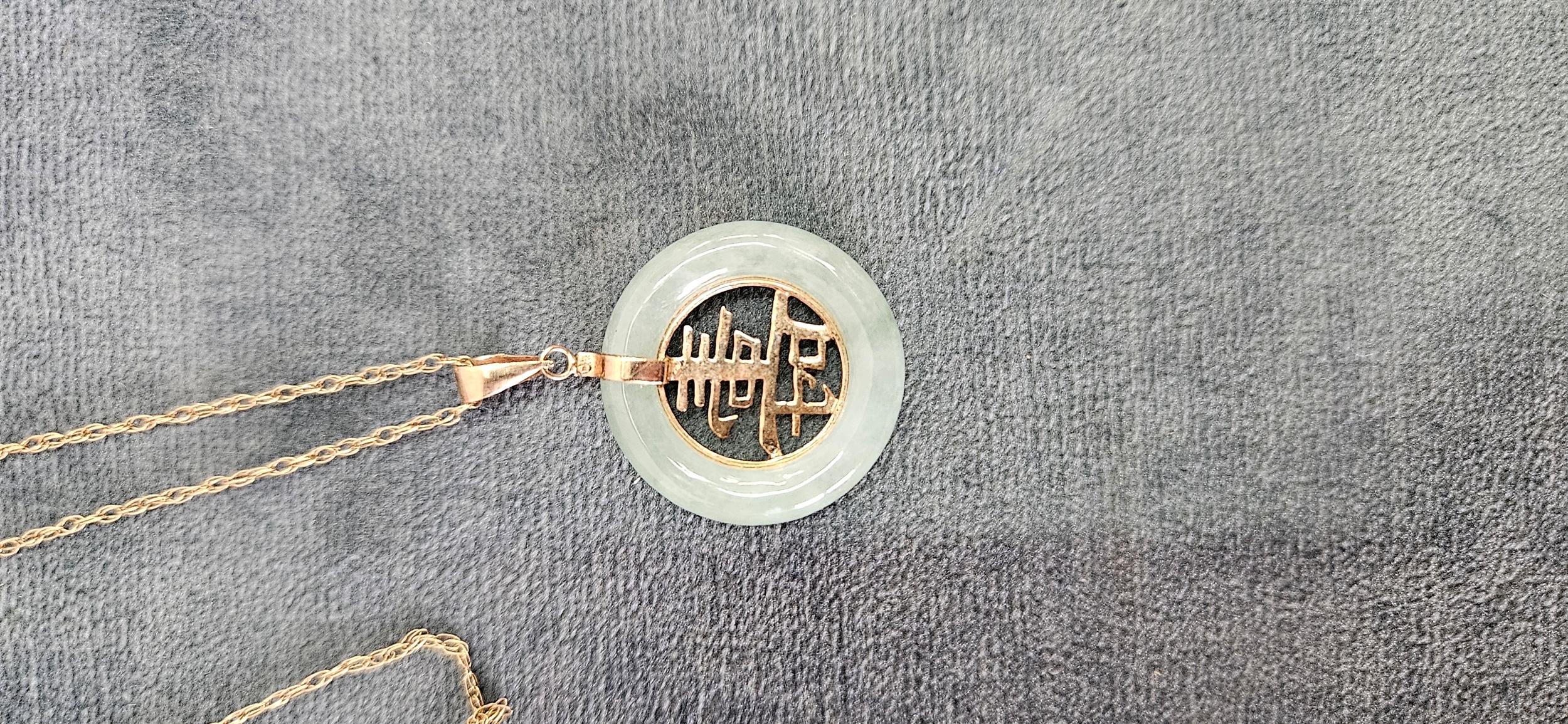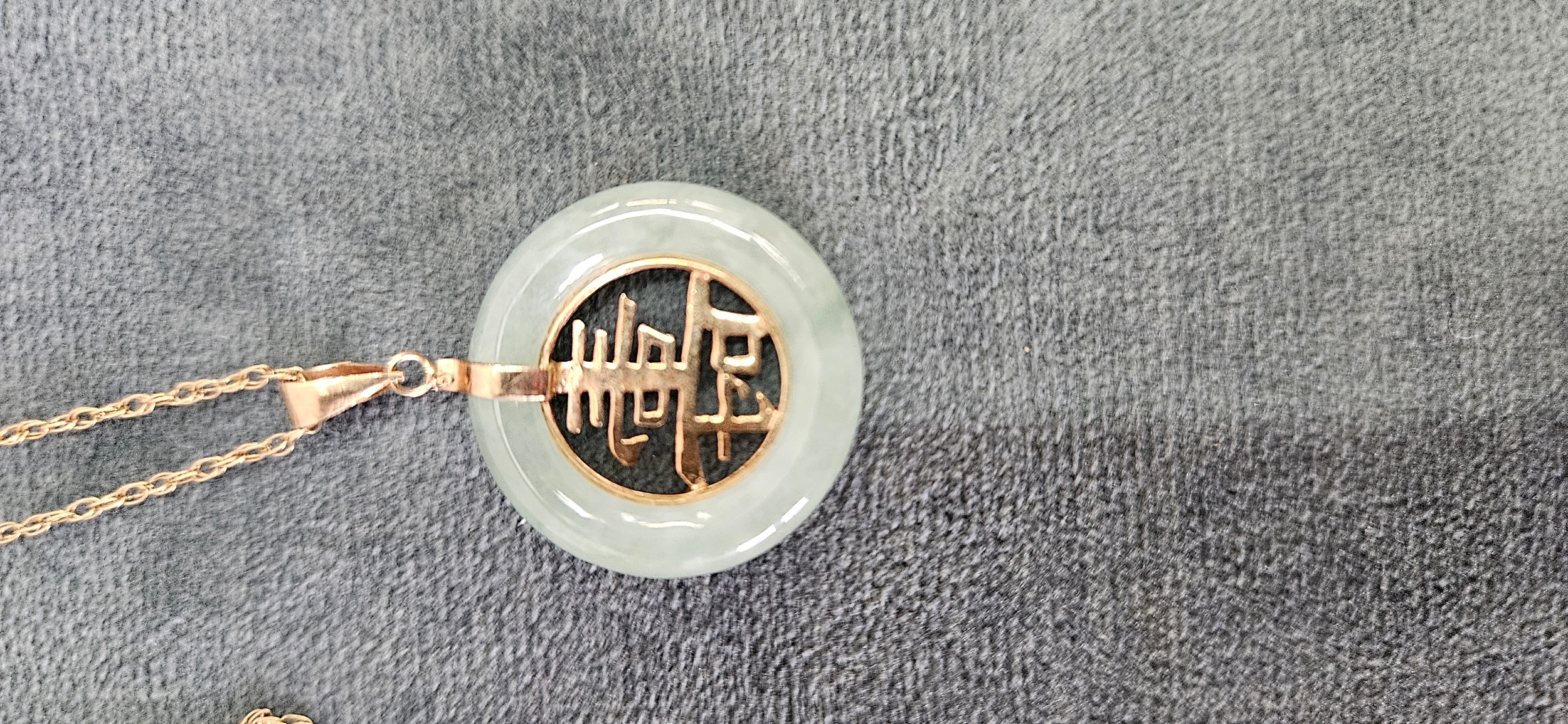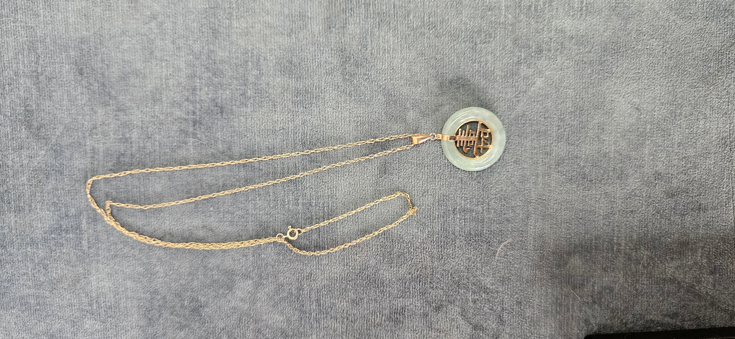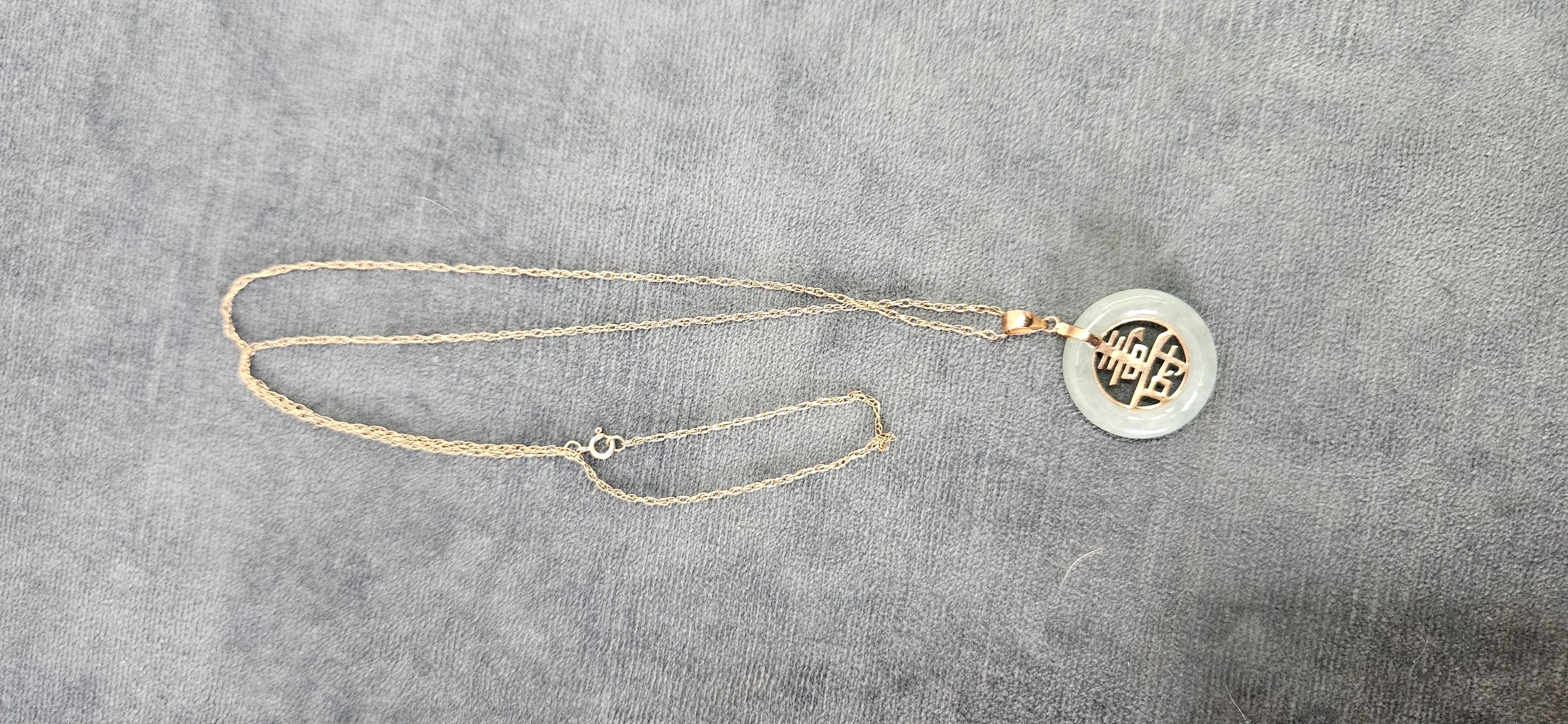 9ct Yellow gold jade necklace and pendant