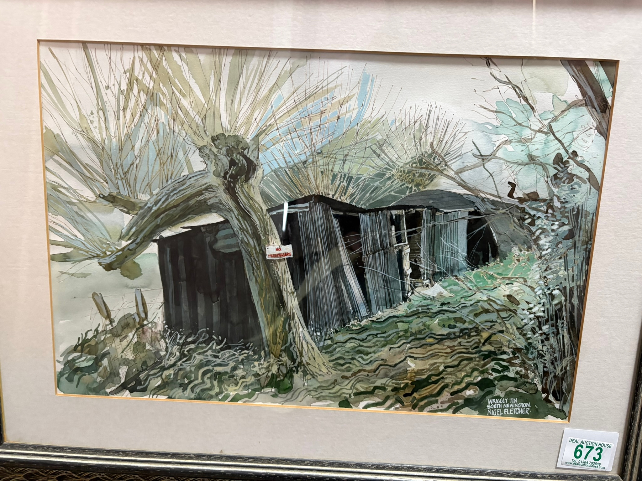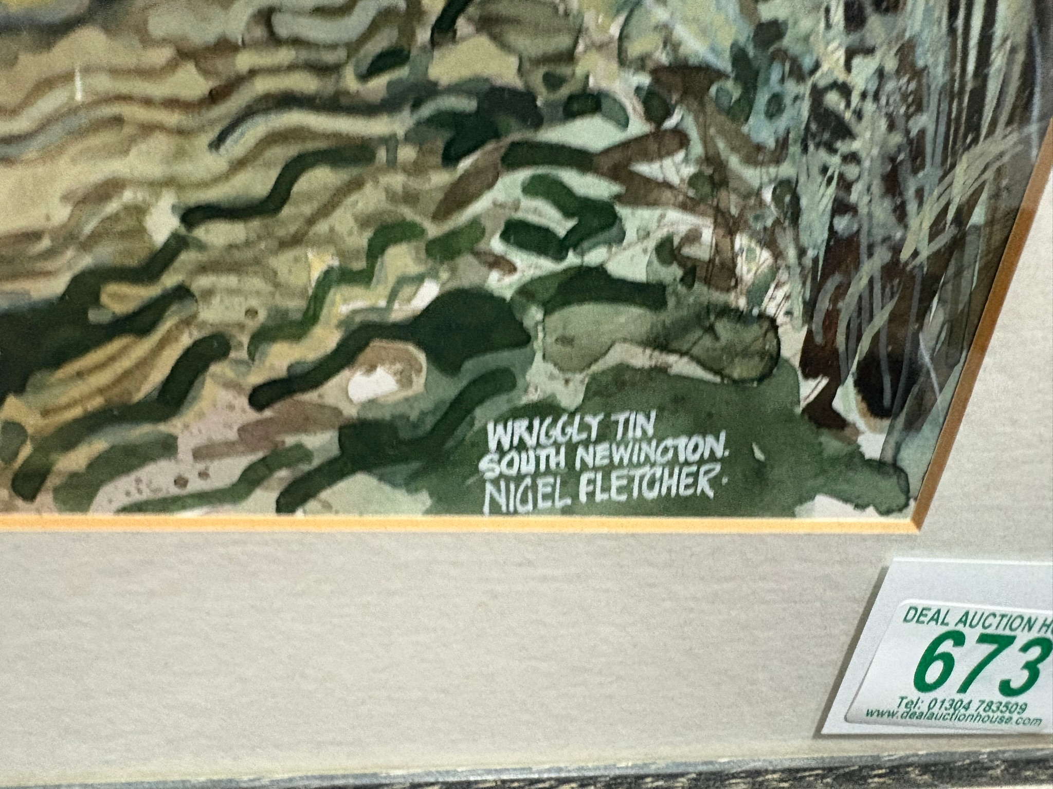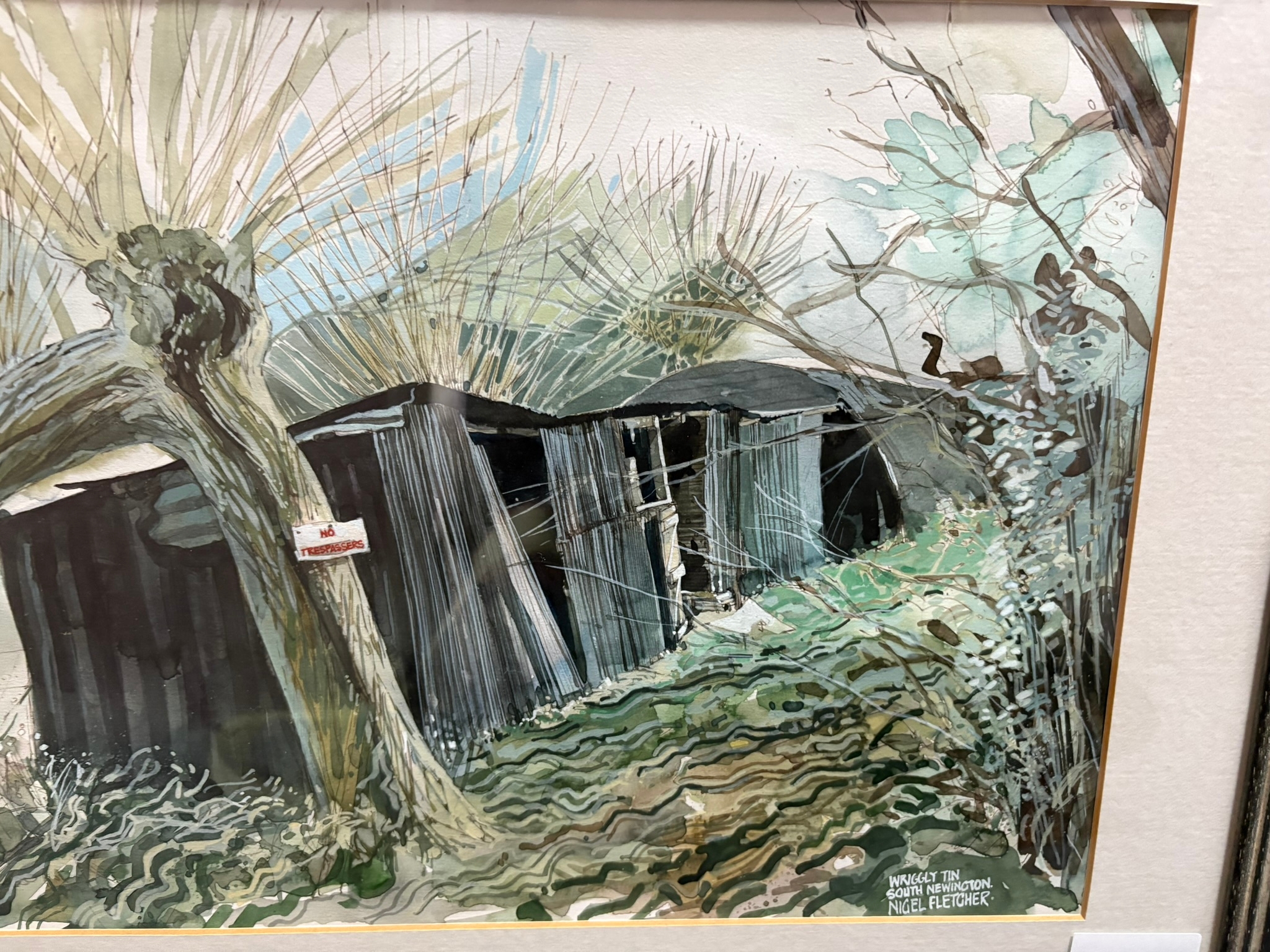 Watercolour titled ‘Wriggly Tin. South Newington’ by Nigel Fletcher