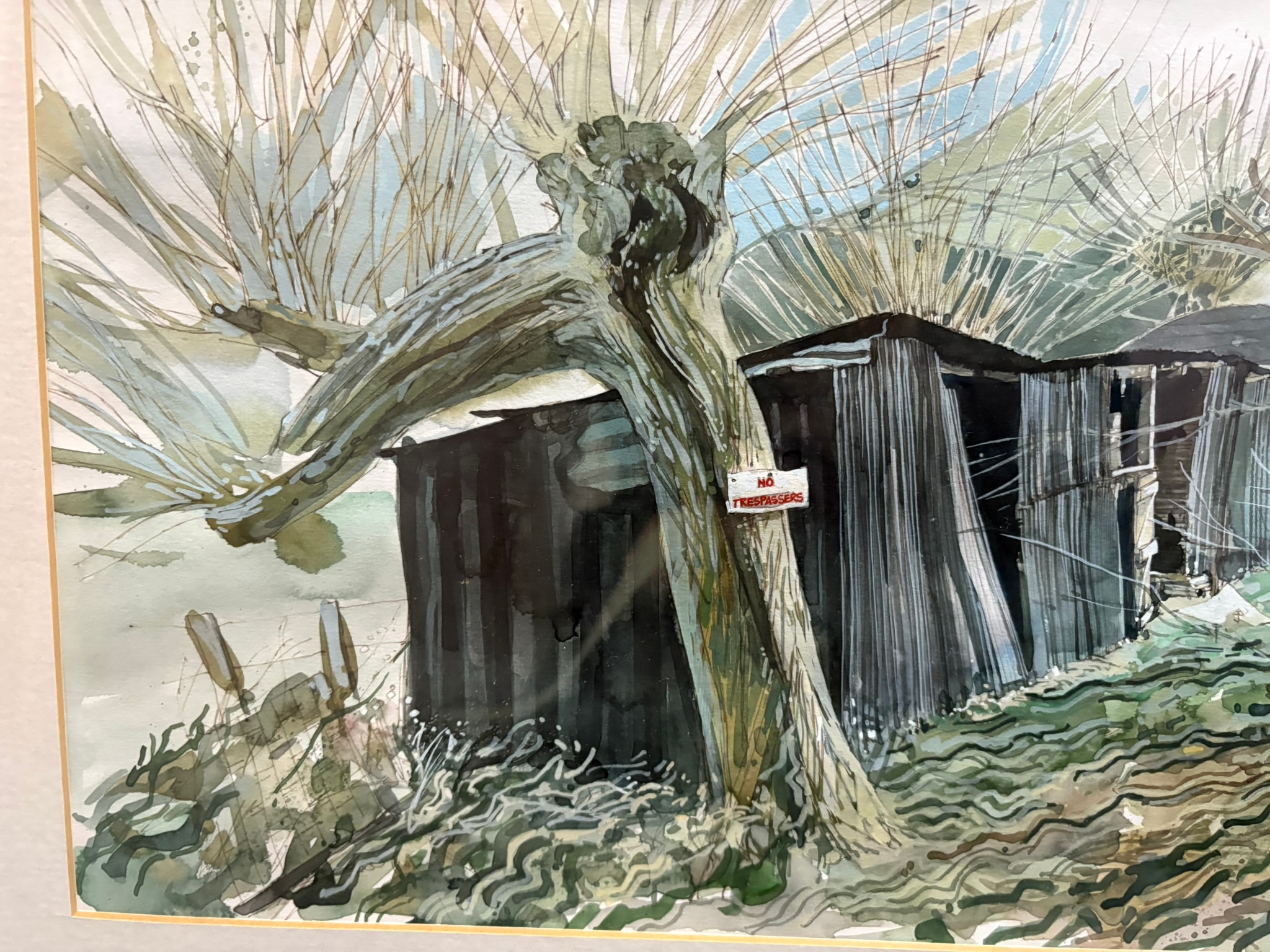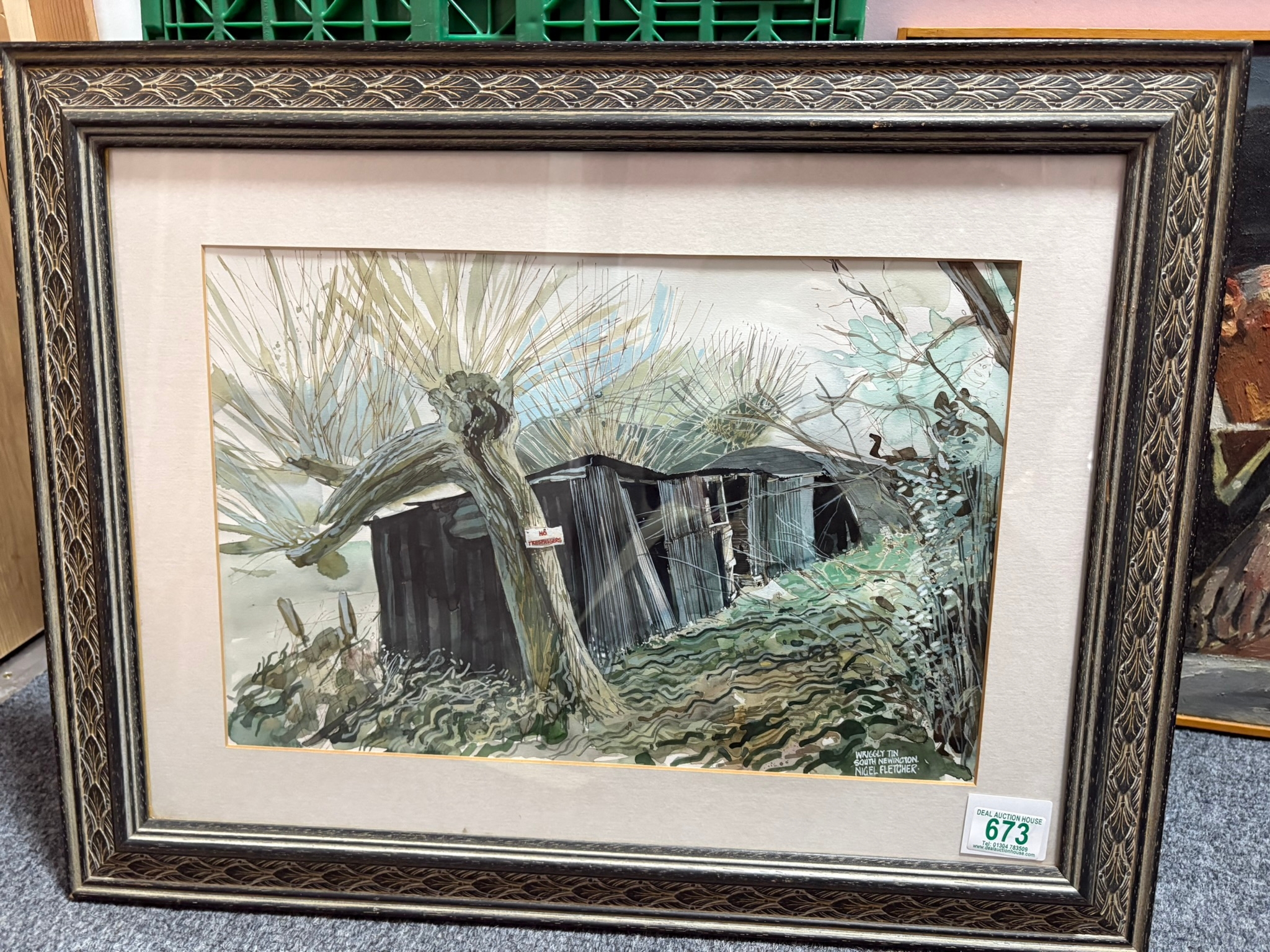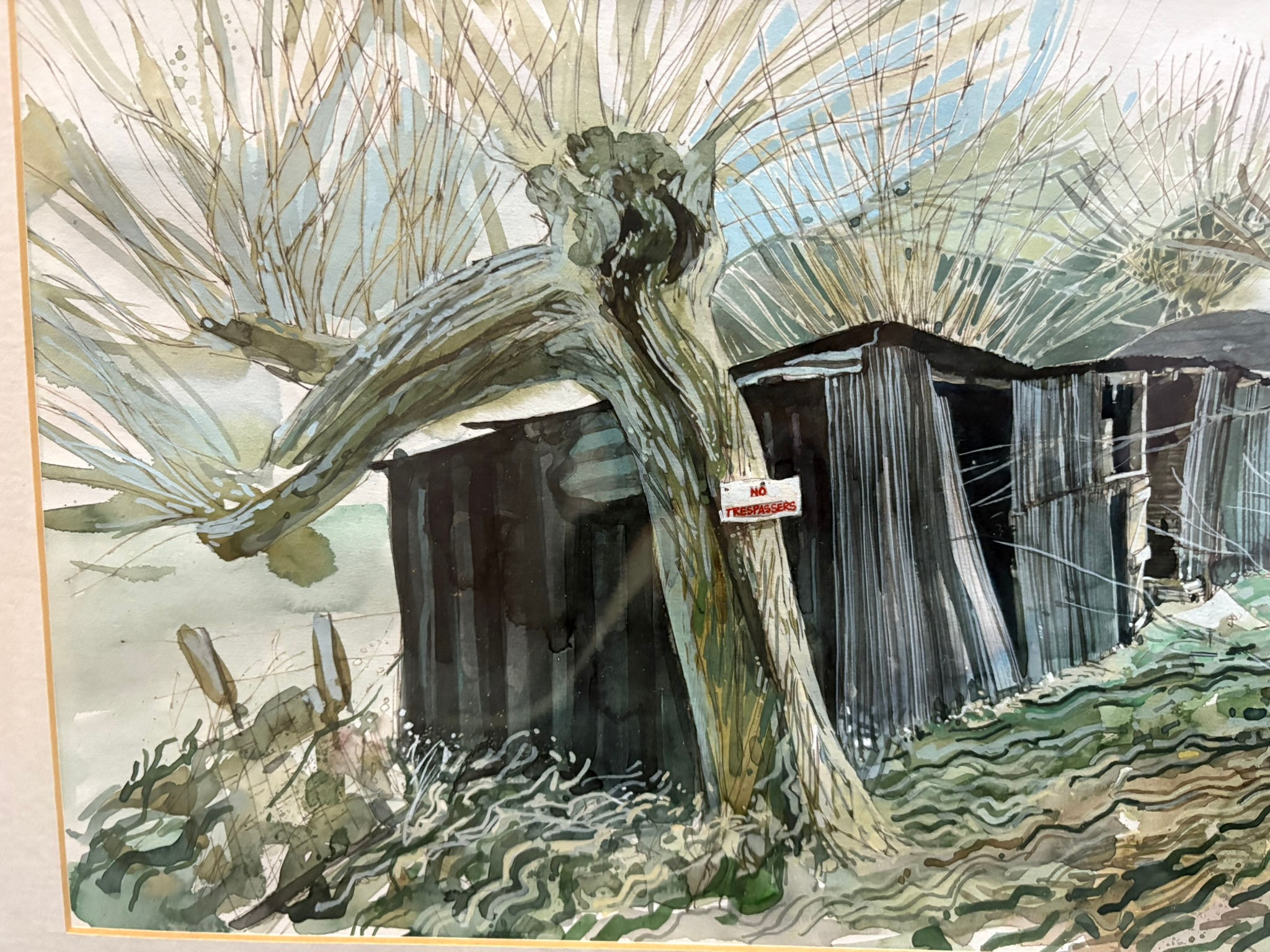 Watercolour titled ‘Wriggly Tin. South Newington’ by Nigel Fletcher