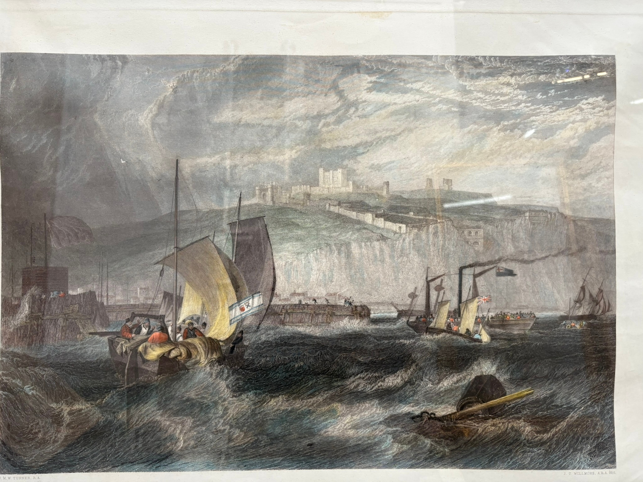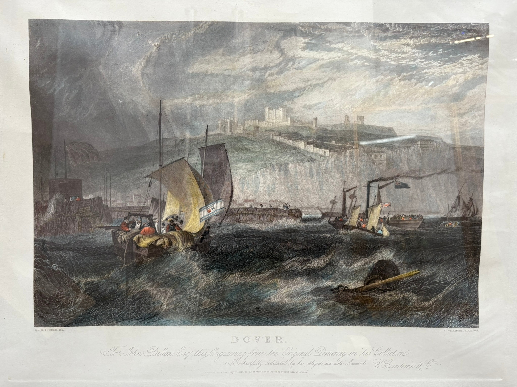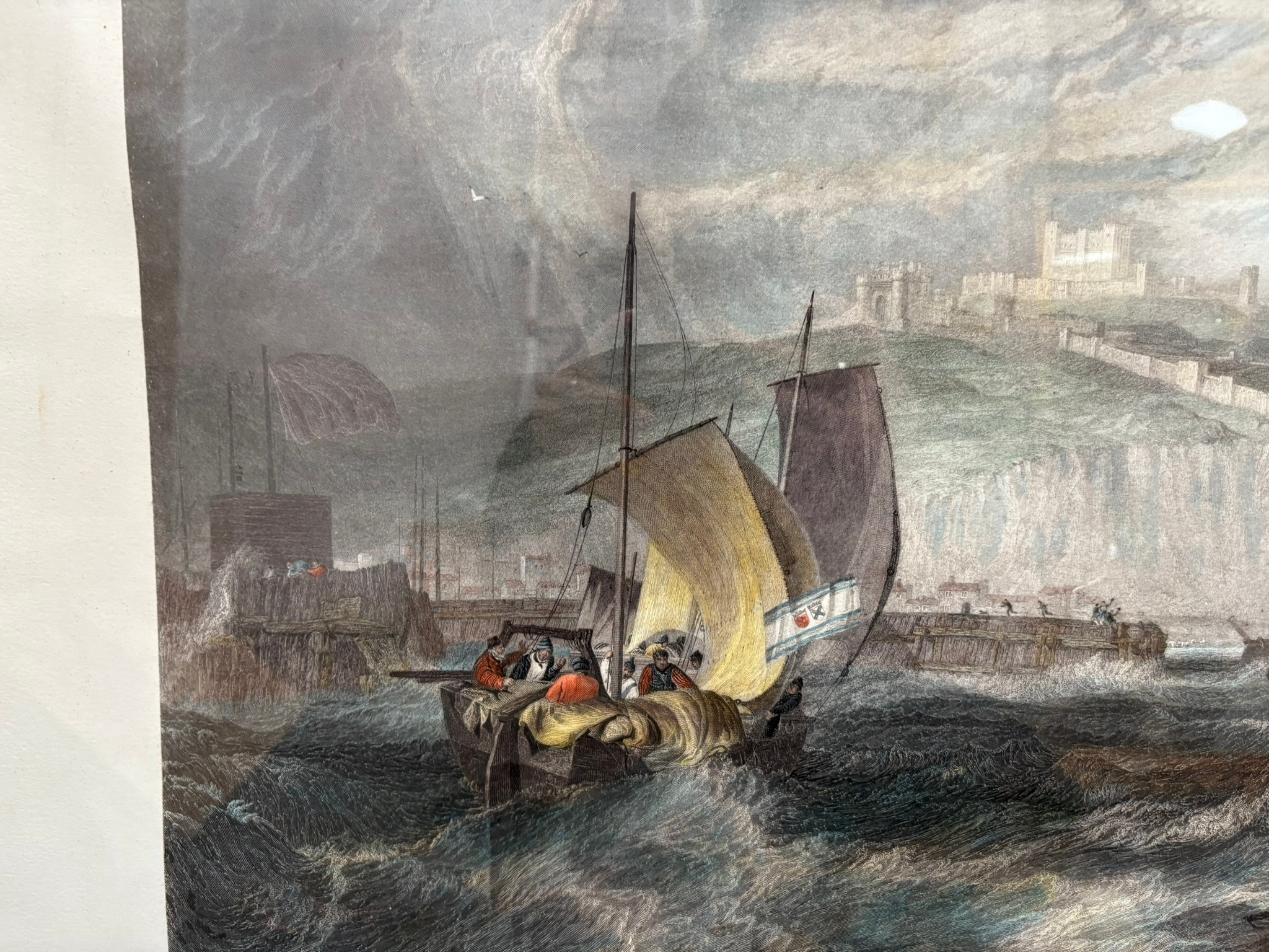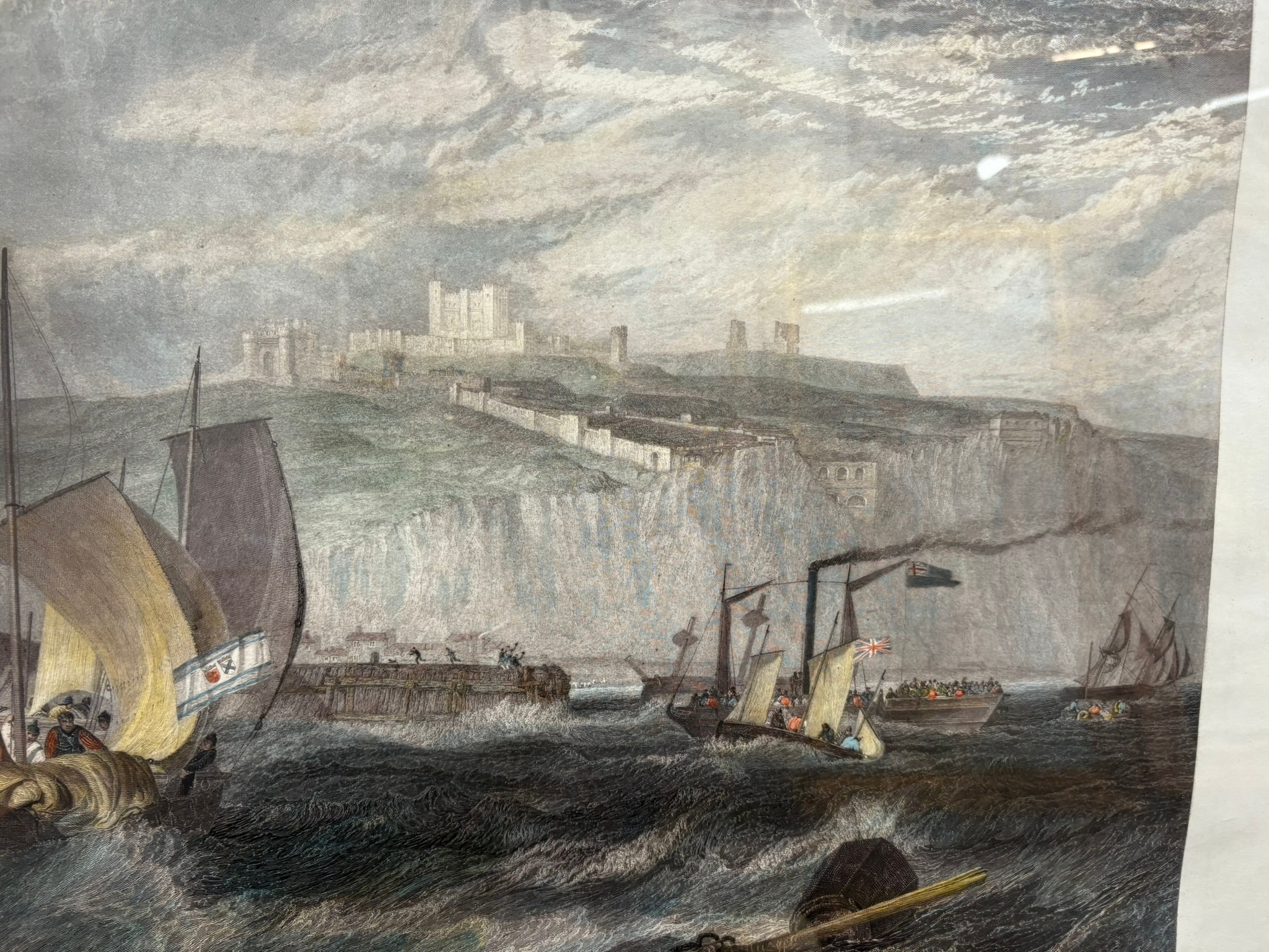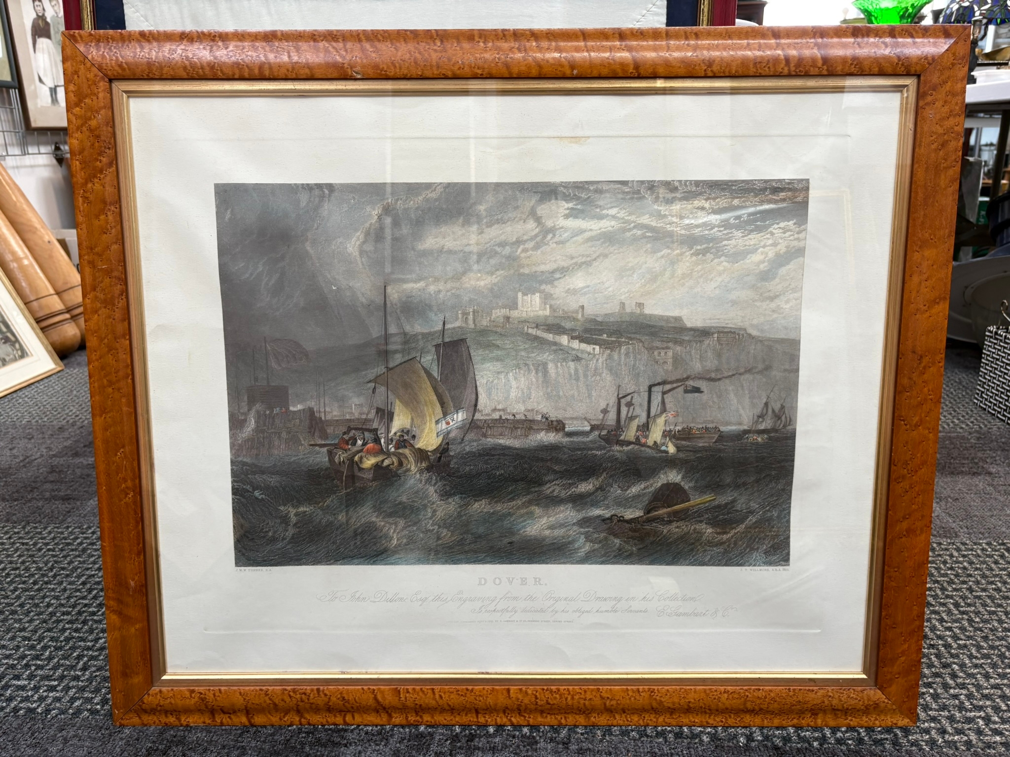 Large engraving of Dover Castle after Turner in burr frame
