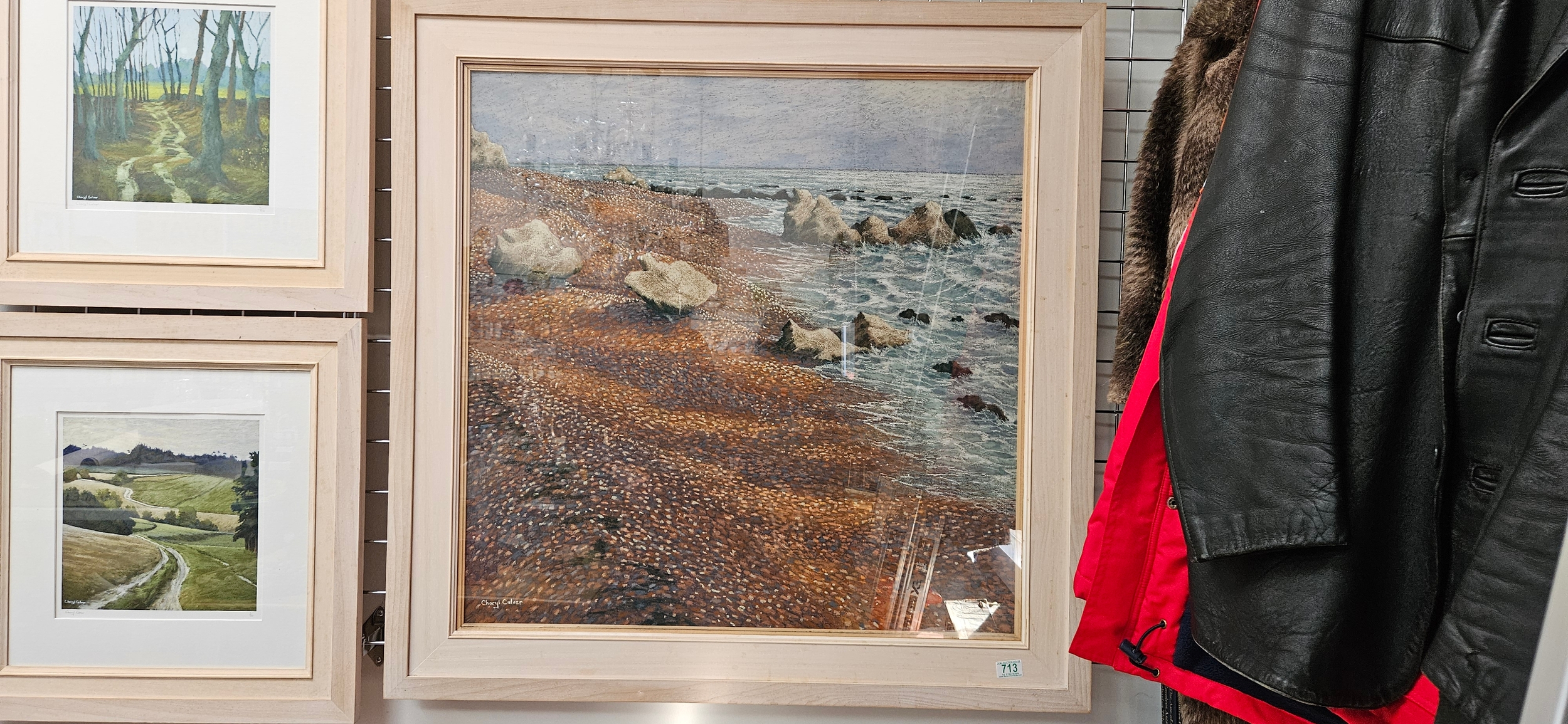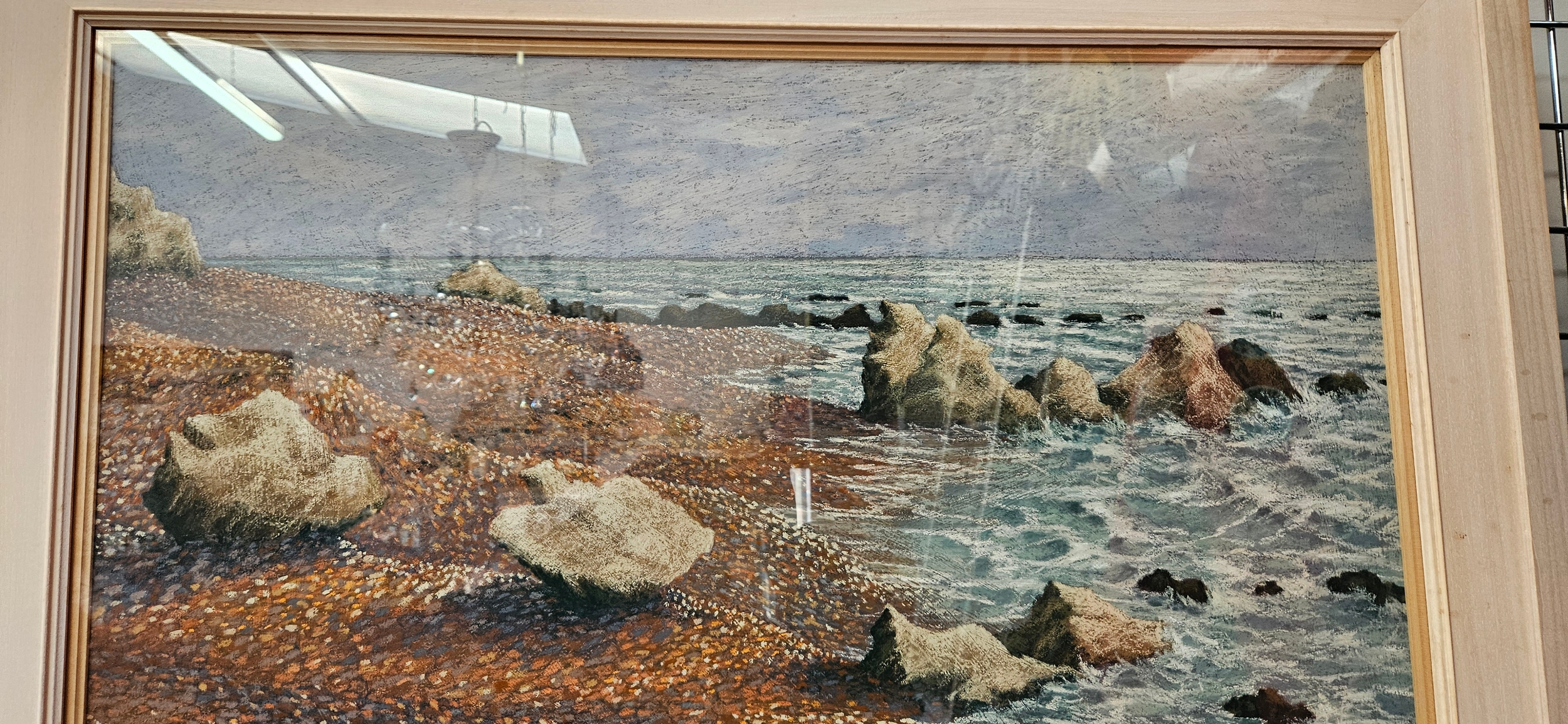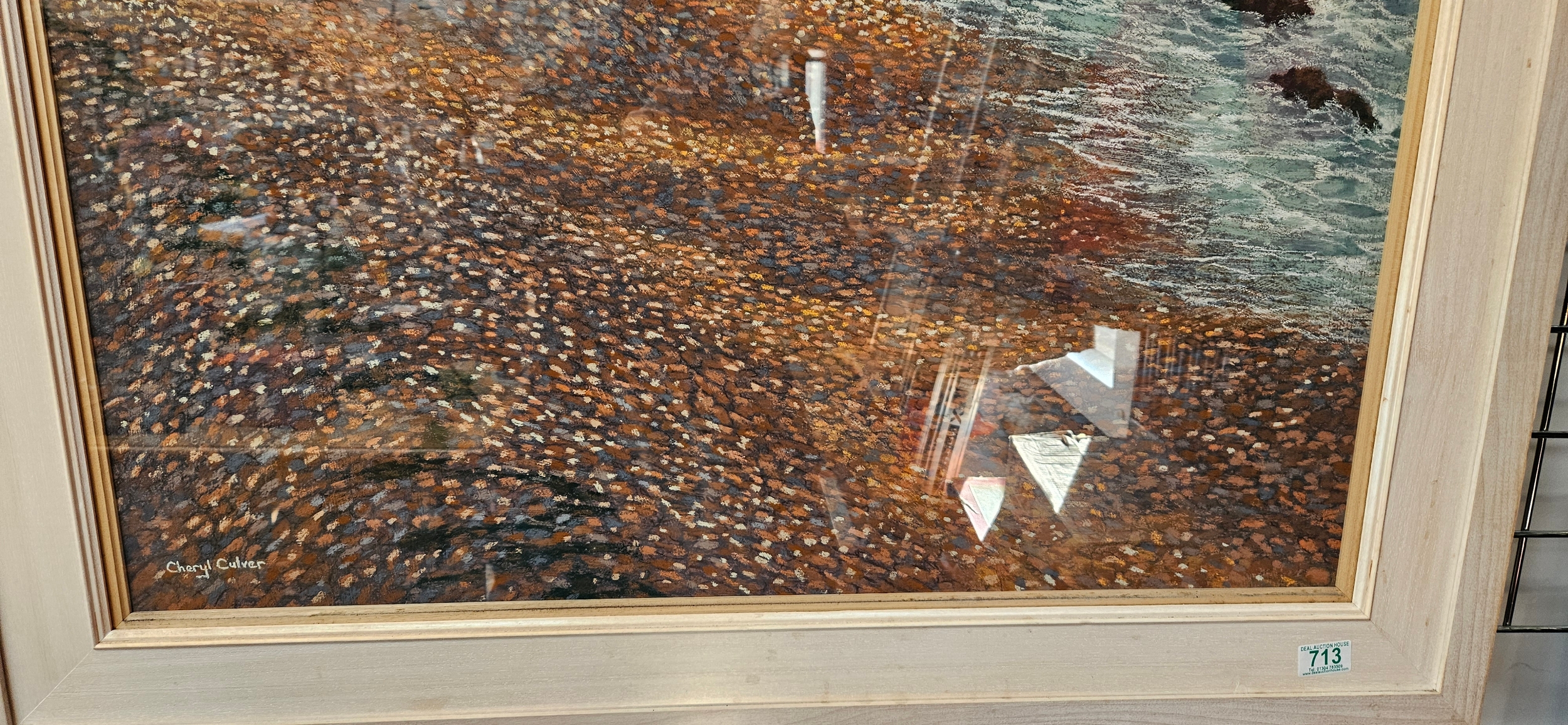 Large pastel painting of a beach and sea scape signed Cheryl Culver