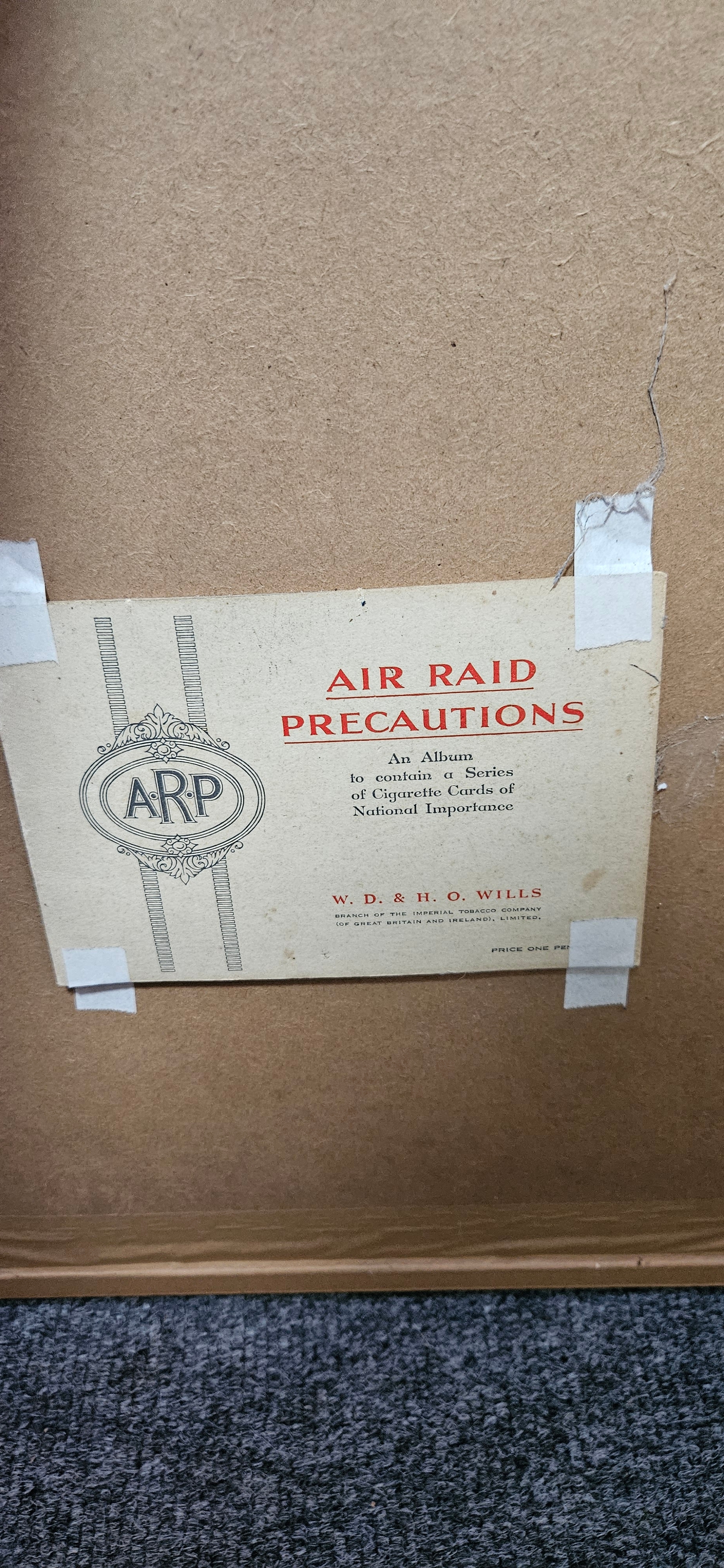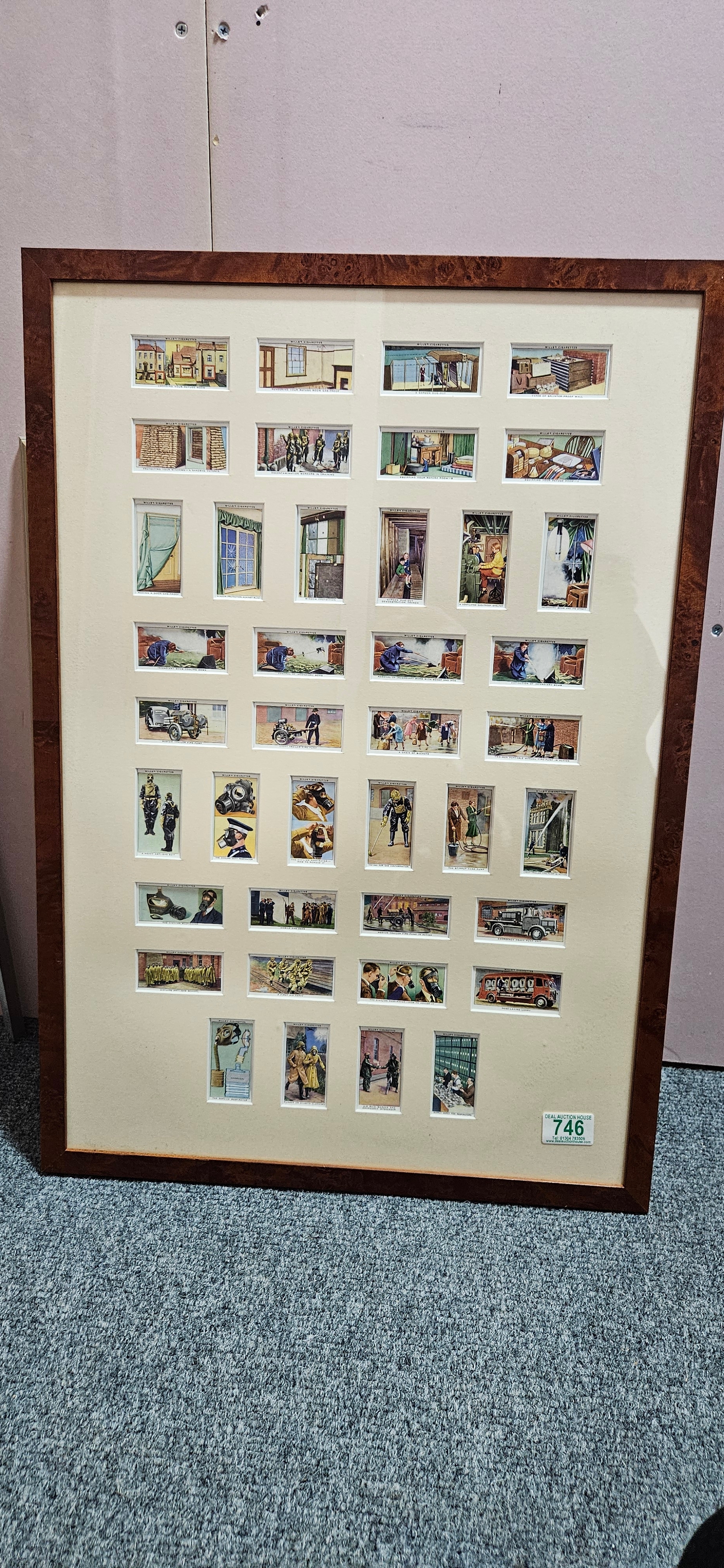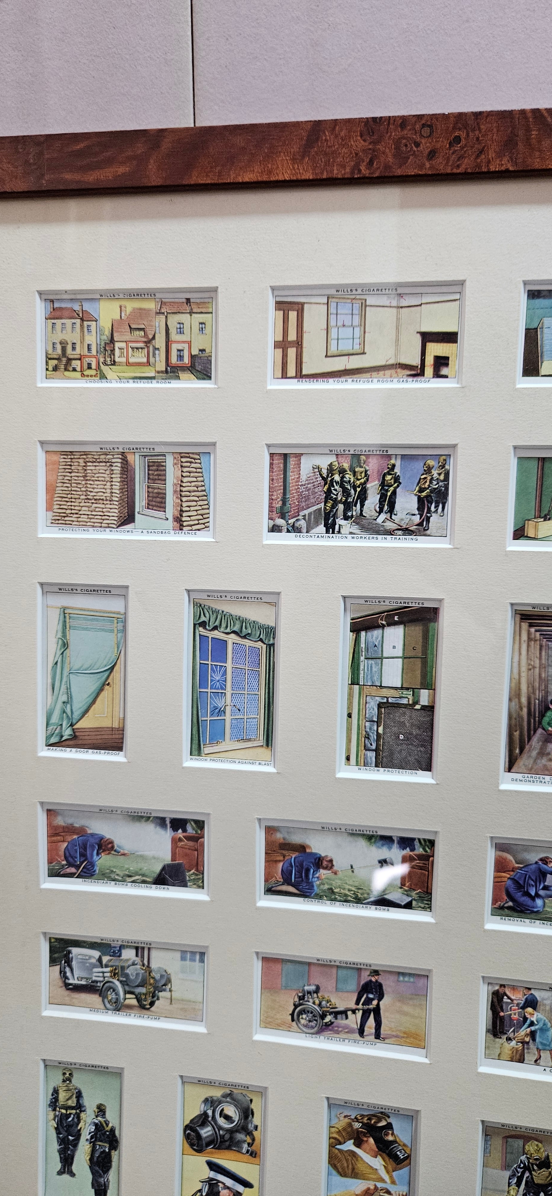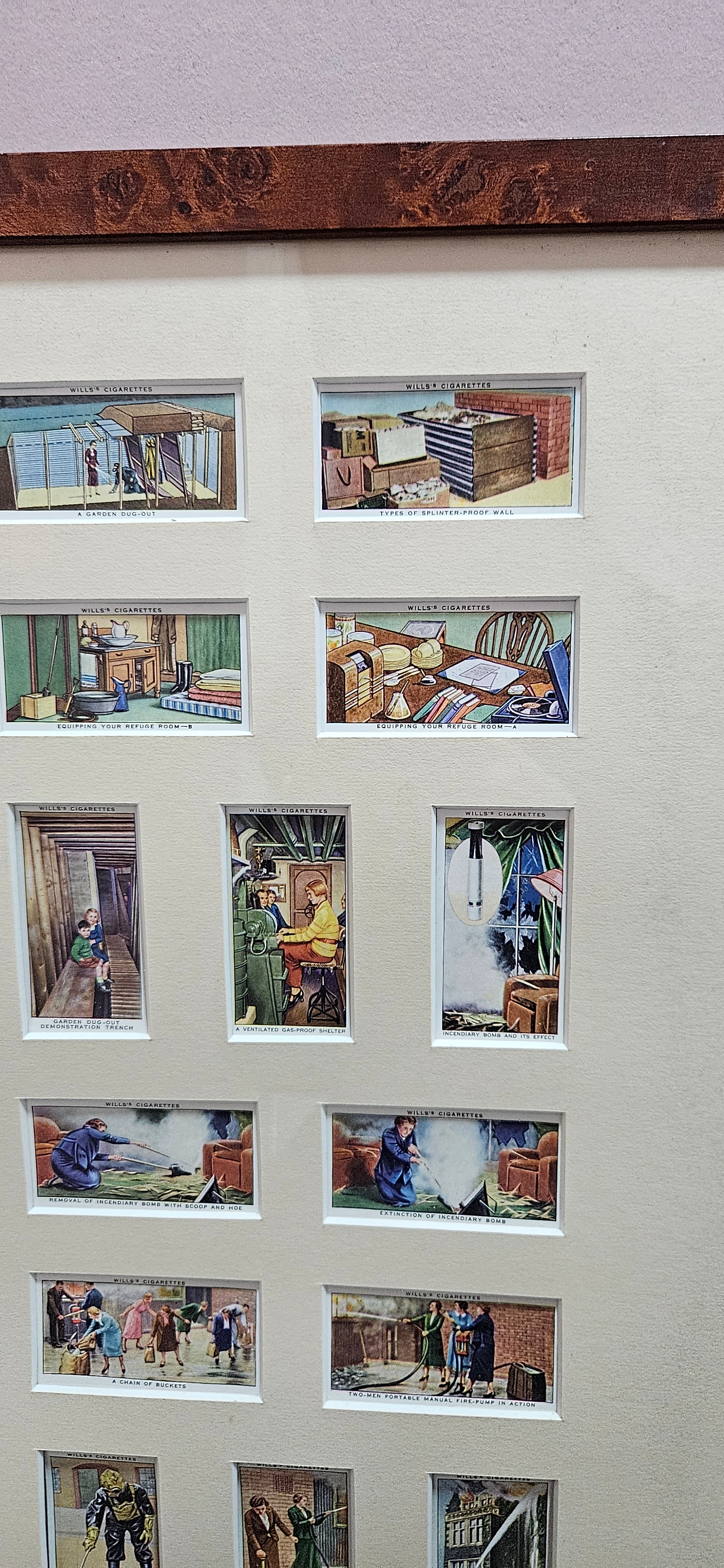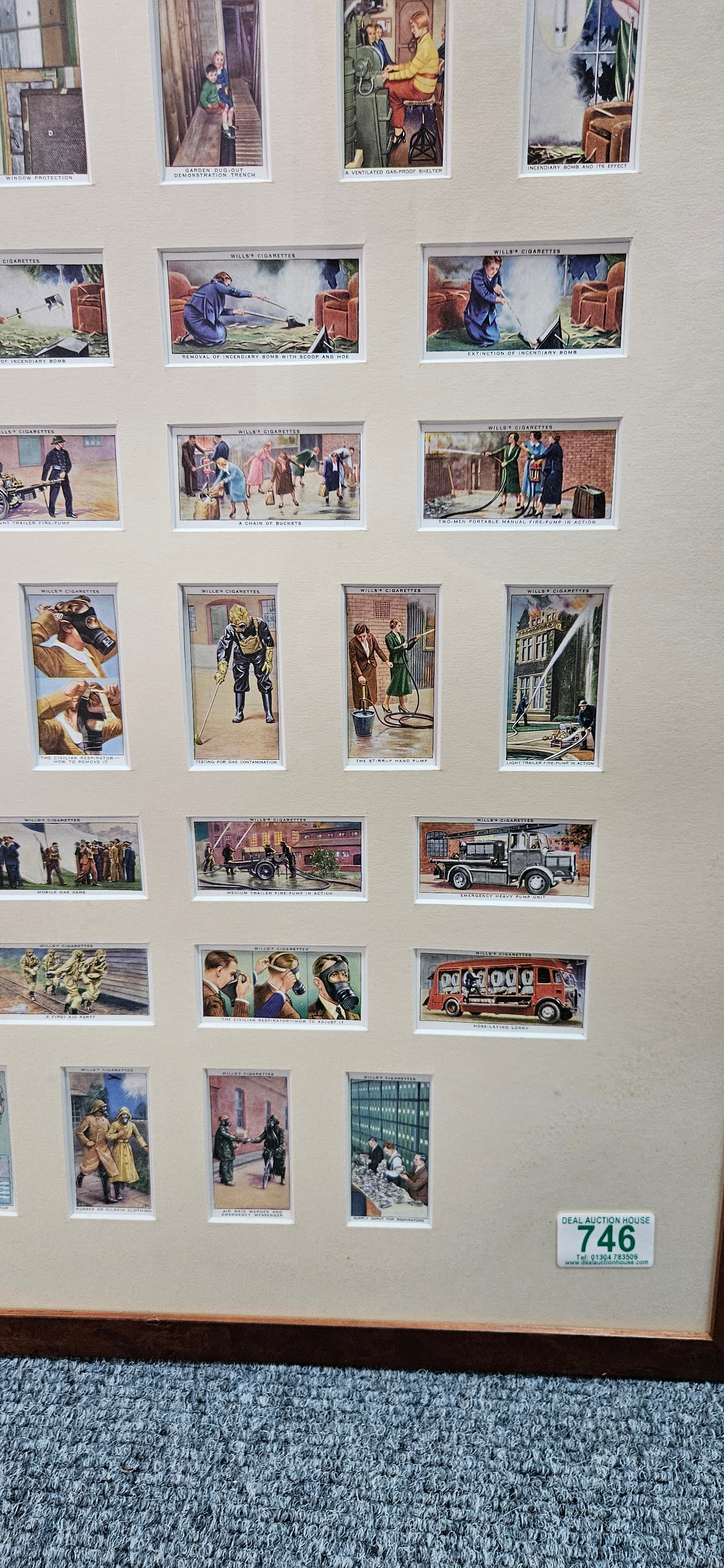 Framed and glazed set of cigarette cards – Air Raid Precautions