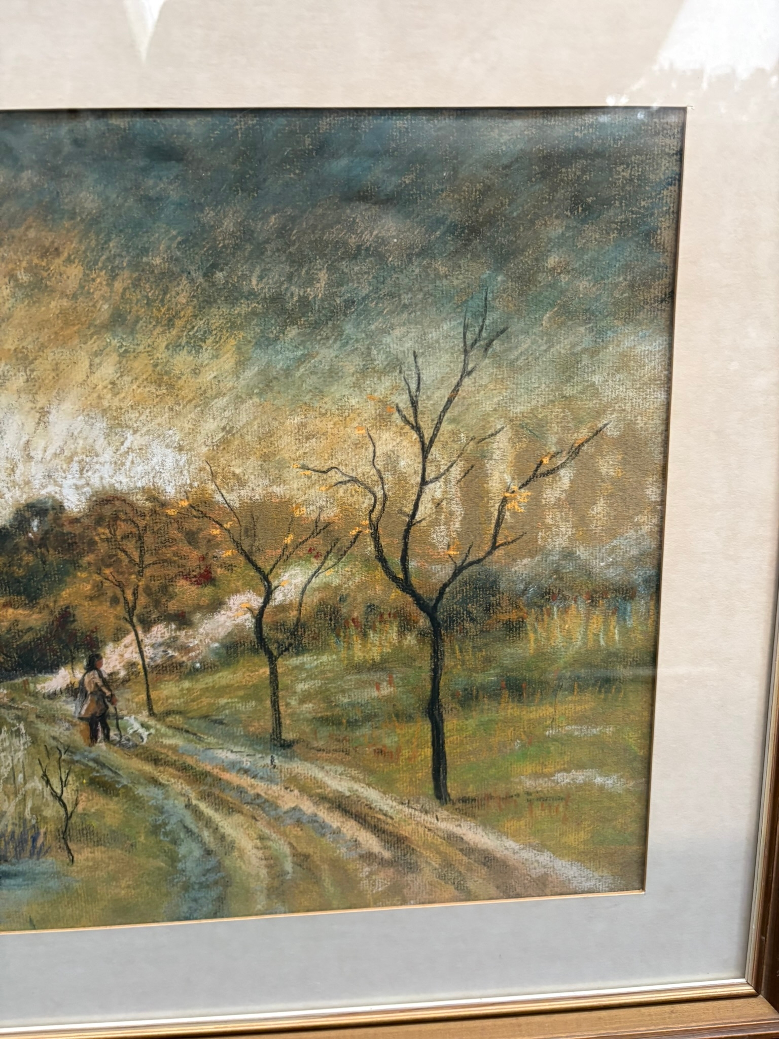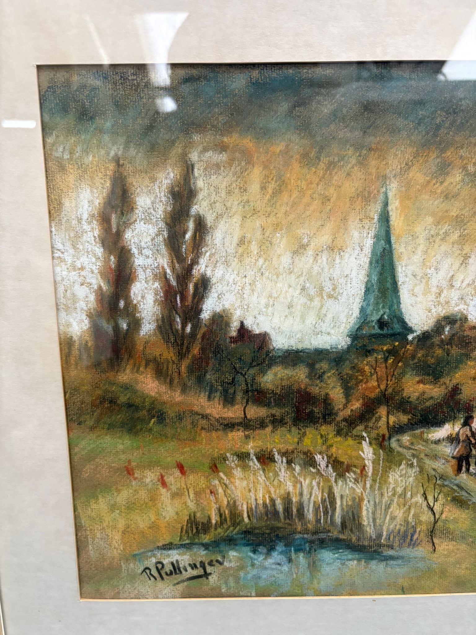 Painting with church in distance signed Pullinger