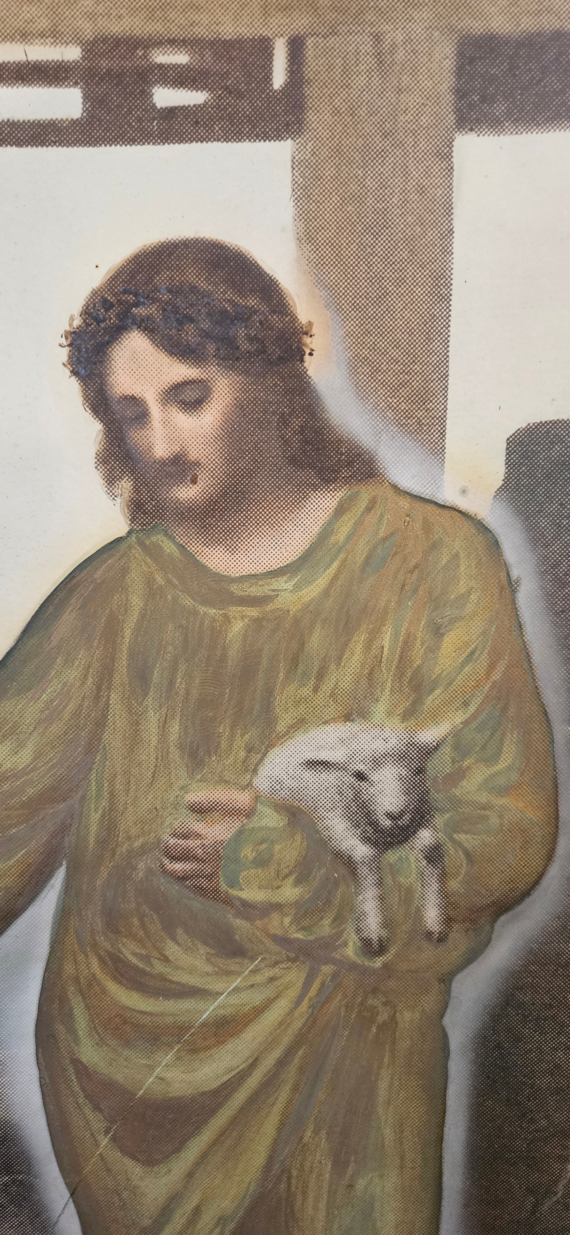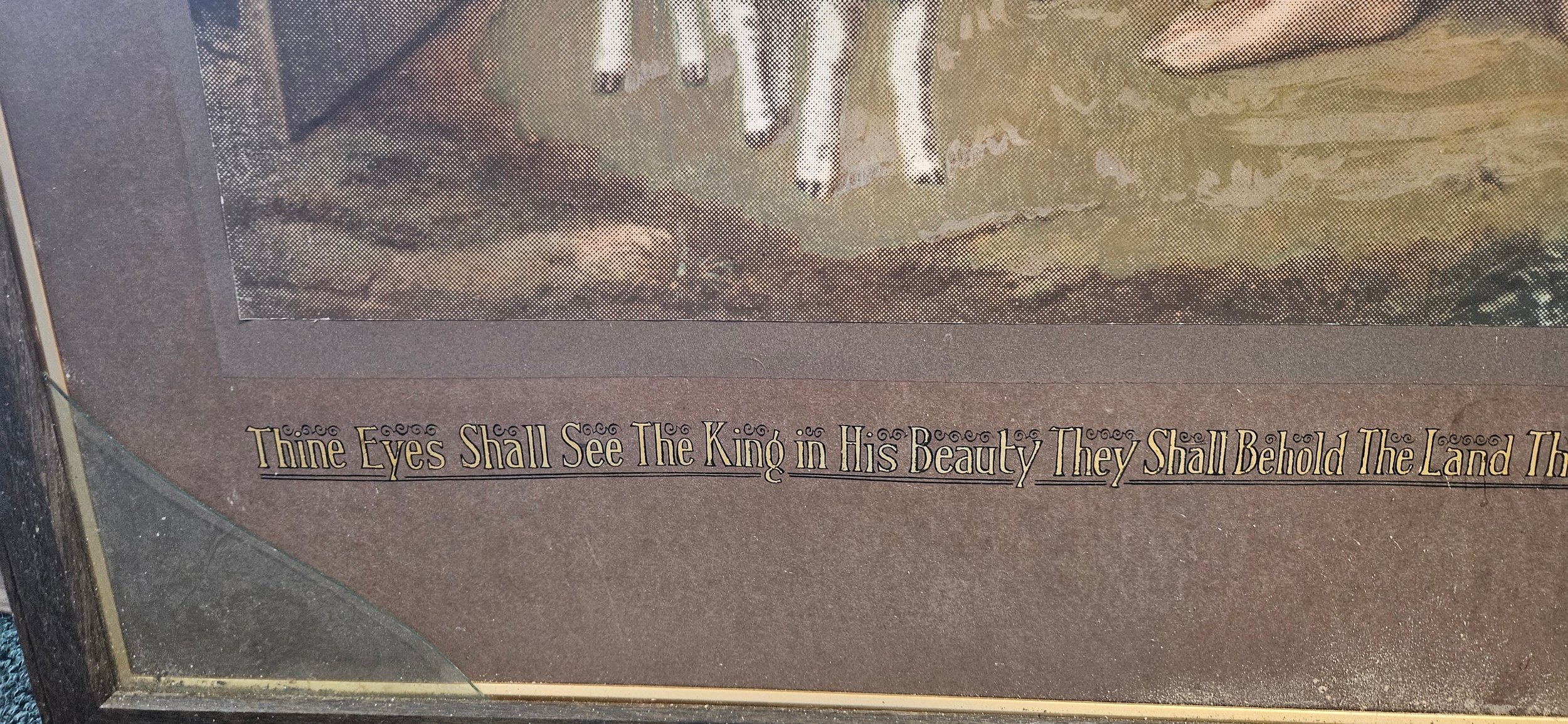 Antique religious print titled "The Tender Shepherd" by Charles Joseph Staniland – missing glass