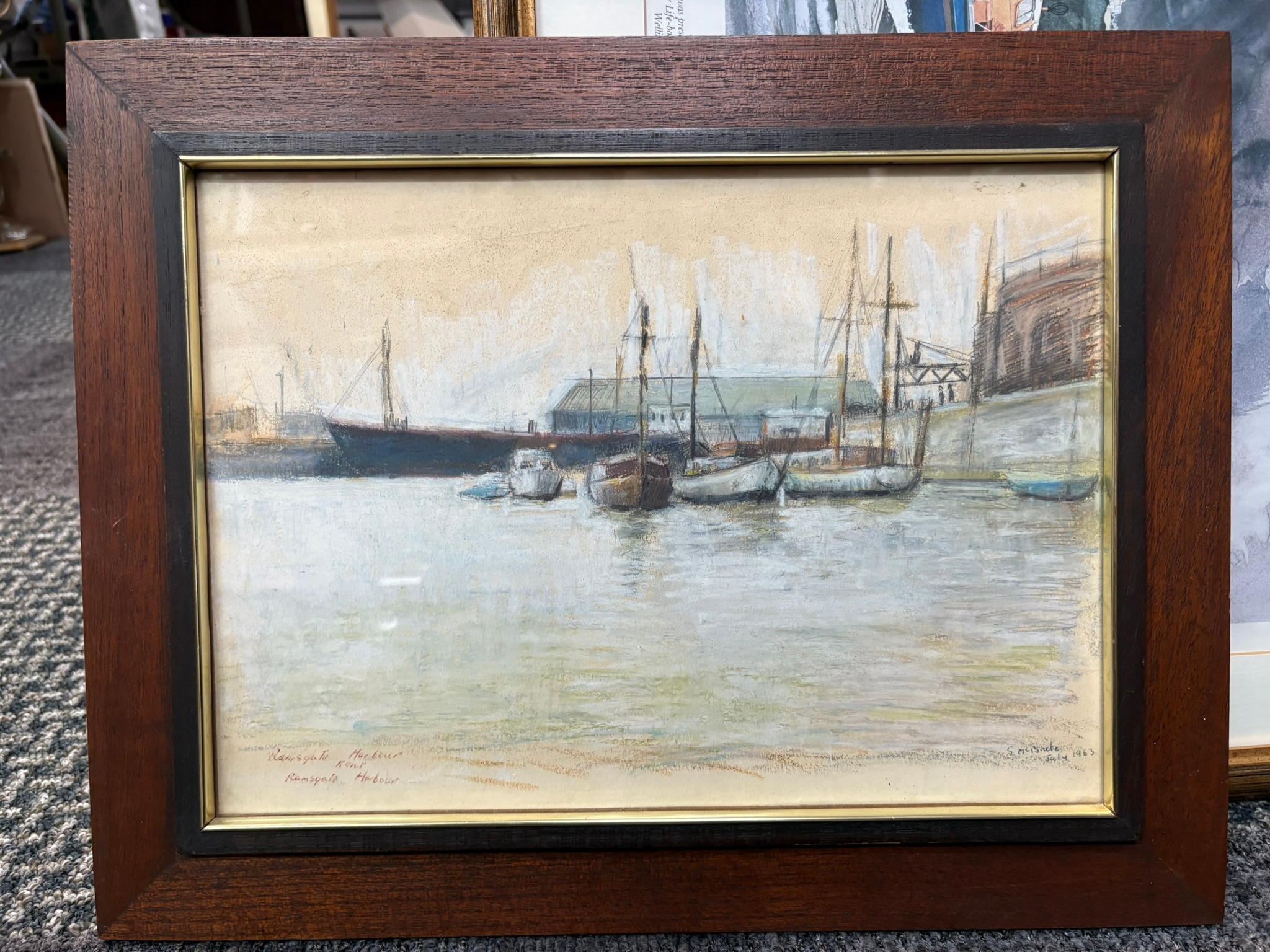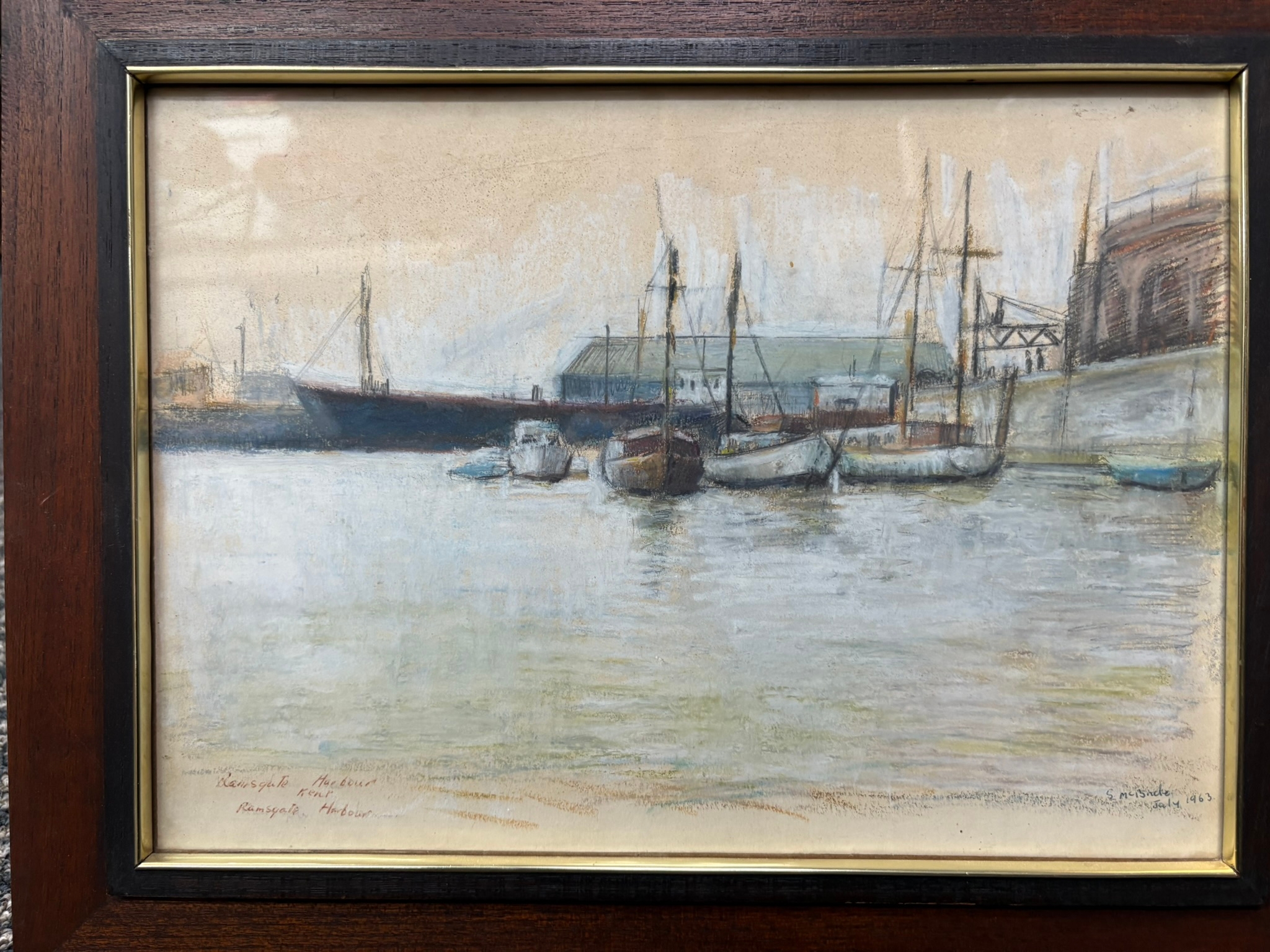 Watercolour/ pastel drawing of Ramsgate Harbour signed S. Mcbride 1963