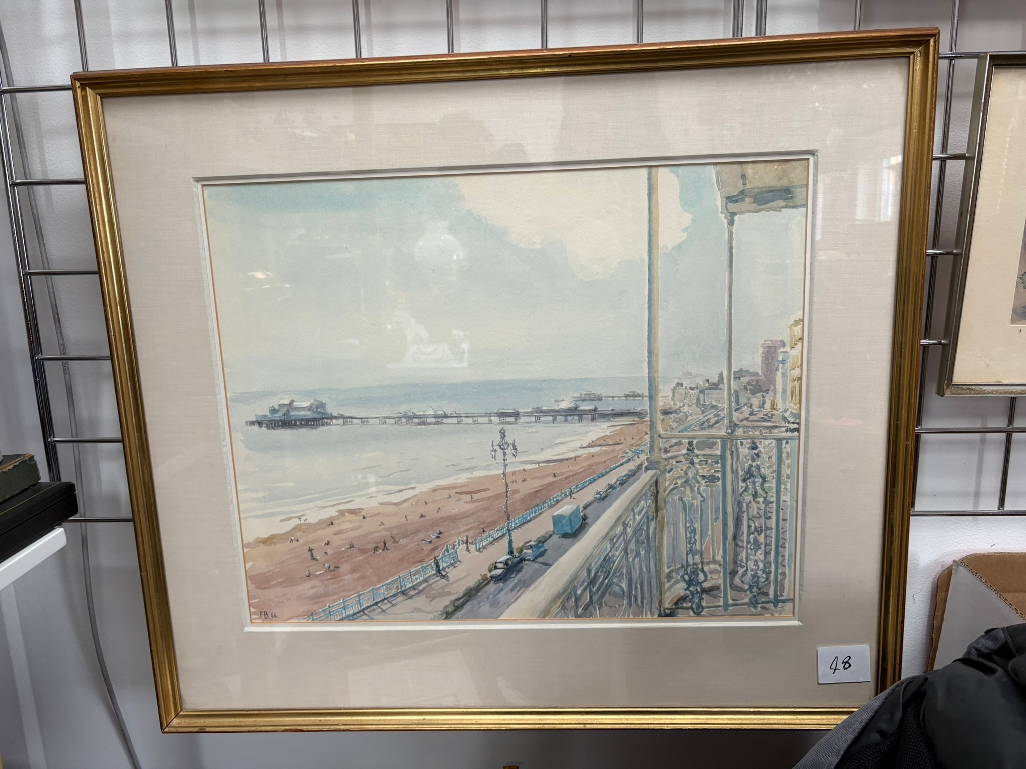 Watercolour painting of Brighton seafront a pier initialed F.B 66 – Frederick Beddington