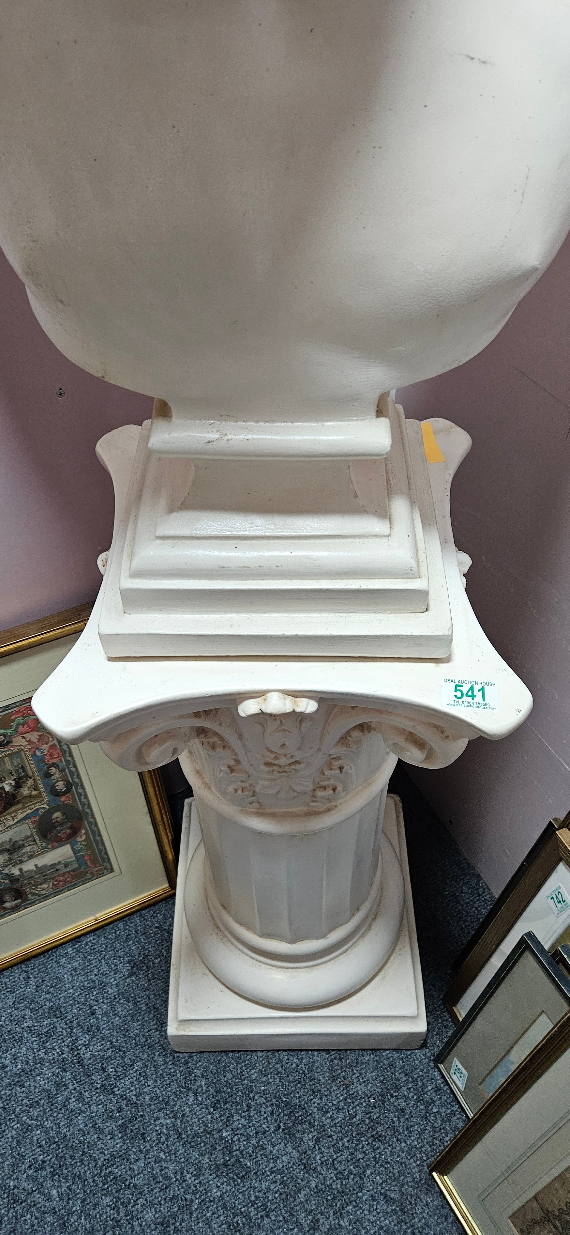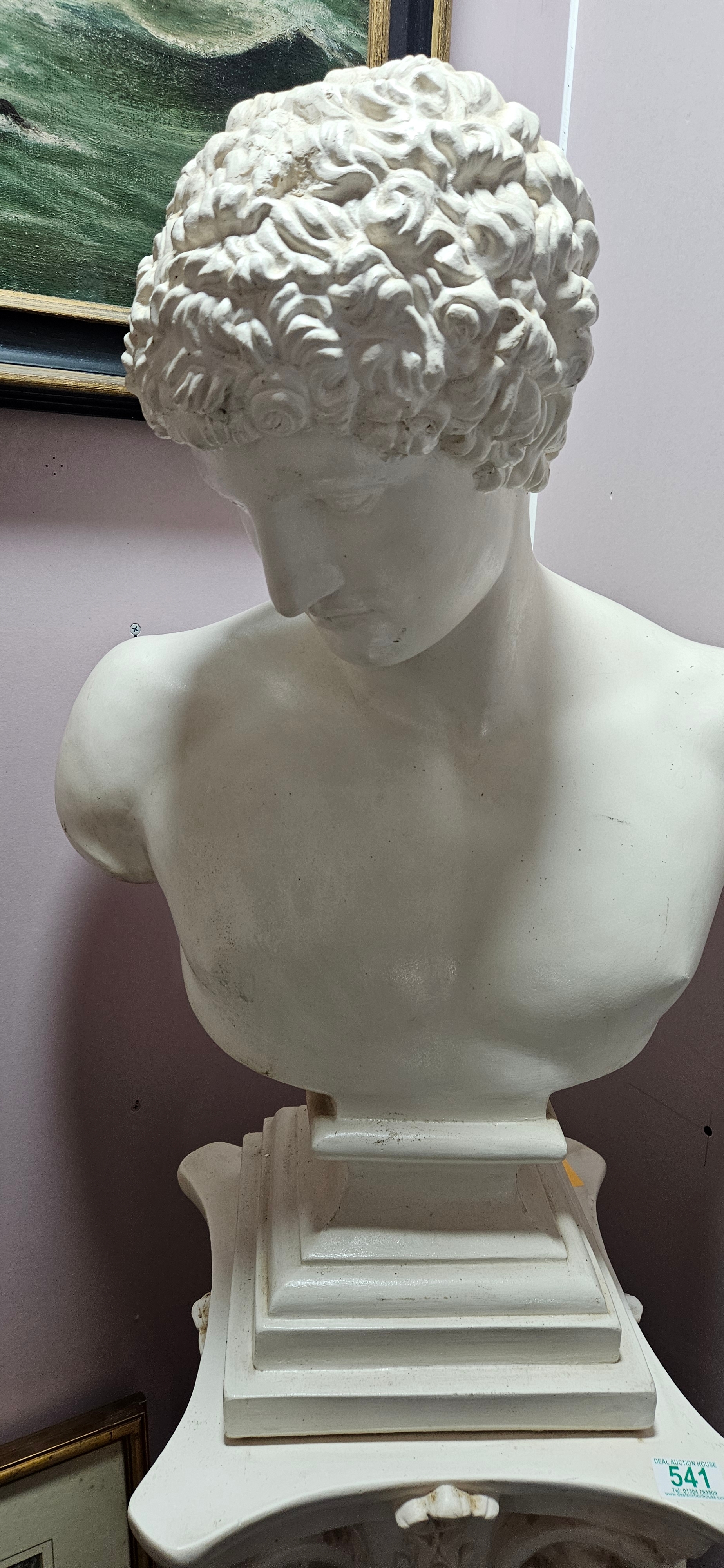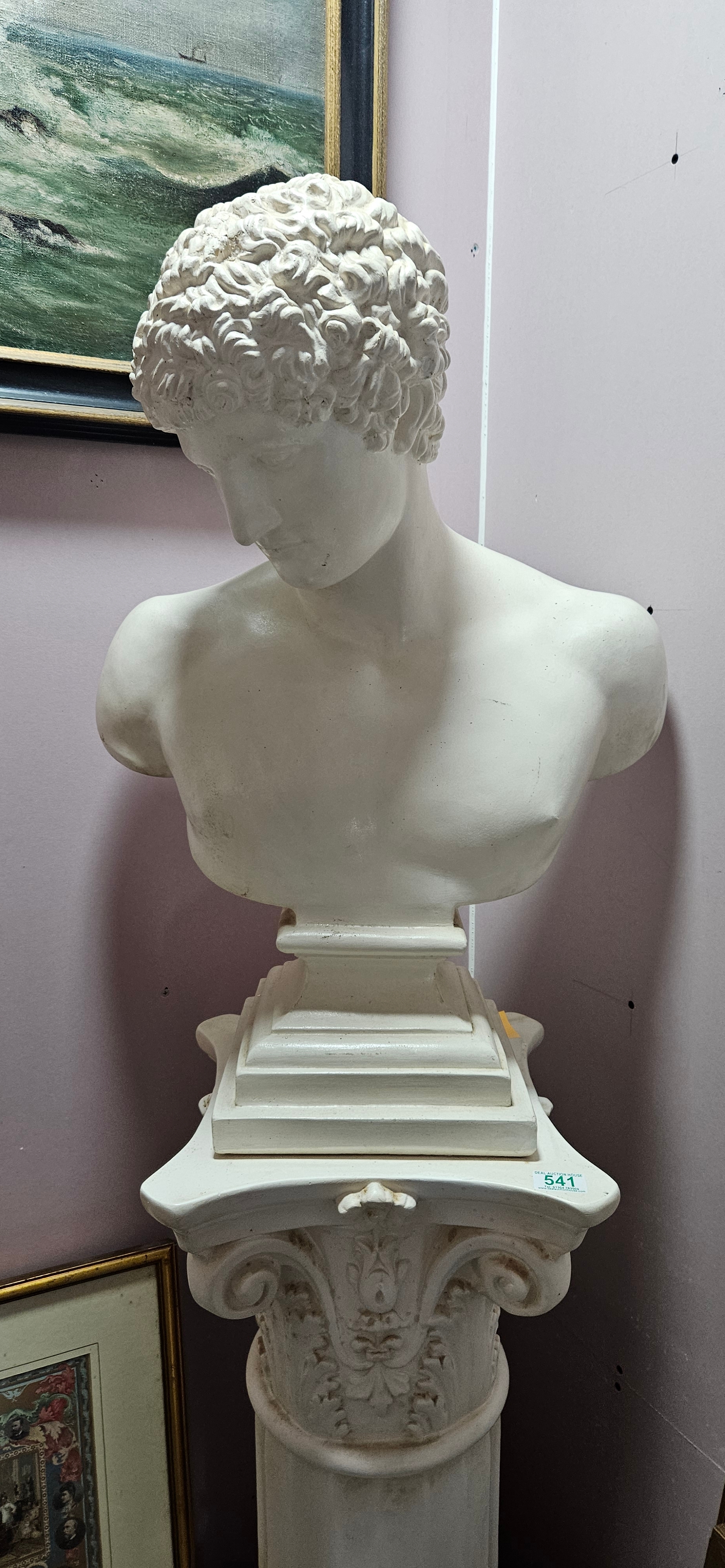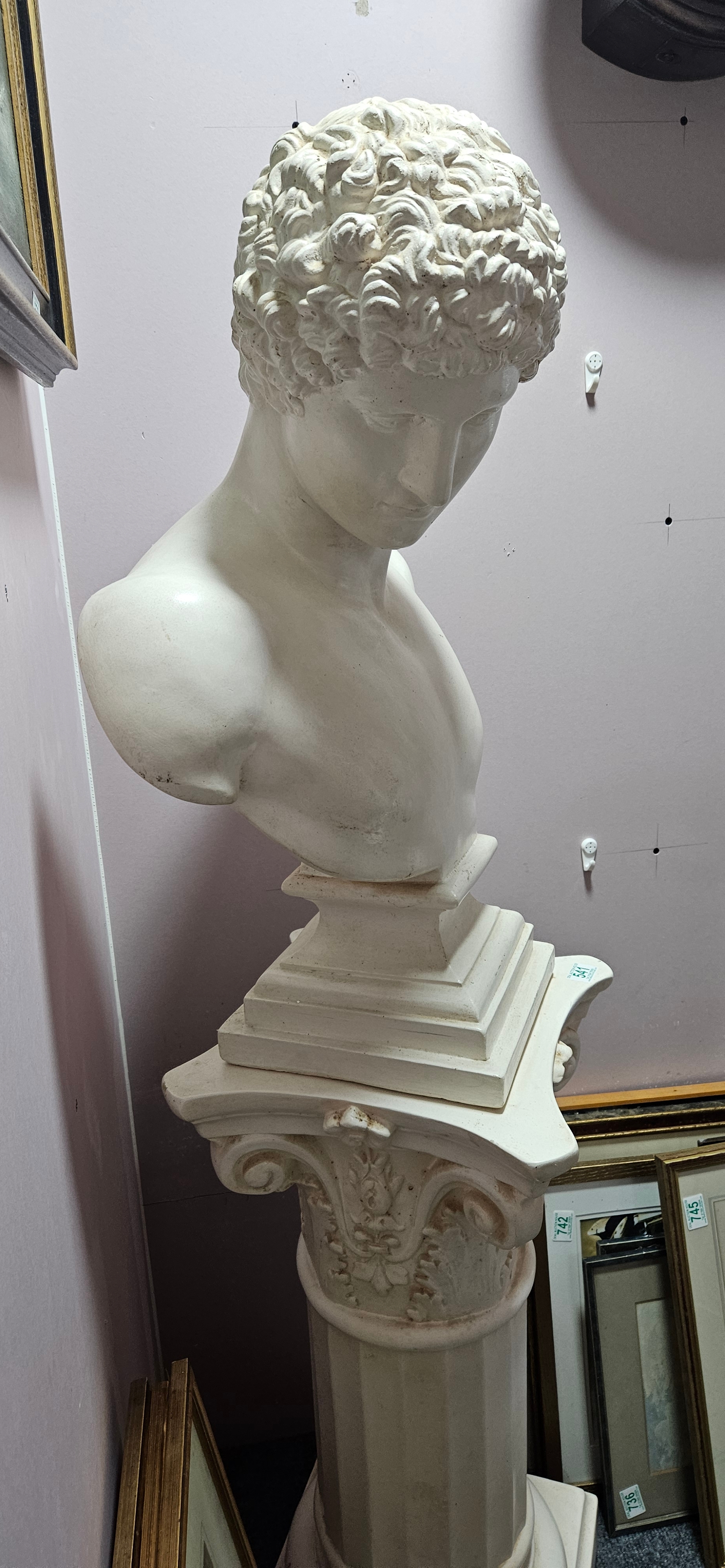 Large plaster bust of Antinous on a column plinth
