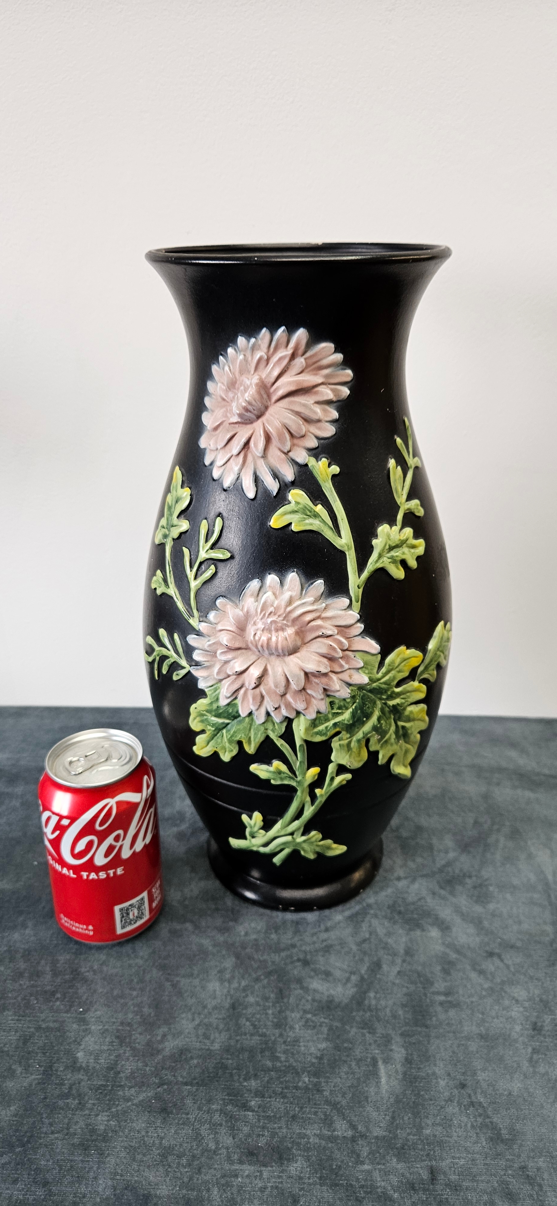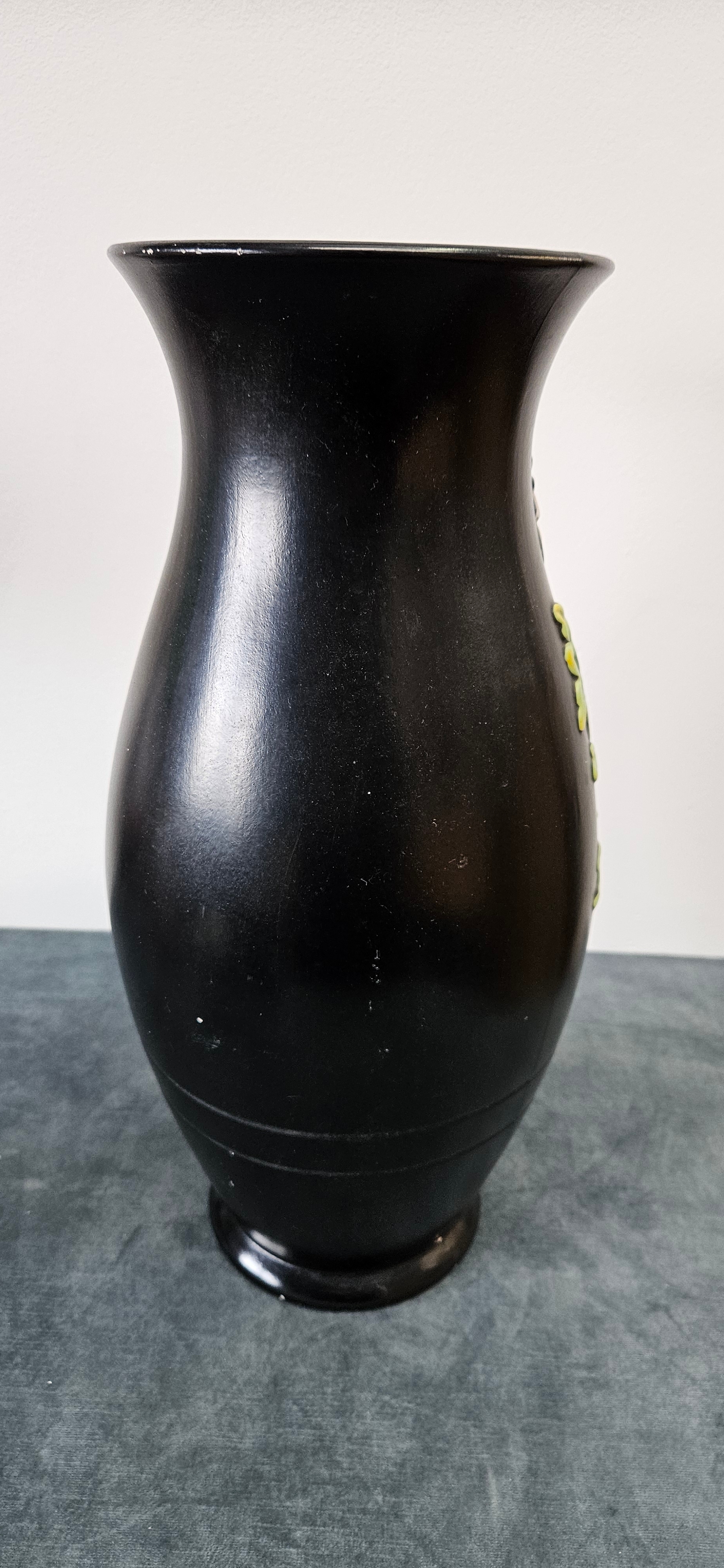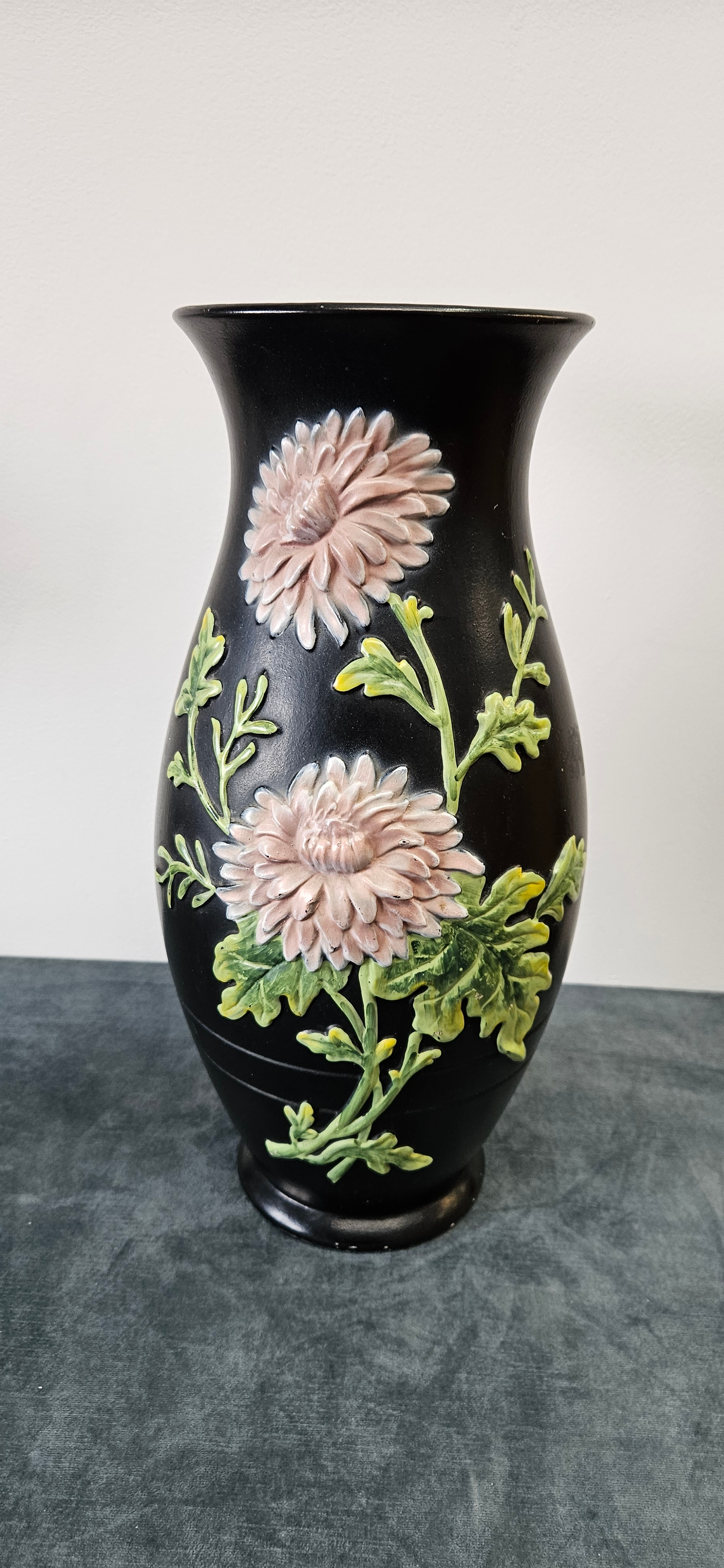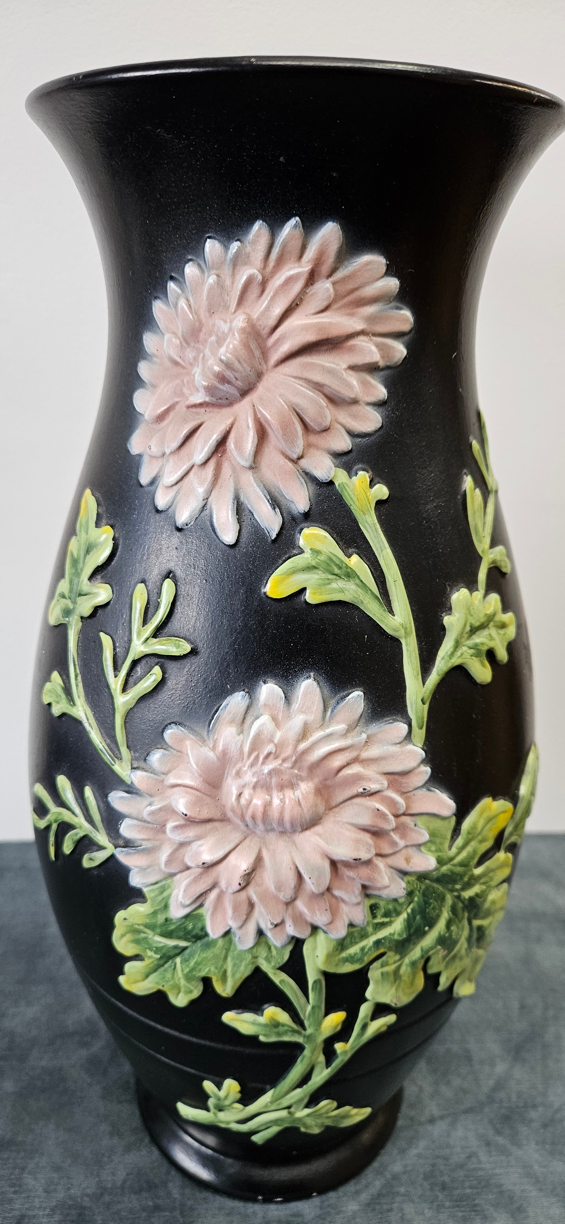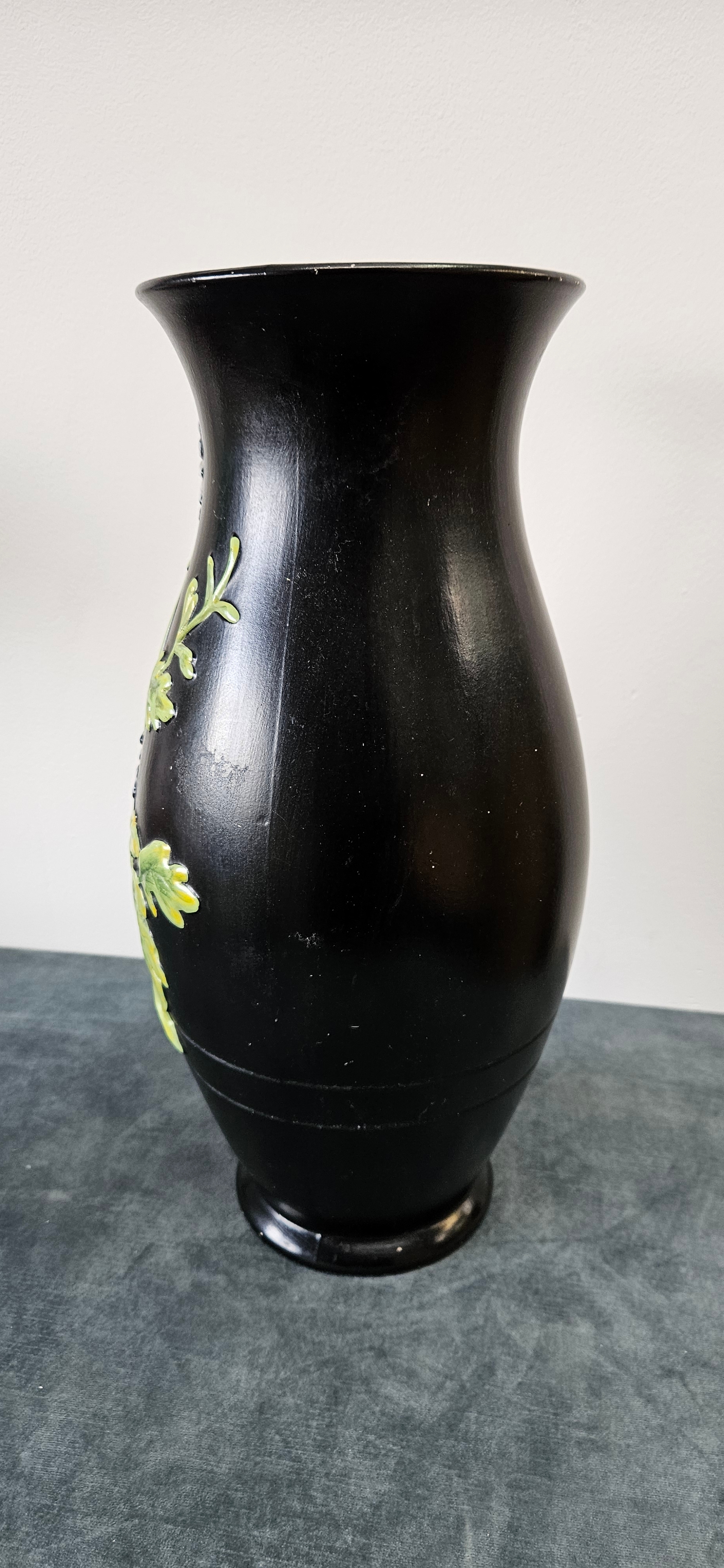 Large black Brentleigh Ware vase decorated with flowers