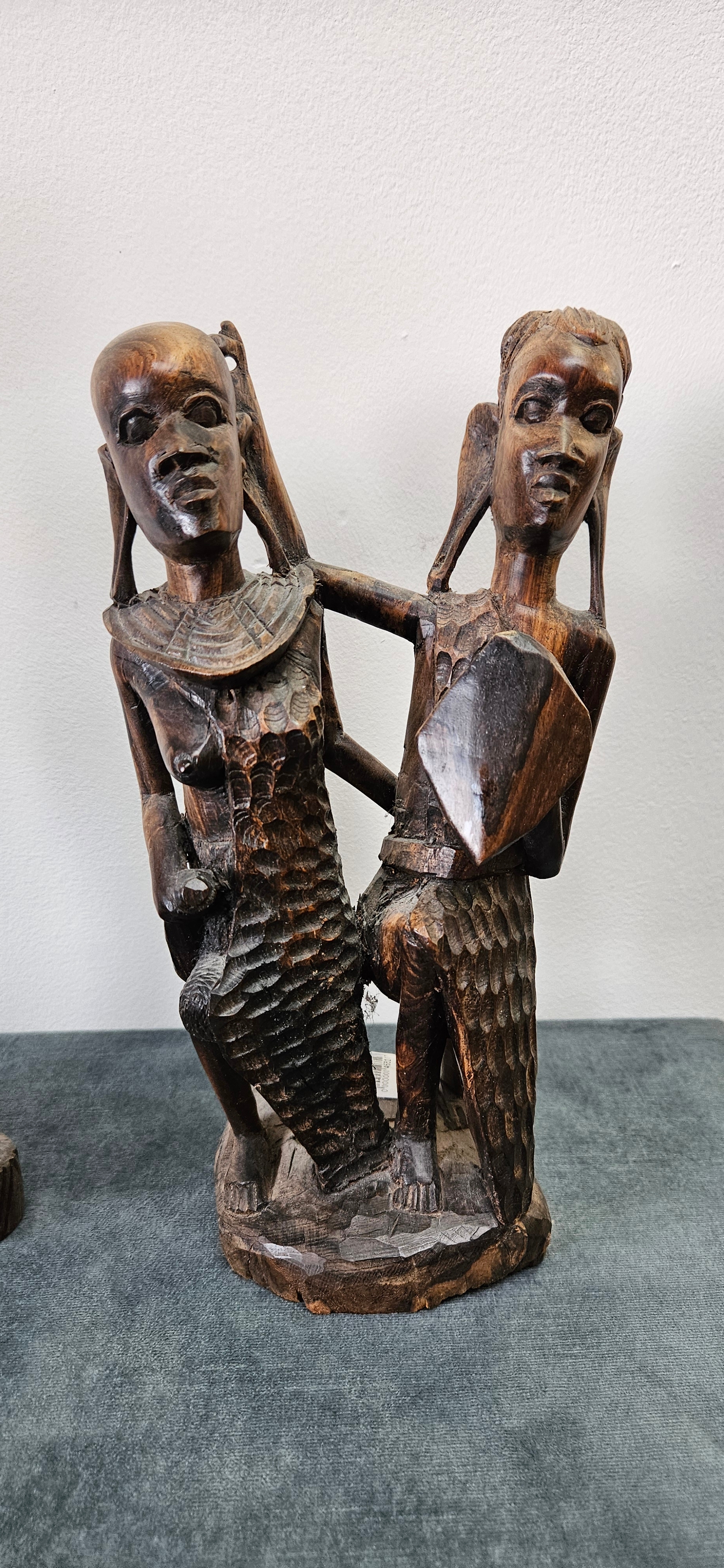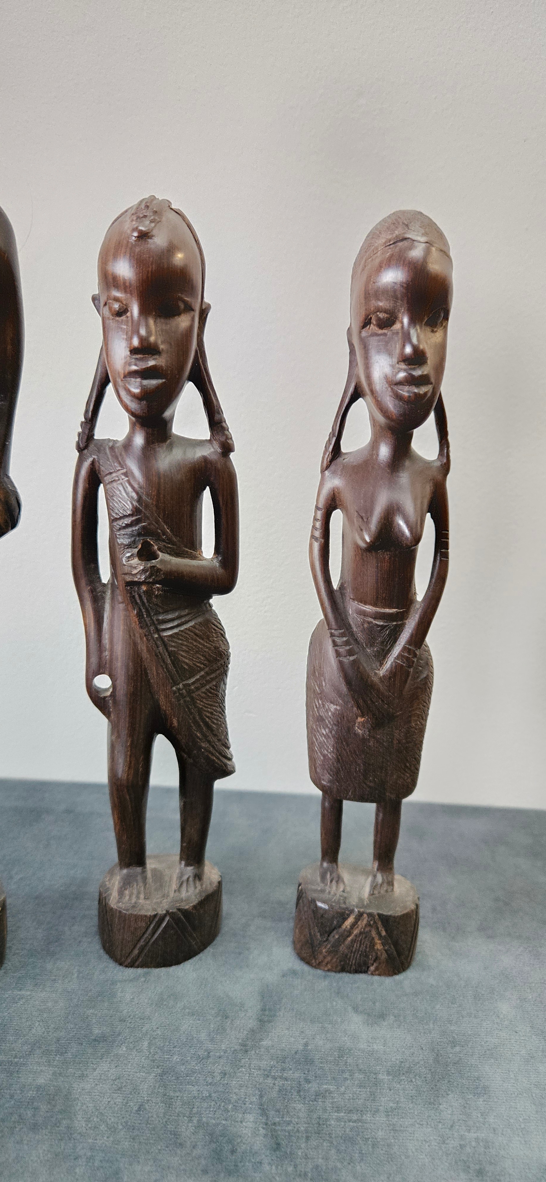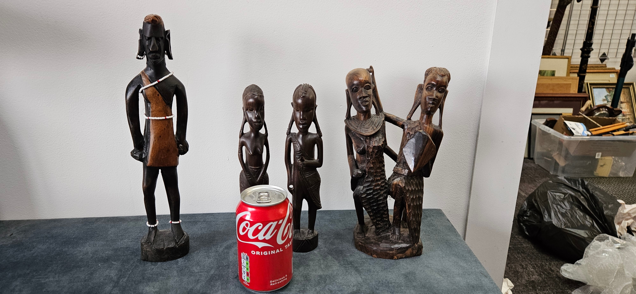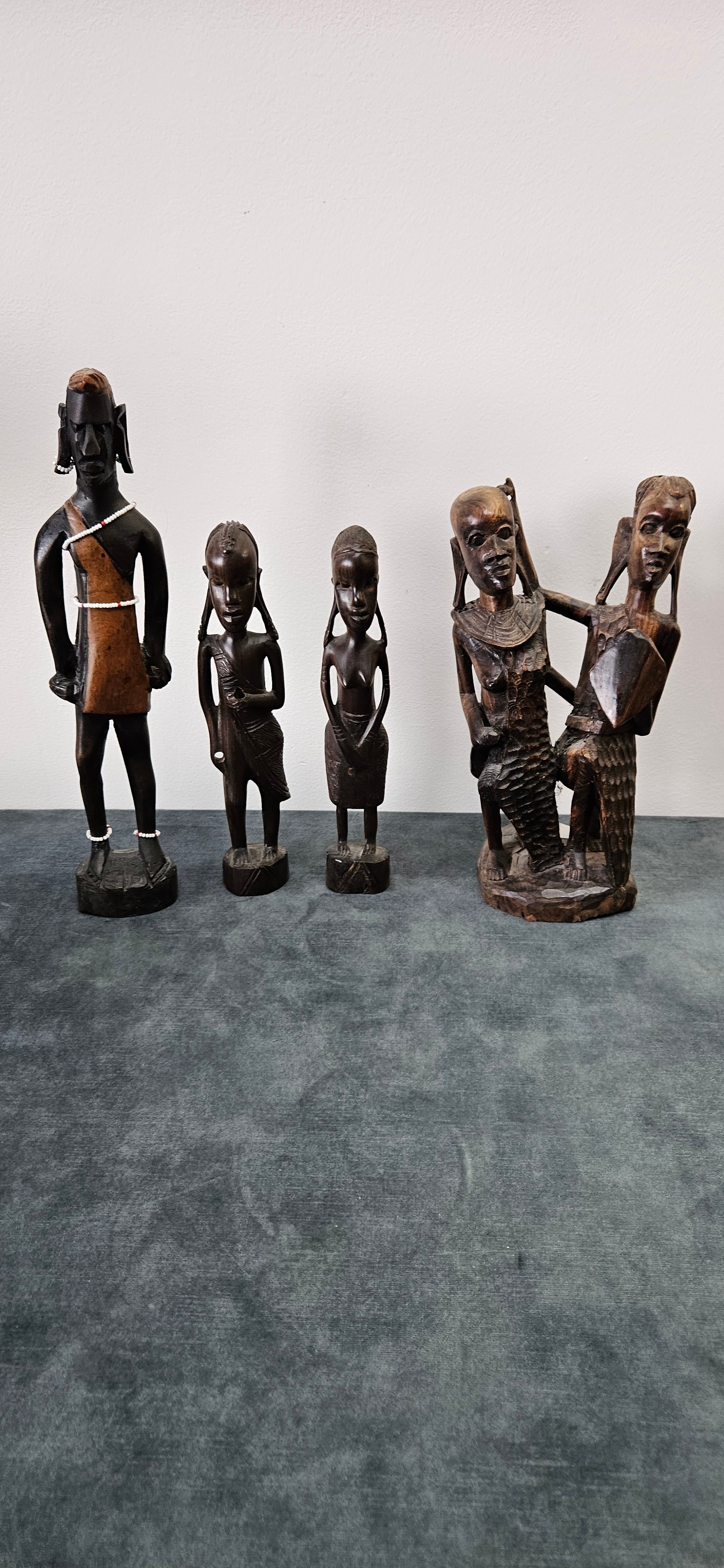 Collection of African carved wooden figures includes