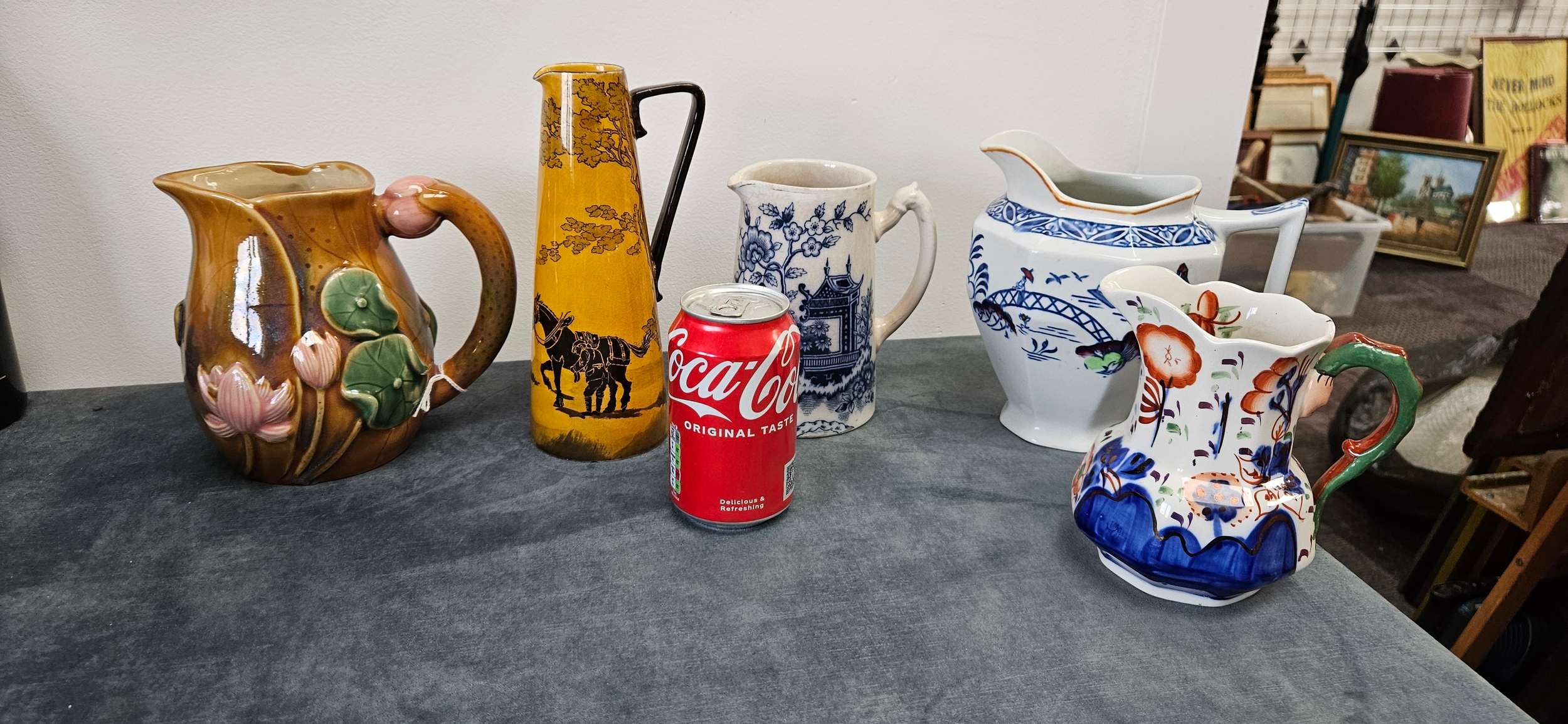 Collection of five ceramic jugs – Majolica, Royal Doulton, Johnson and others.