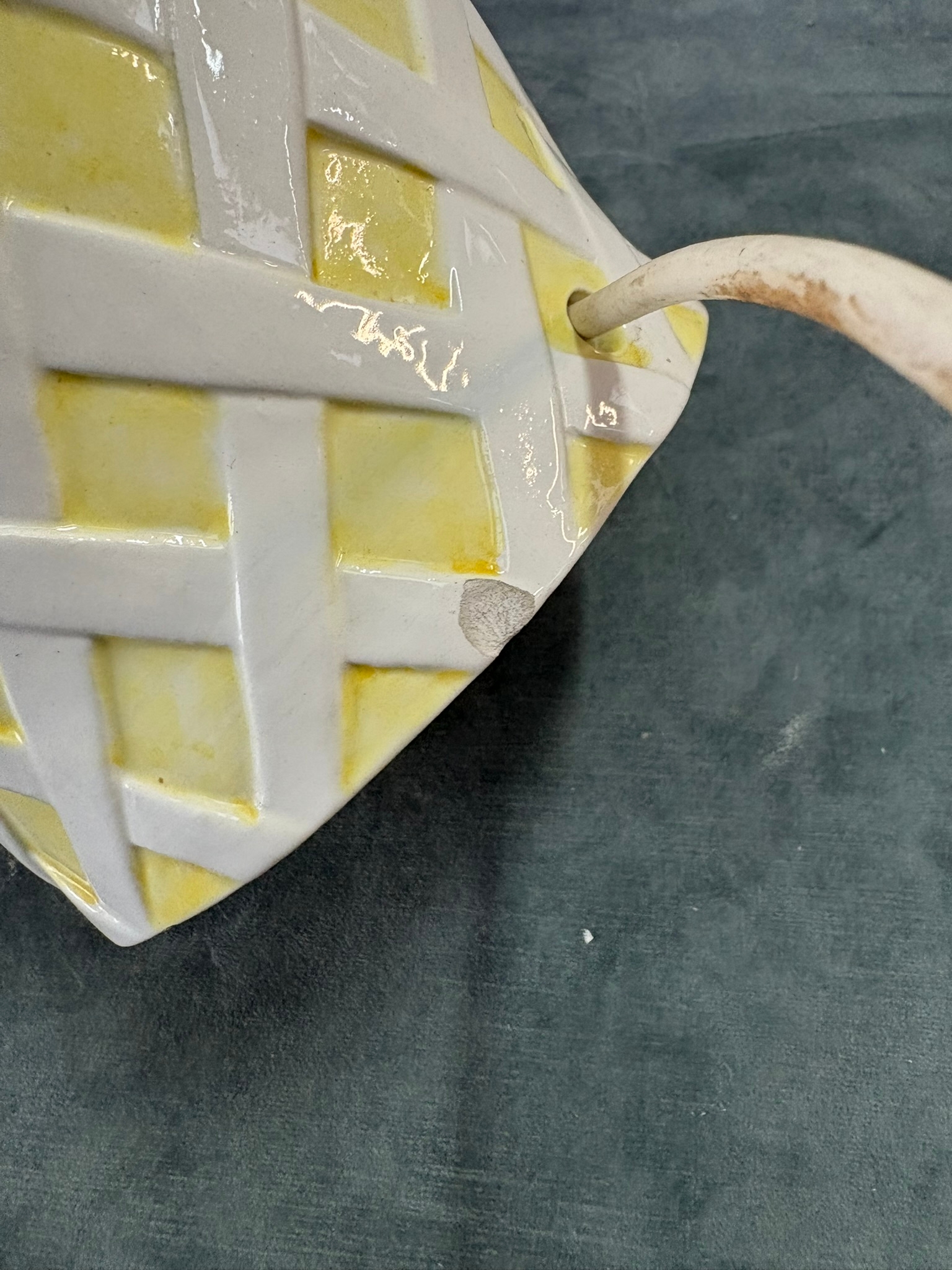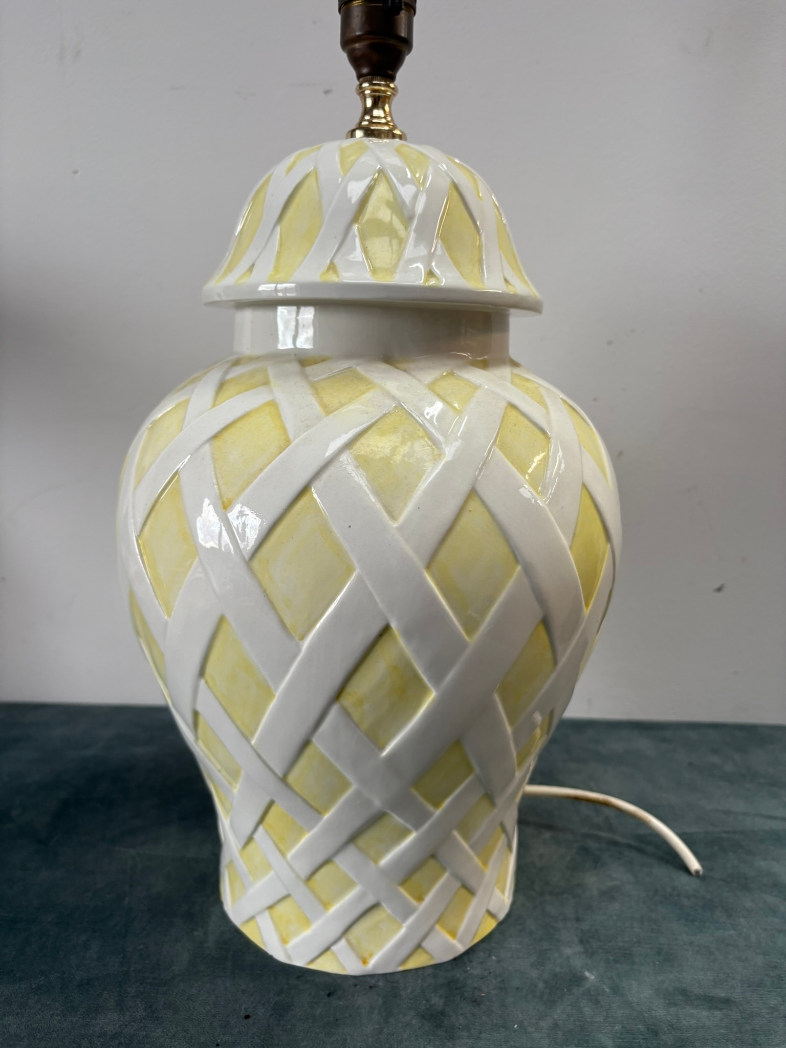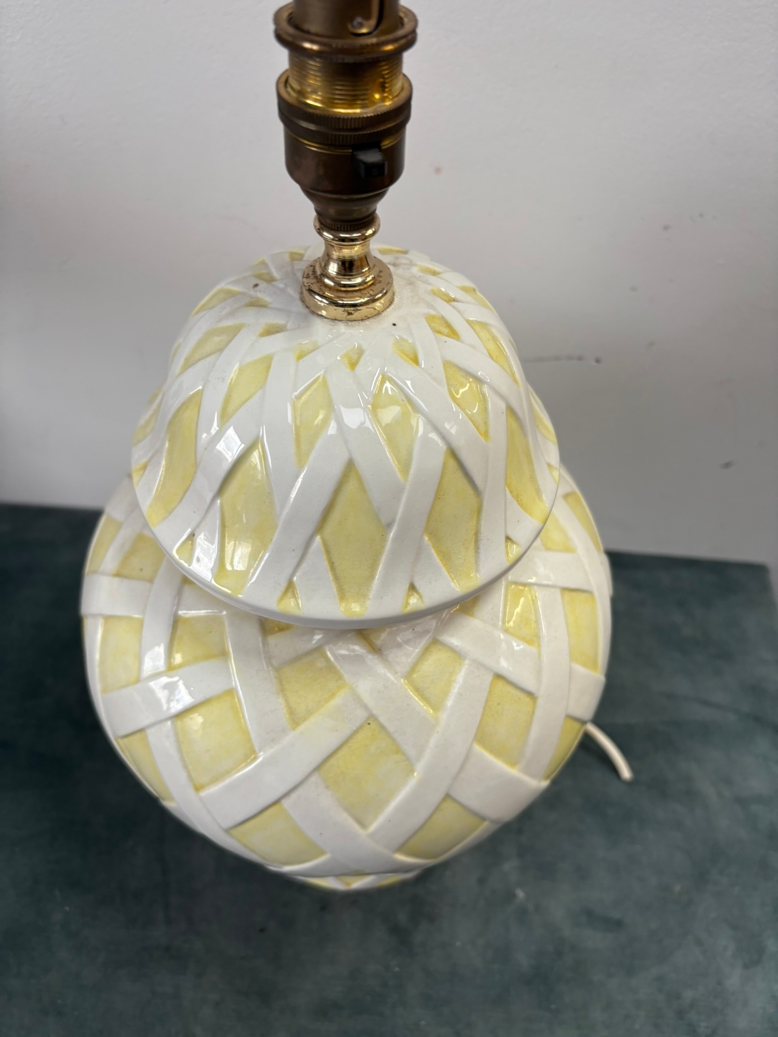 Italian yellow and white pottery table lamp