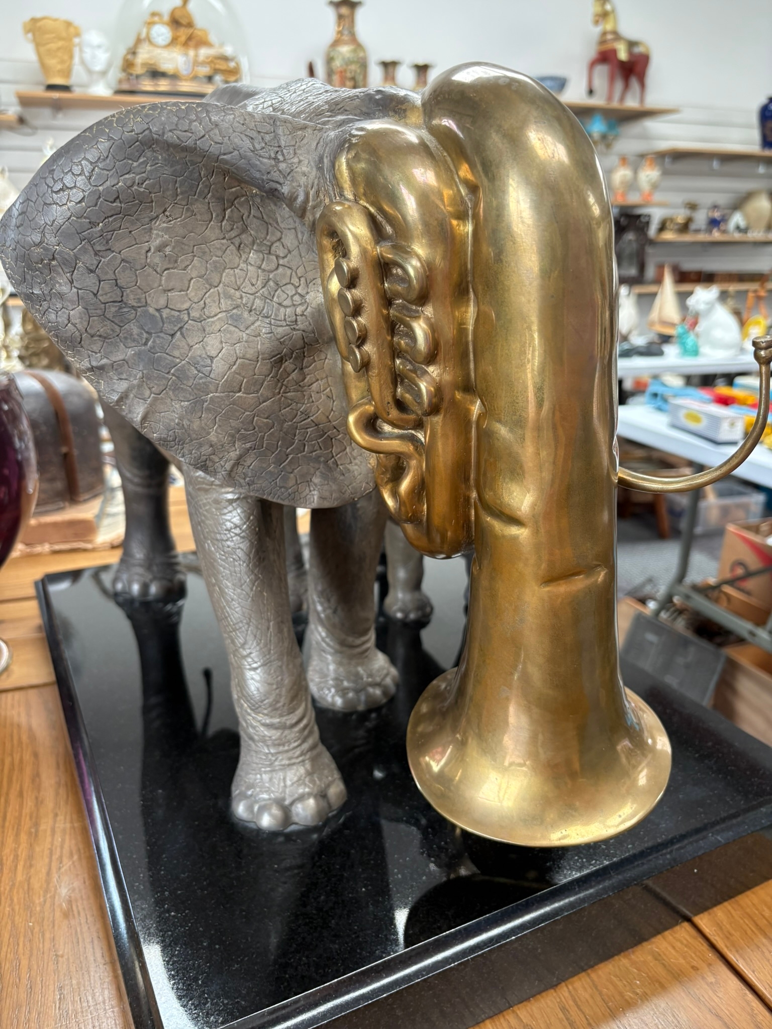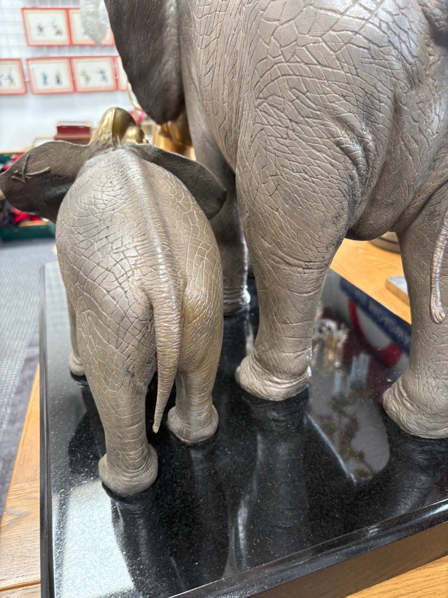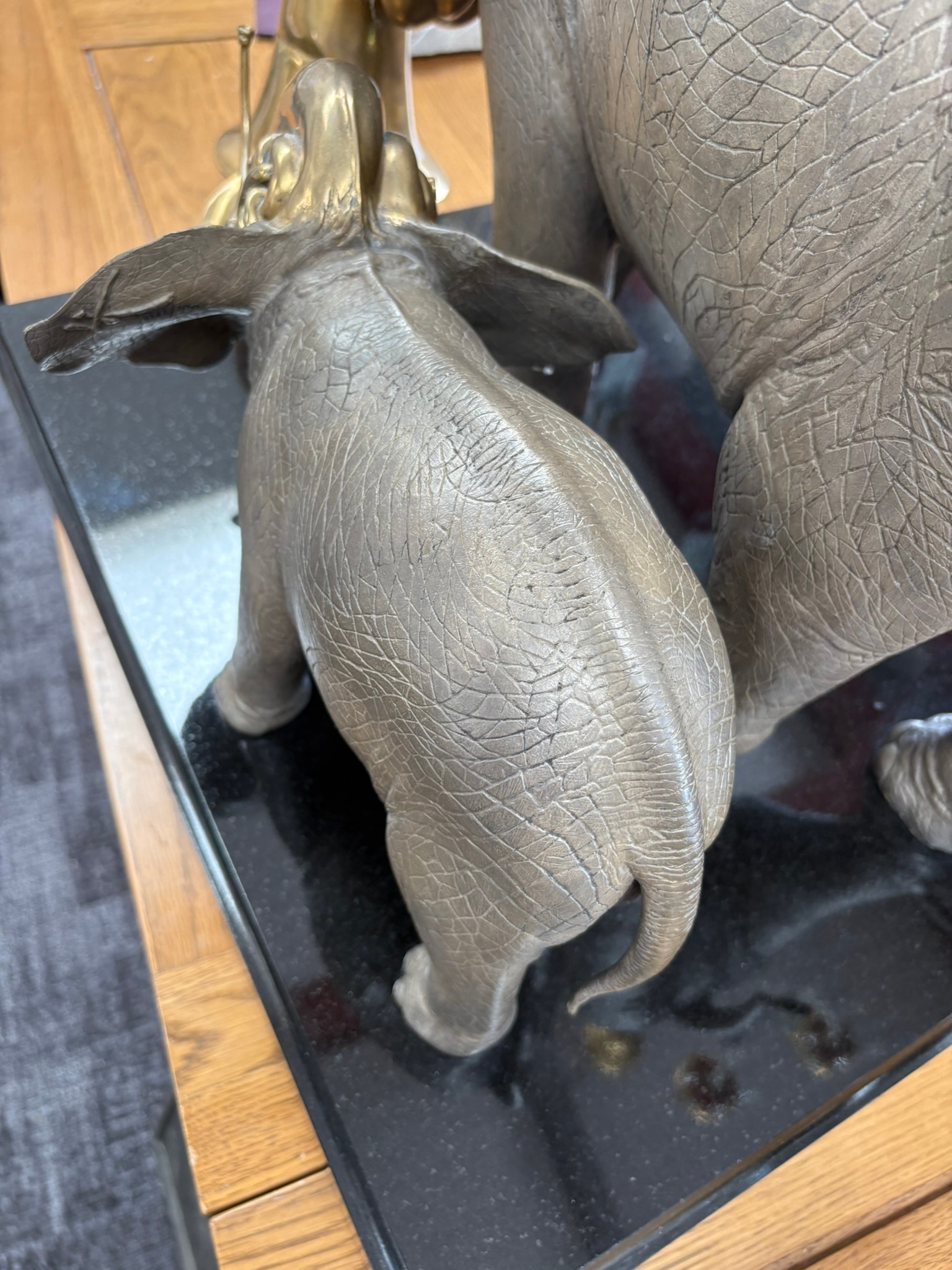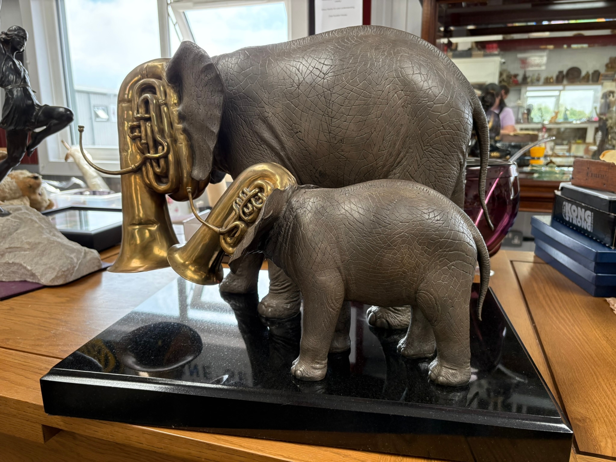Very large and very heavy bronze sculpture of two trumpeting elephants