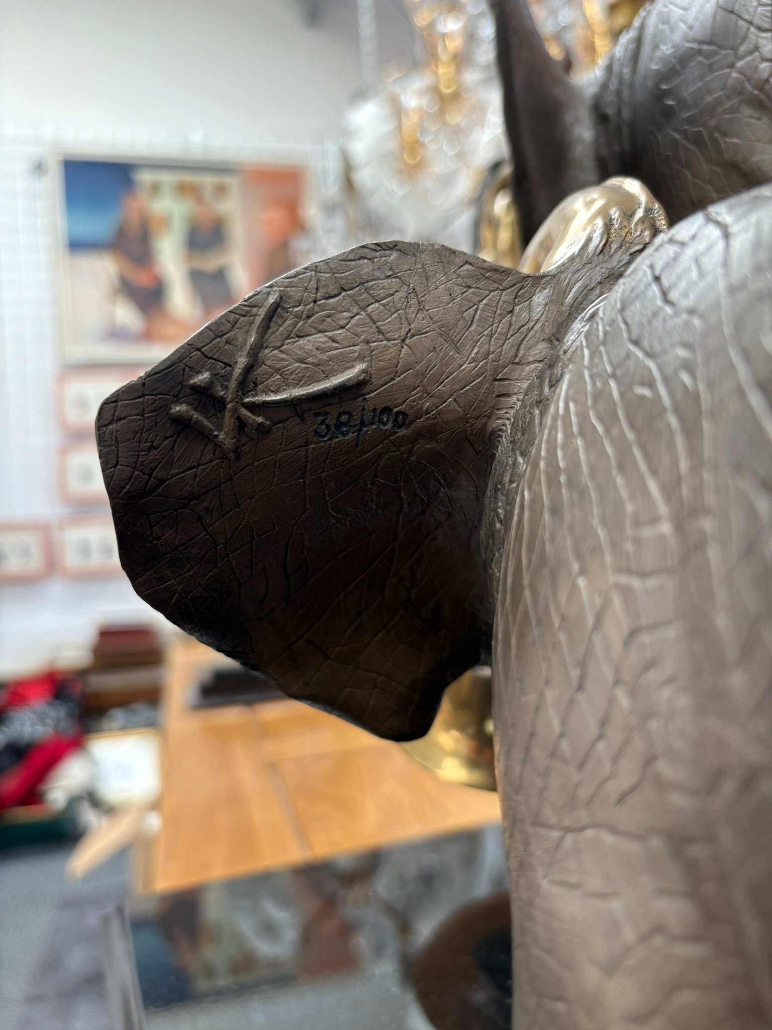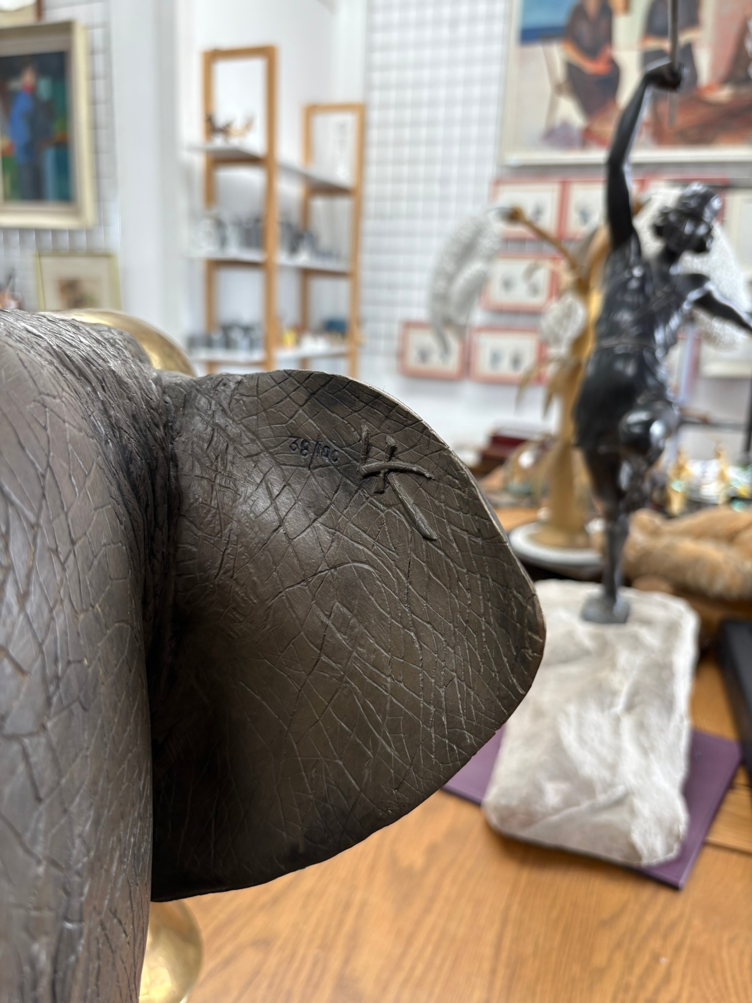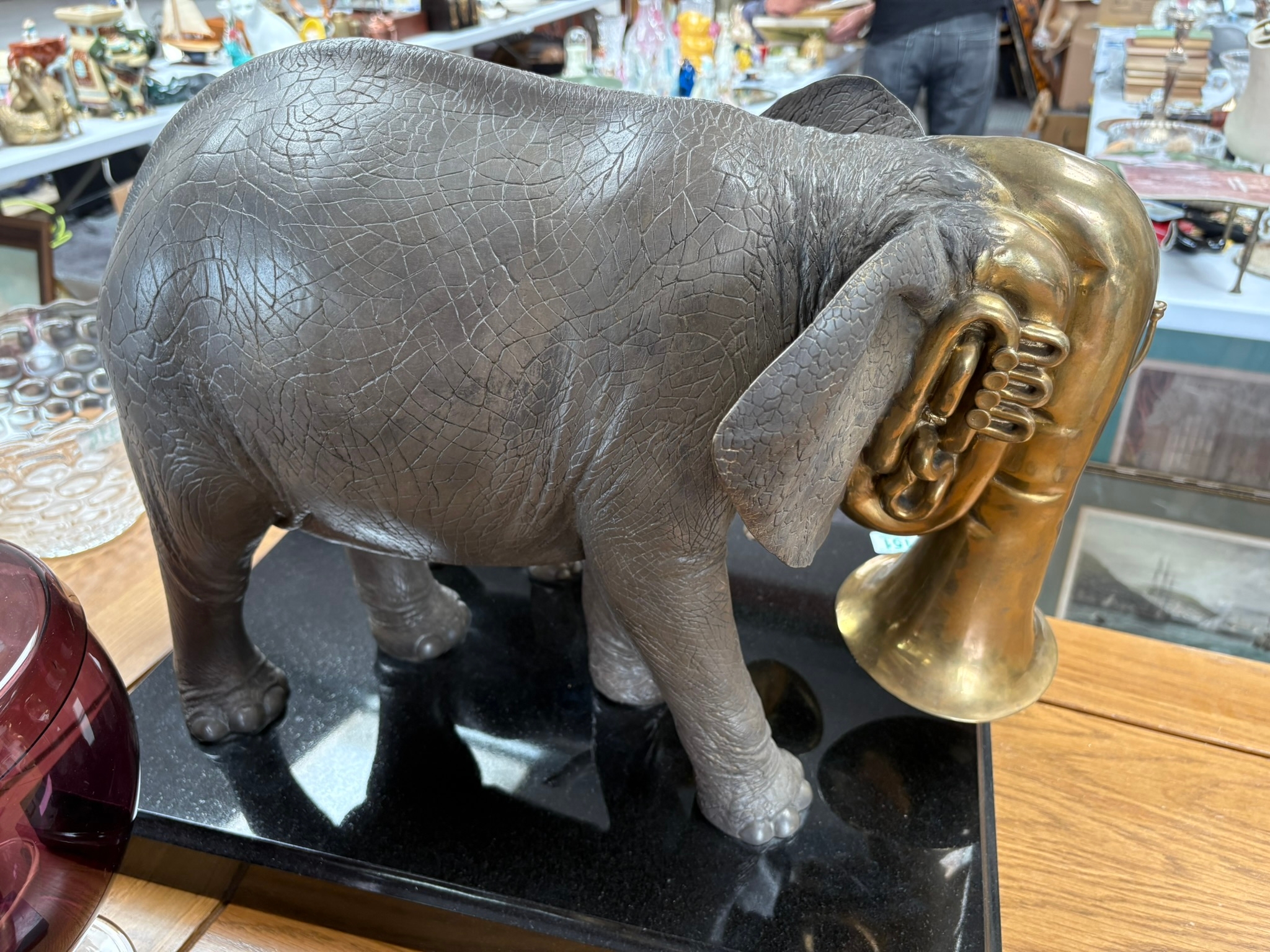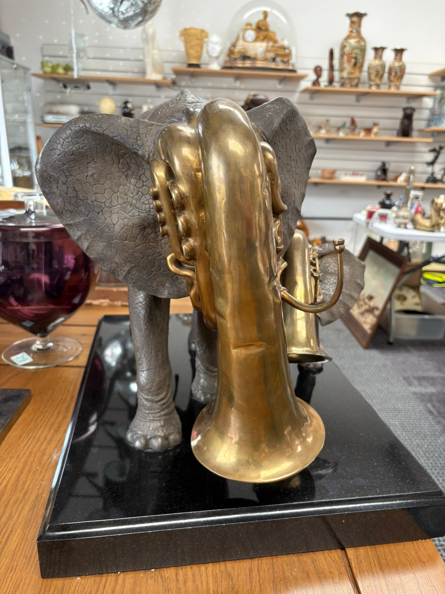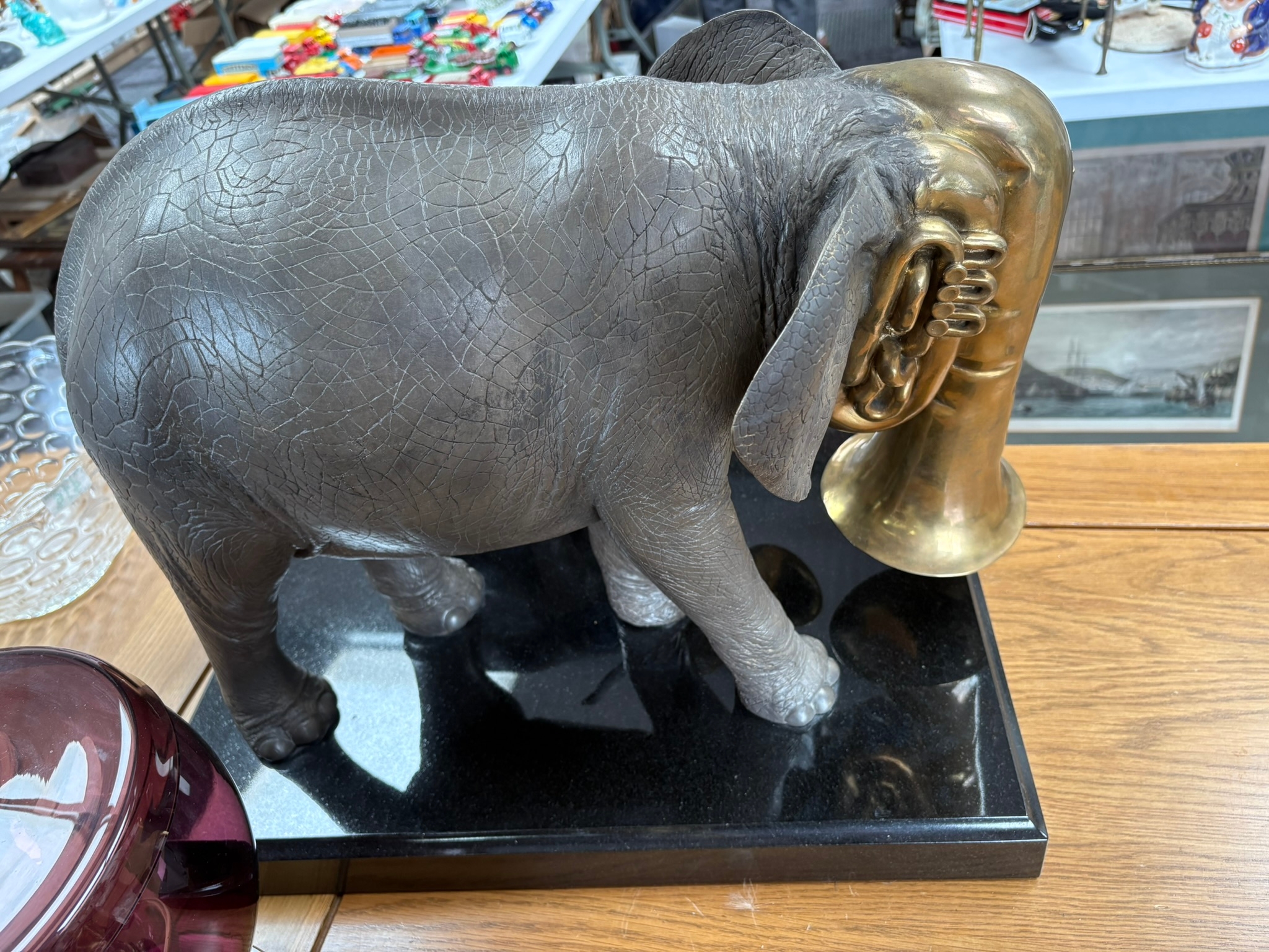 Very large and very heavy bronze sculpture of two trumpeting elephants