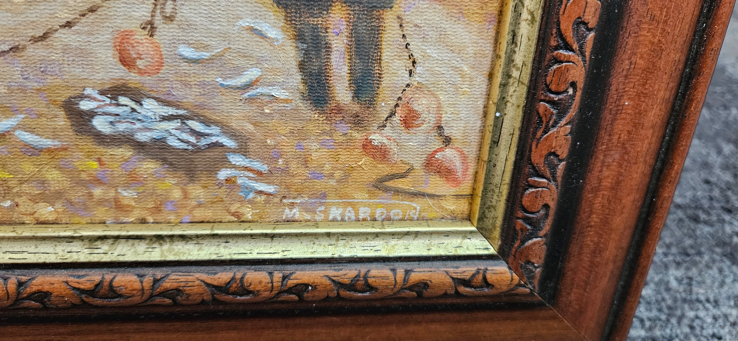 Oil on board painting depicting a seascape with...