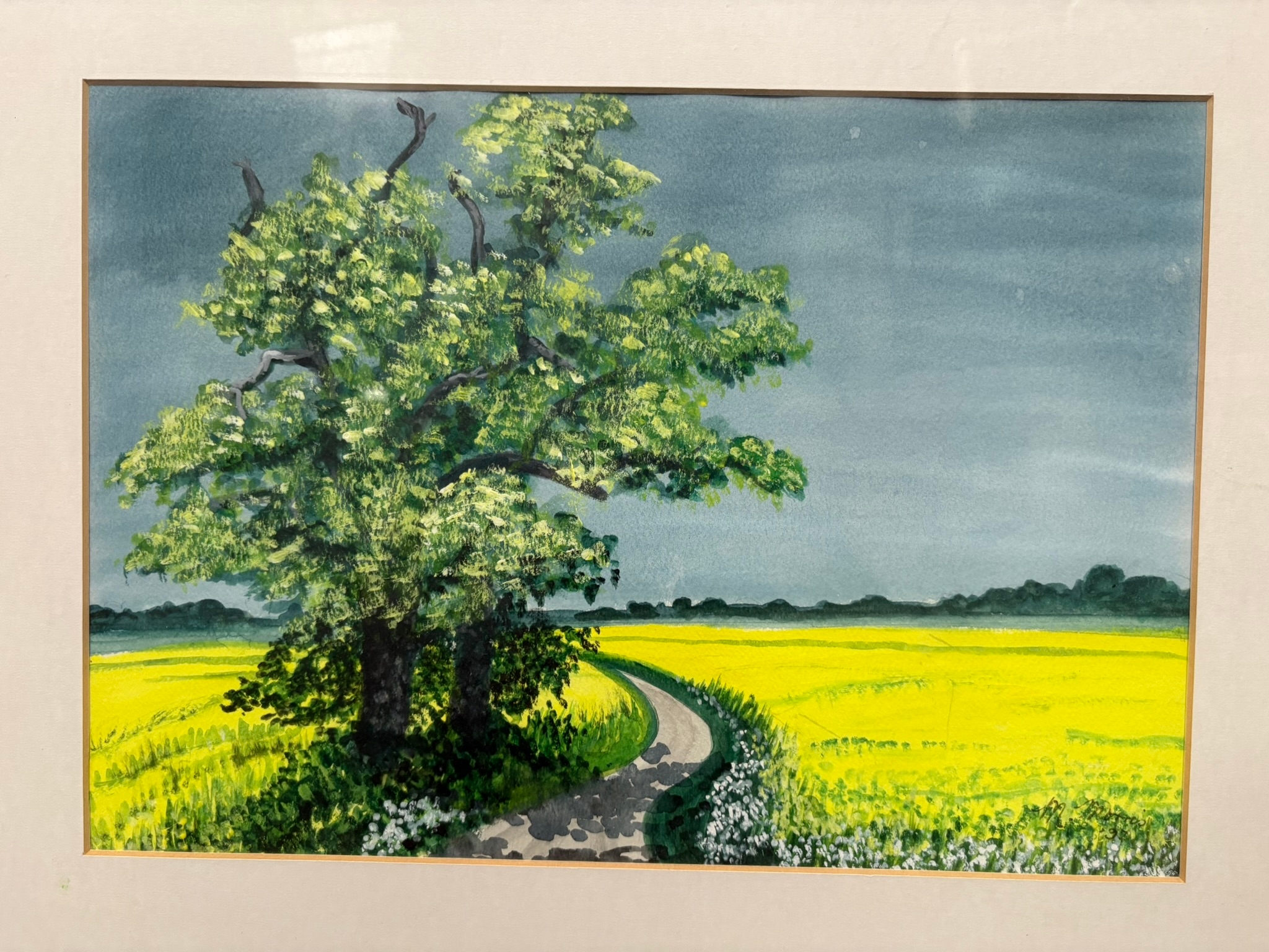 Watercolour painting of trees signed M. Morris