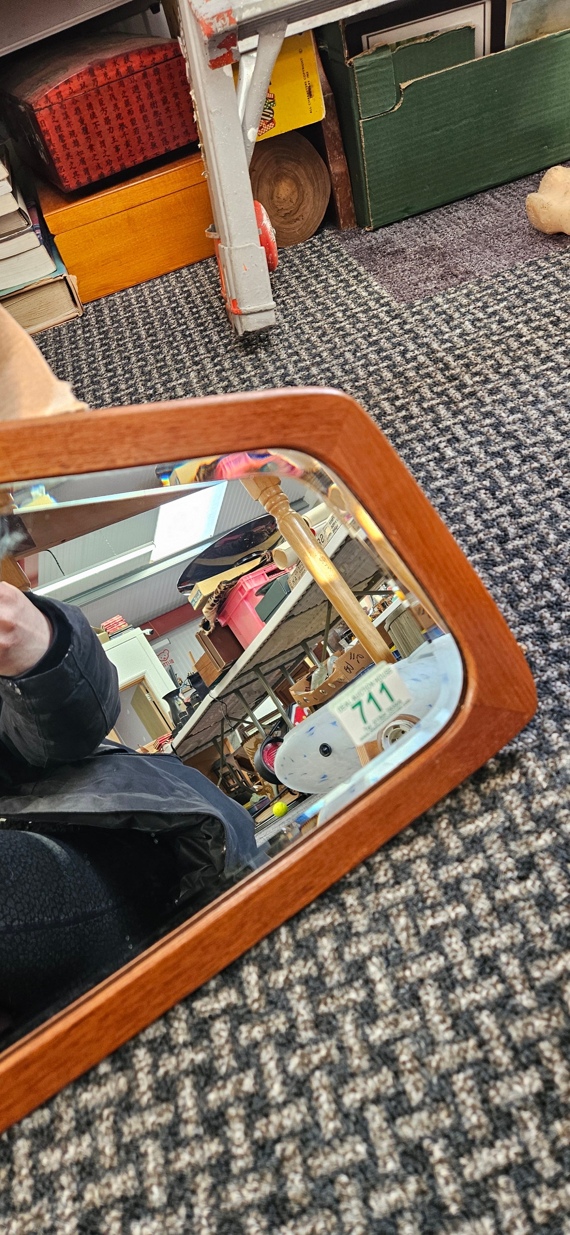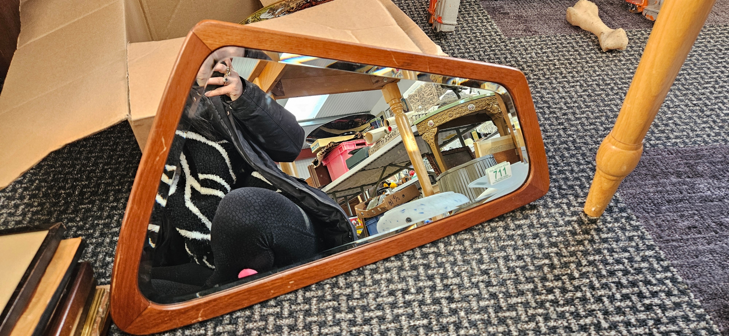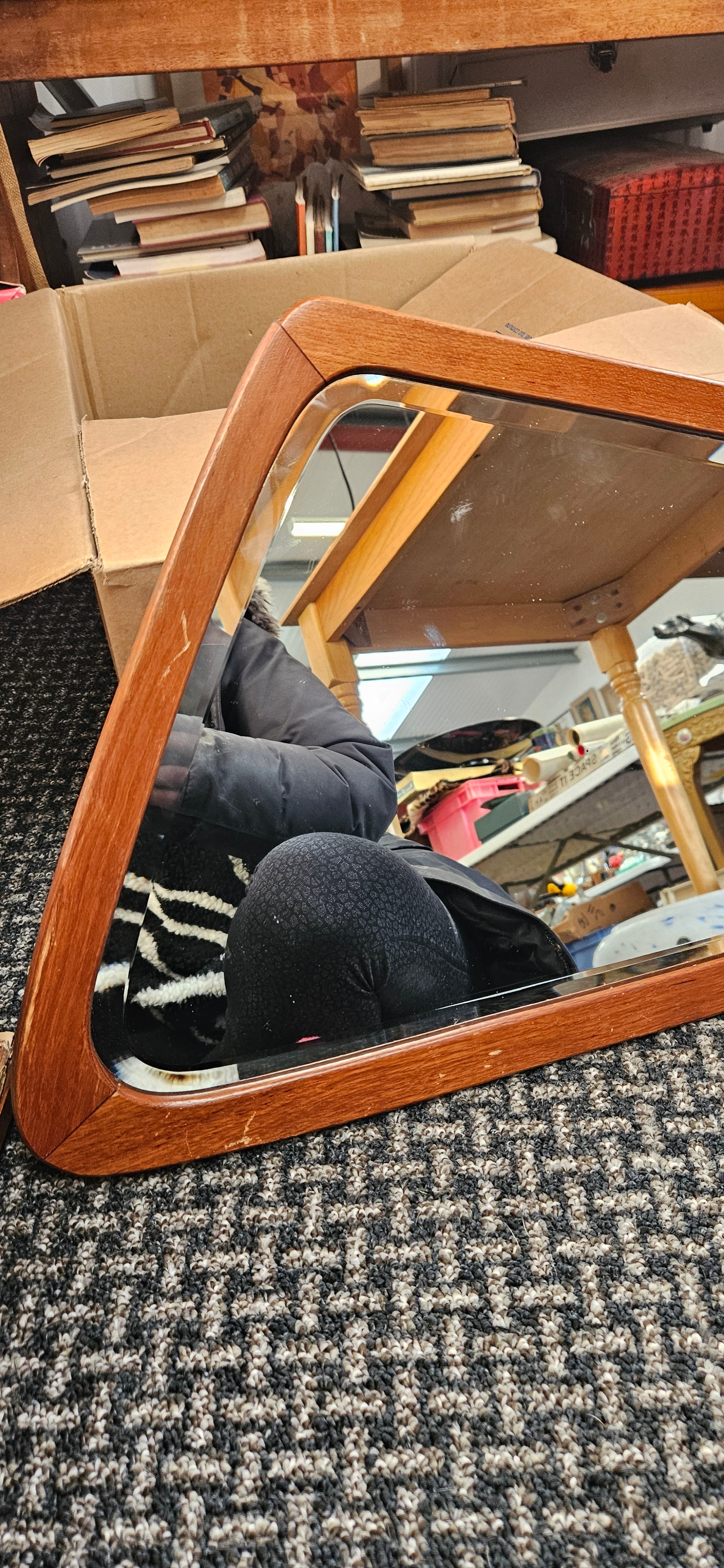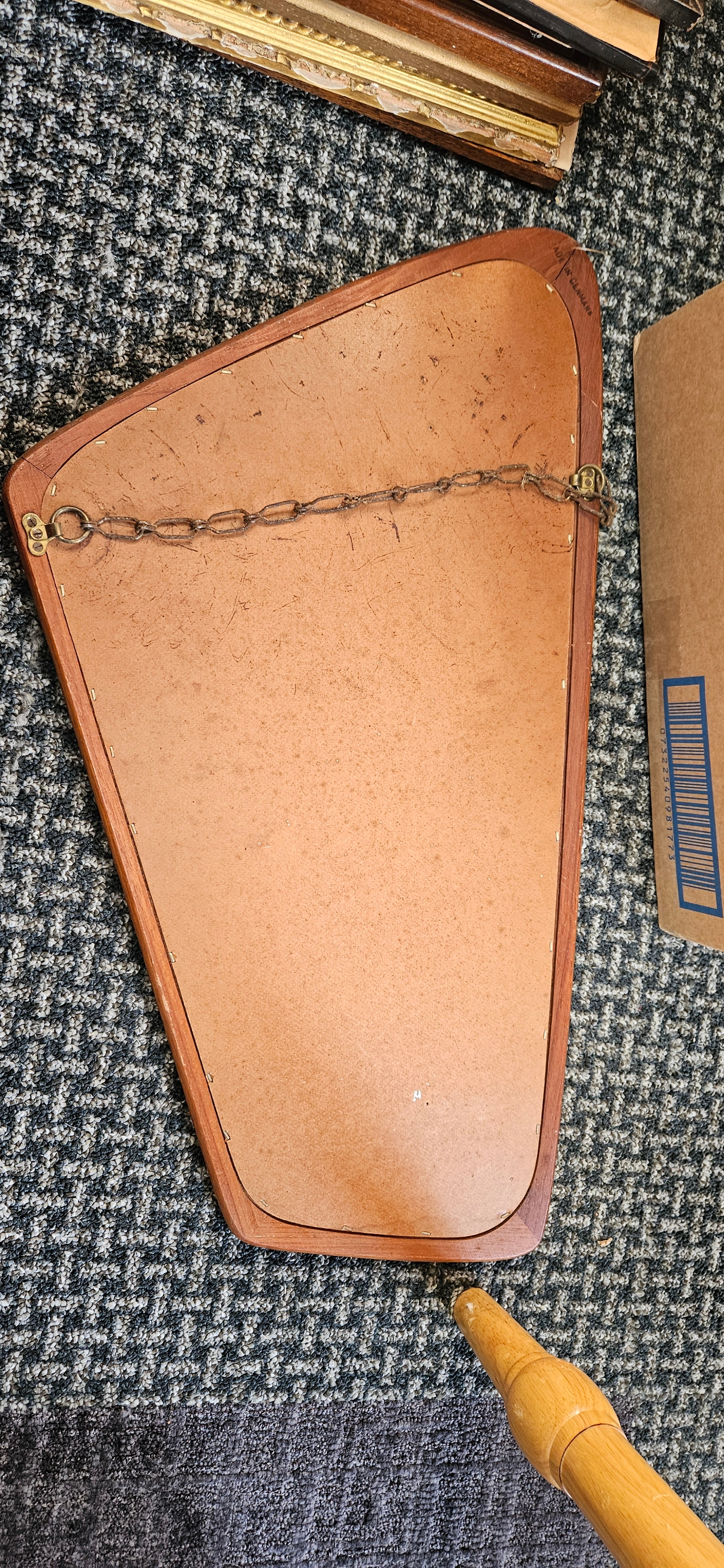 Retro Danish teak mirror with bevelled glass