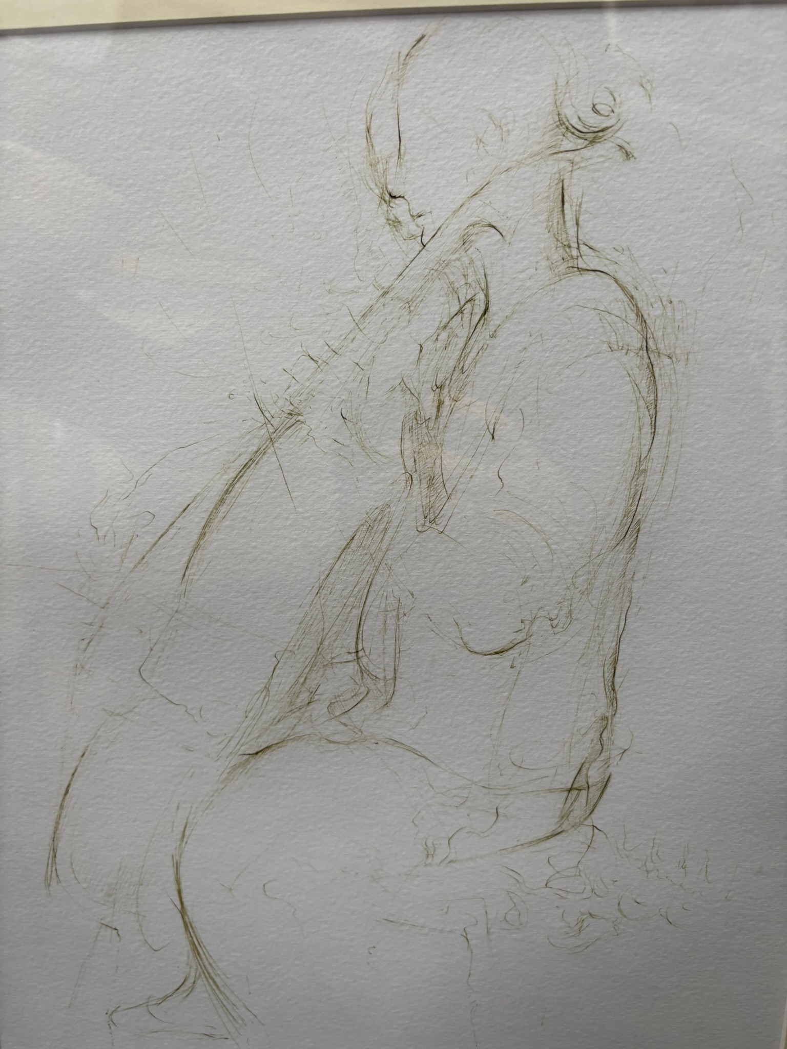Drawing of lady playing cello signed