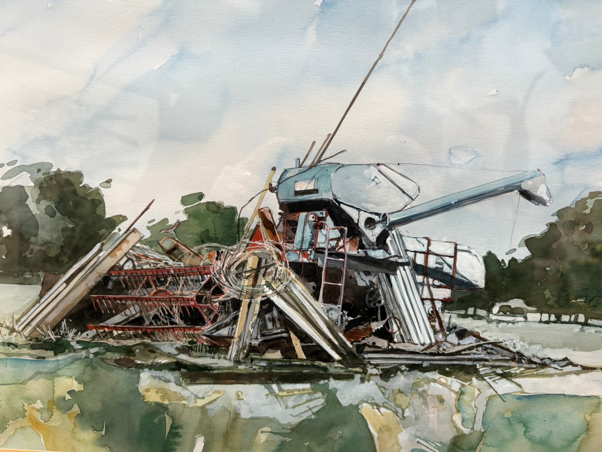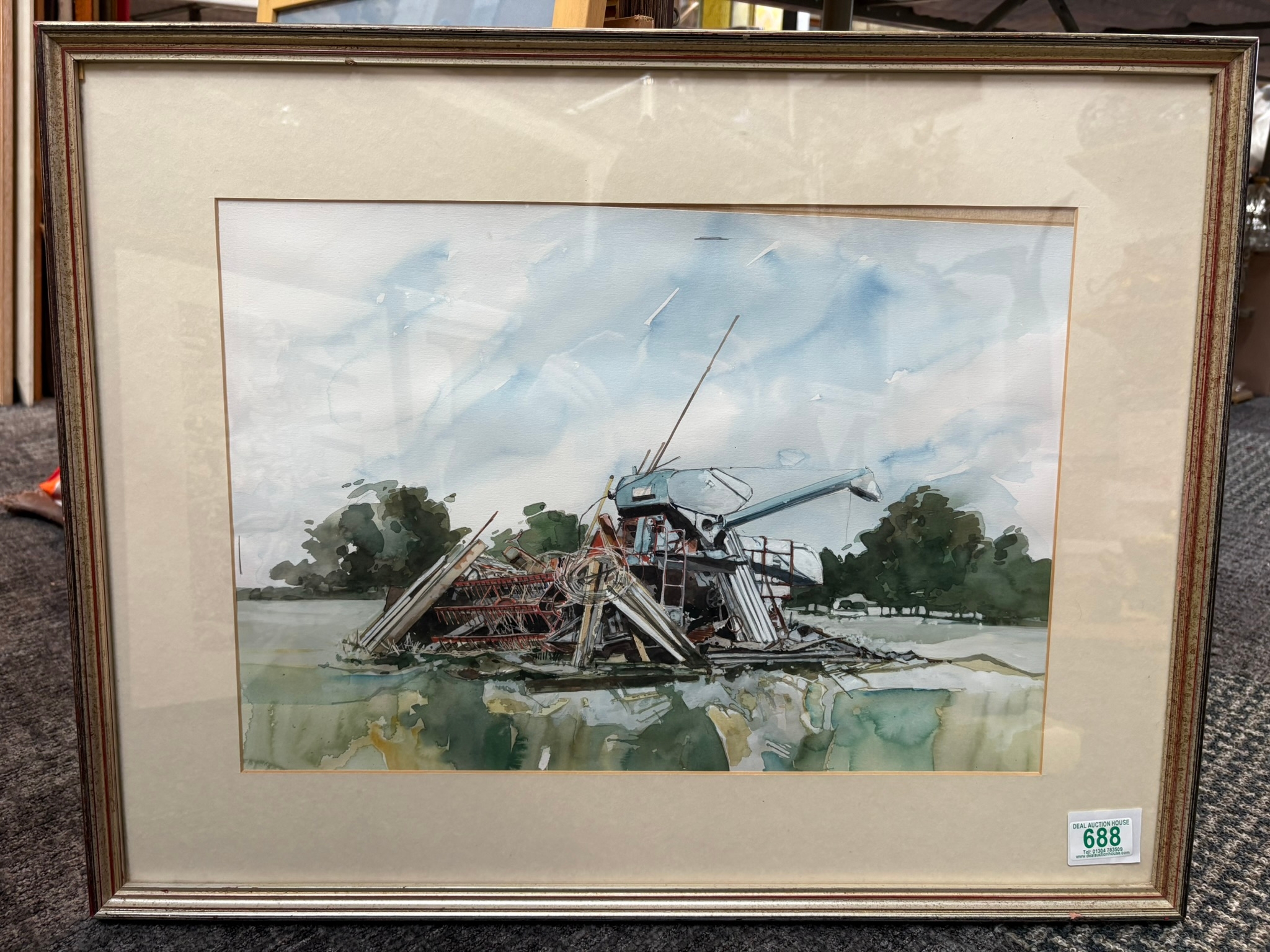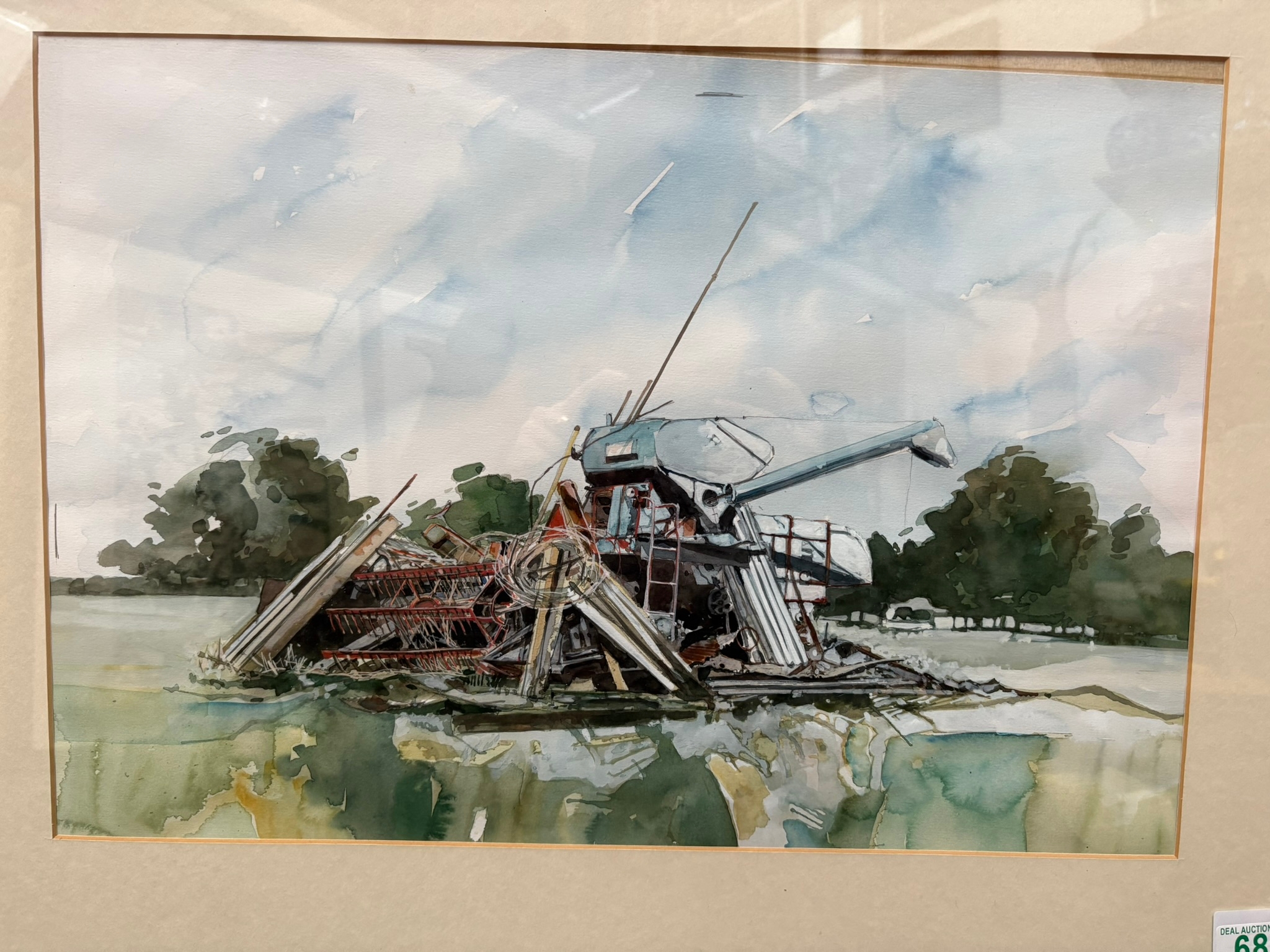 Watercolour of salvage farm equipment – unsigned